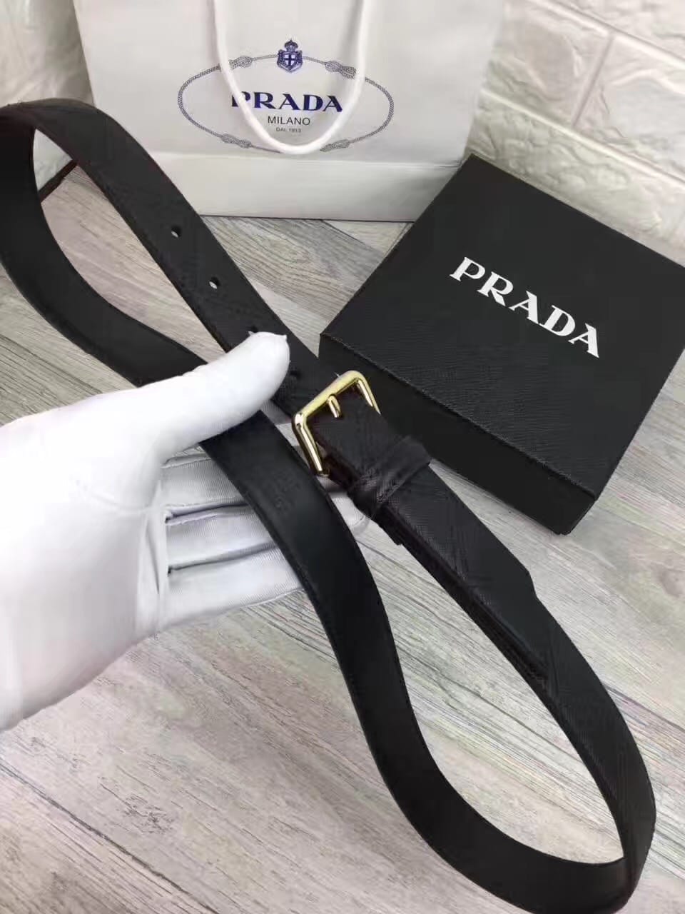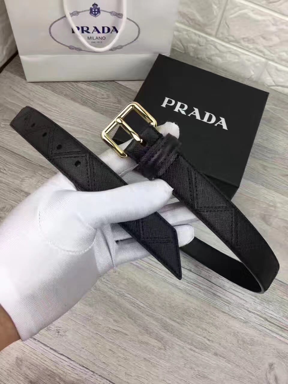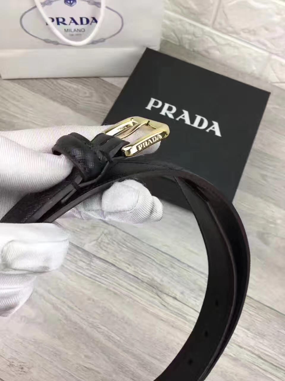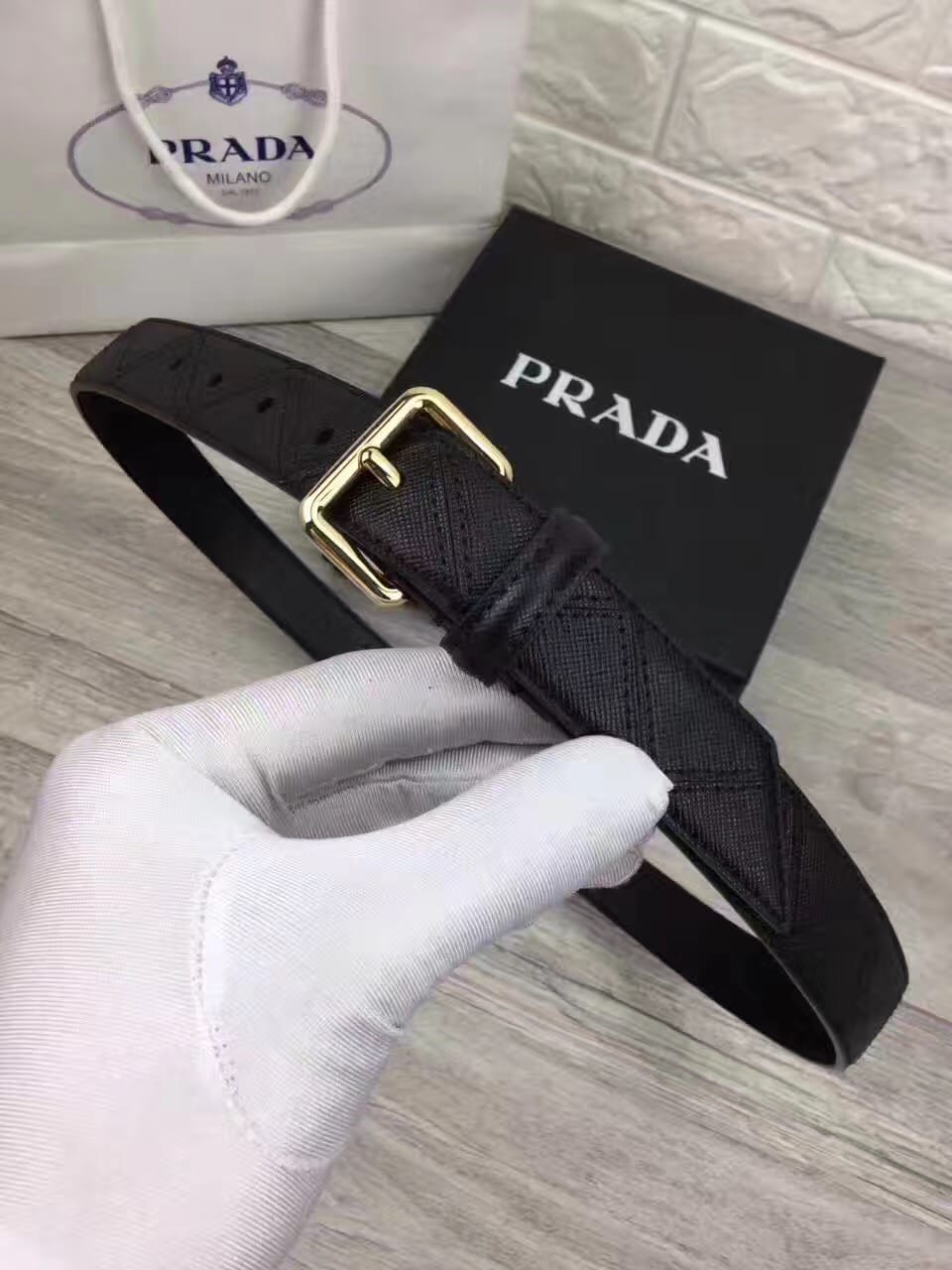 普拉达女士新款腰带,小牛皮底,搭配原单扣头!