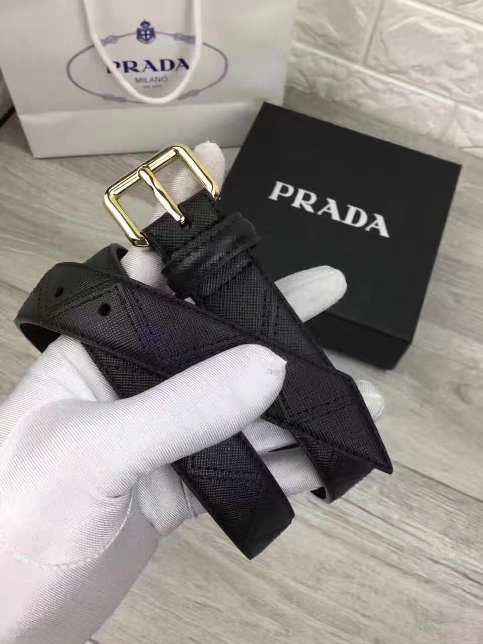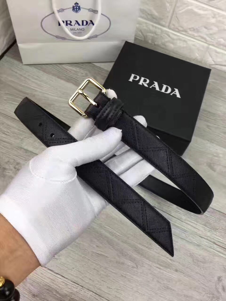 普拉达 女士双色牛皮腰带,原单皮料定制,质感无可挑剔。