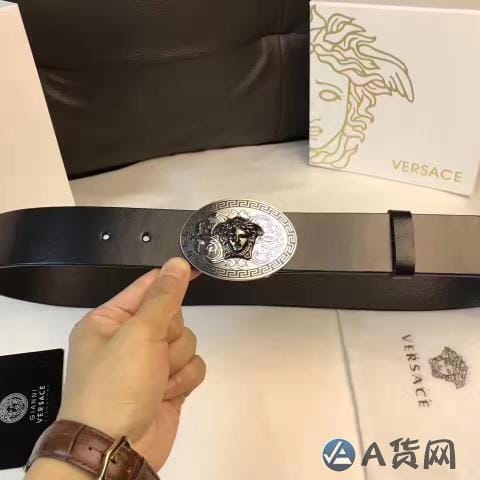 范思哲 Palazzo 系列小牛皮腰带 银色美杜莎纯钢五金挂扣