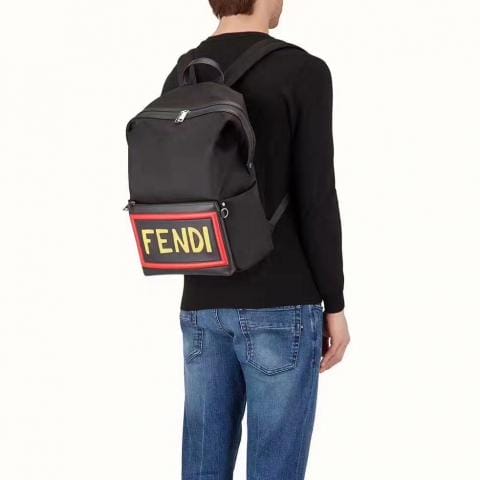 芬迪Fendi小怪兽防水双肩背包?型号:2053?黑色尼龙和