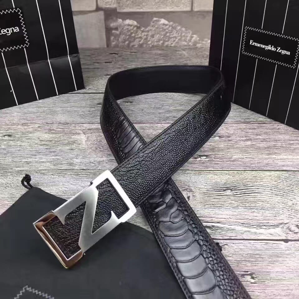 杰尼亚 (Zegna) 是世界闻名的意大利男装品牌,头层牛皮压鸵鸟脚纹腰带。