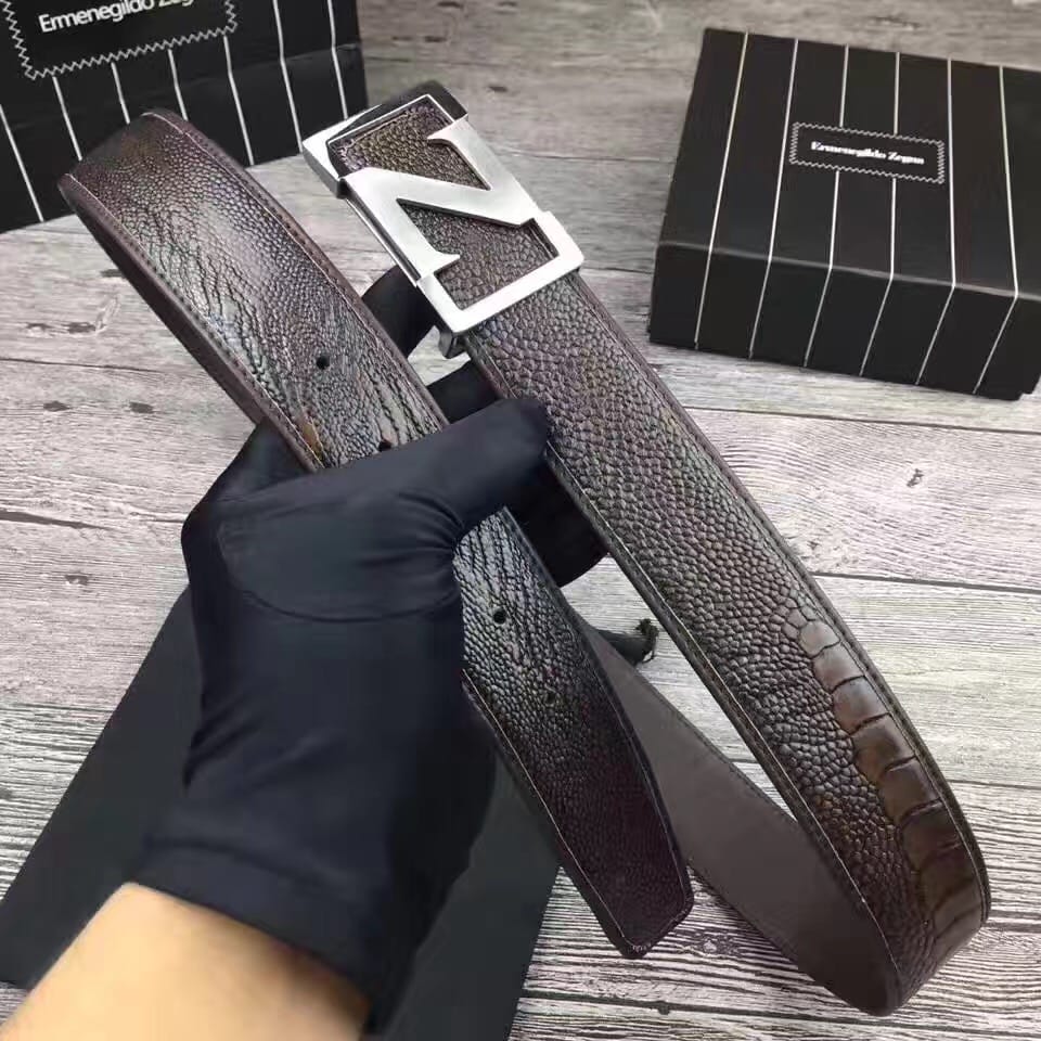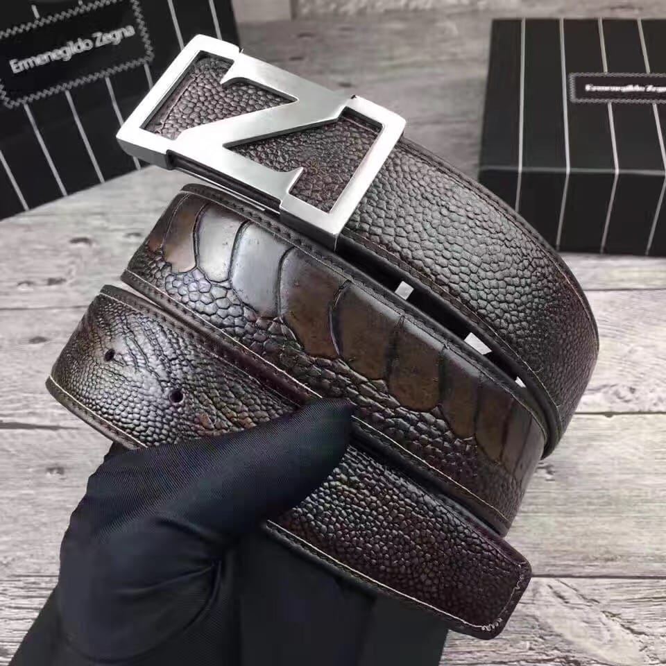 杰尼亚 (Zegna) 是世界闻名的意大利男装品牌,头层牛皮压鸵鸟脚纹腰带。