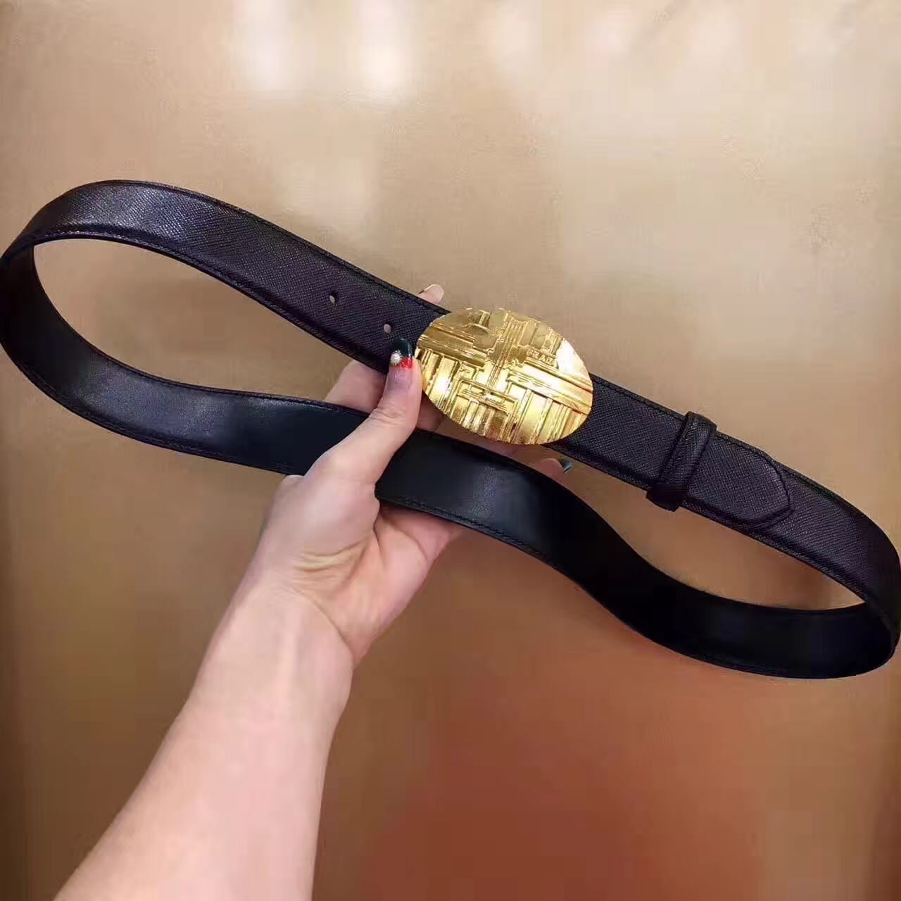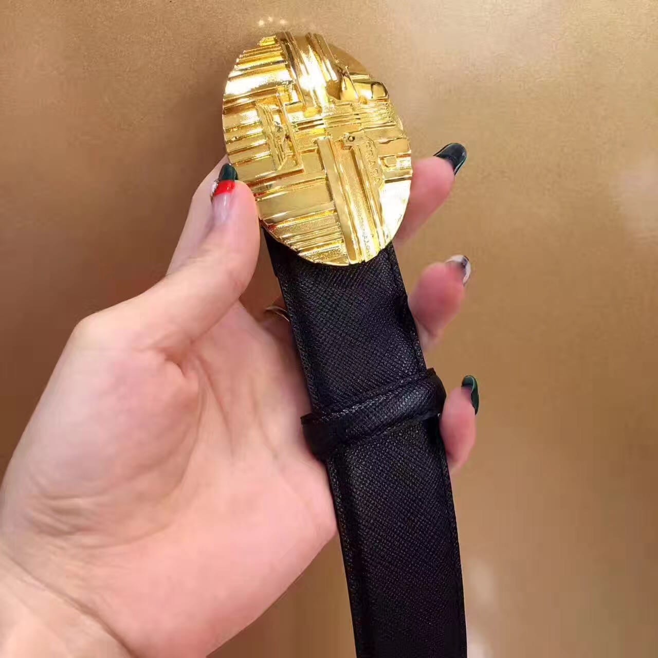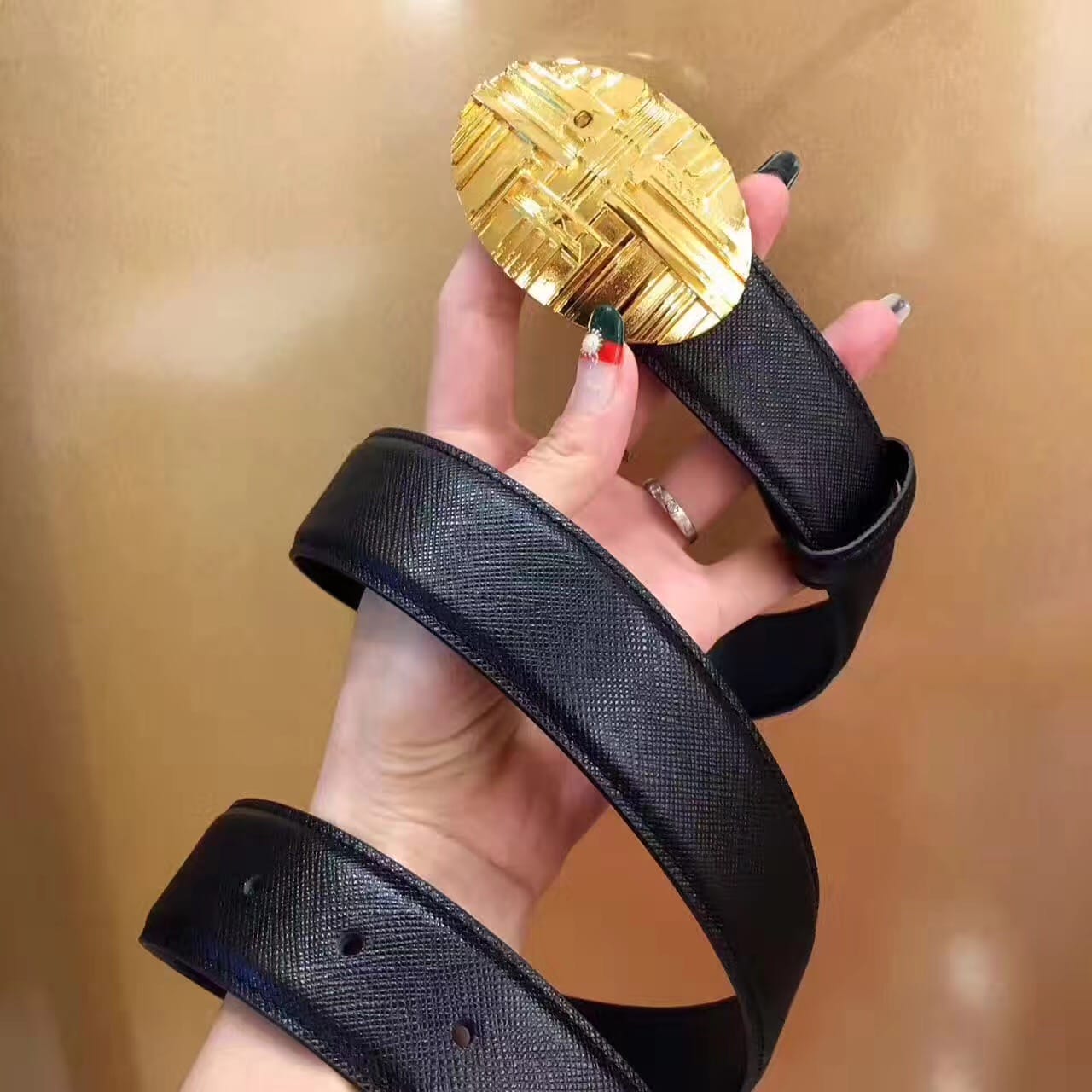 普拉达 金色钢扣搭配头层牛皮十字纹腰带
