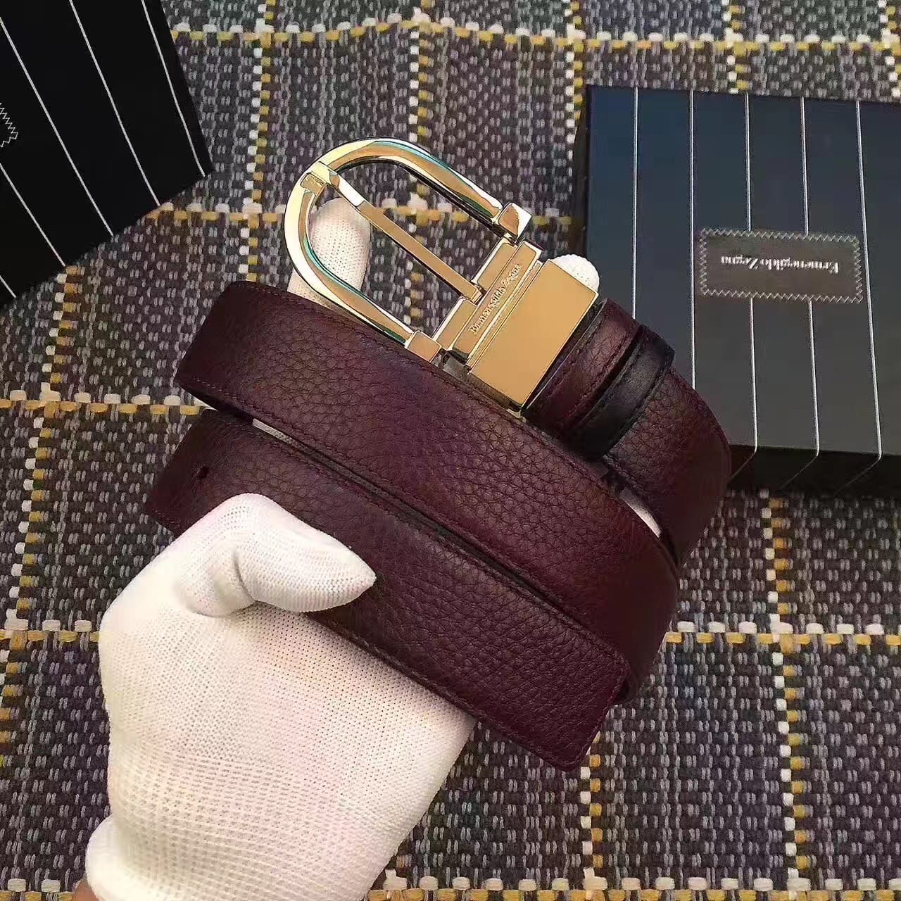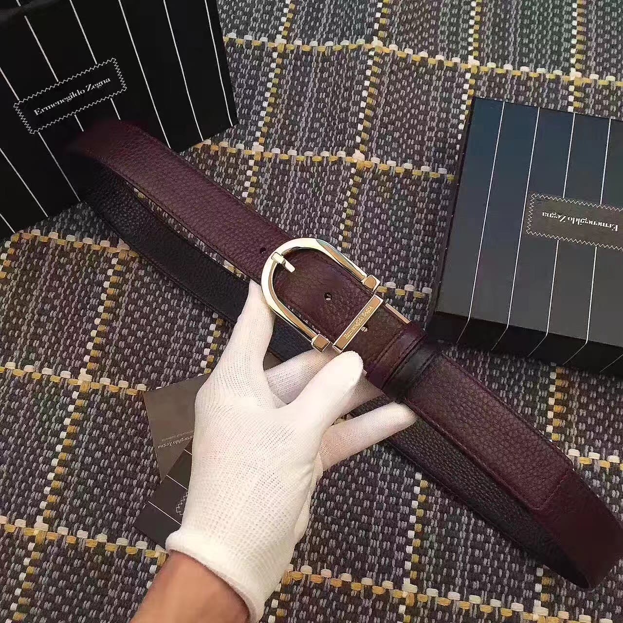 杰尼亚 (Zegna) 是世界闻名的意大利男装品牌,头层牛皮压鸵鸟脚纹腰带。