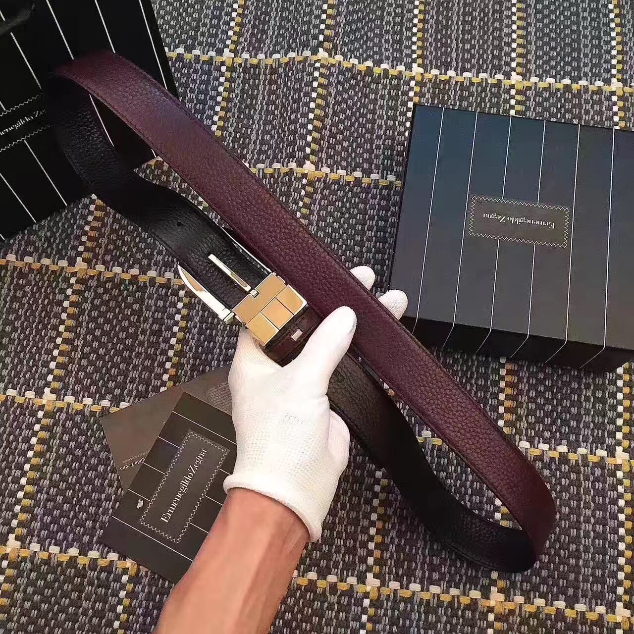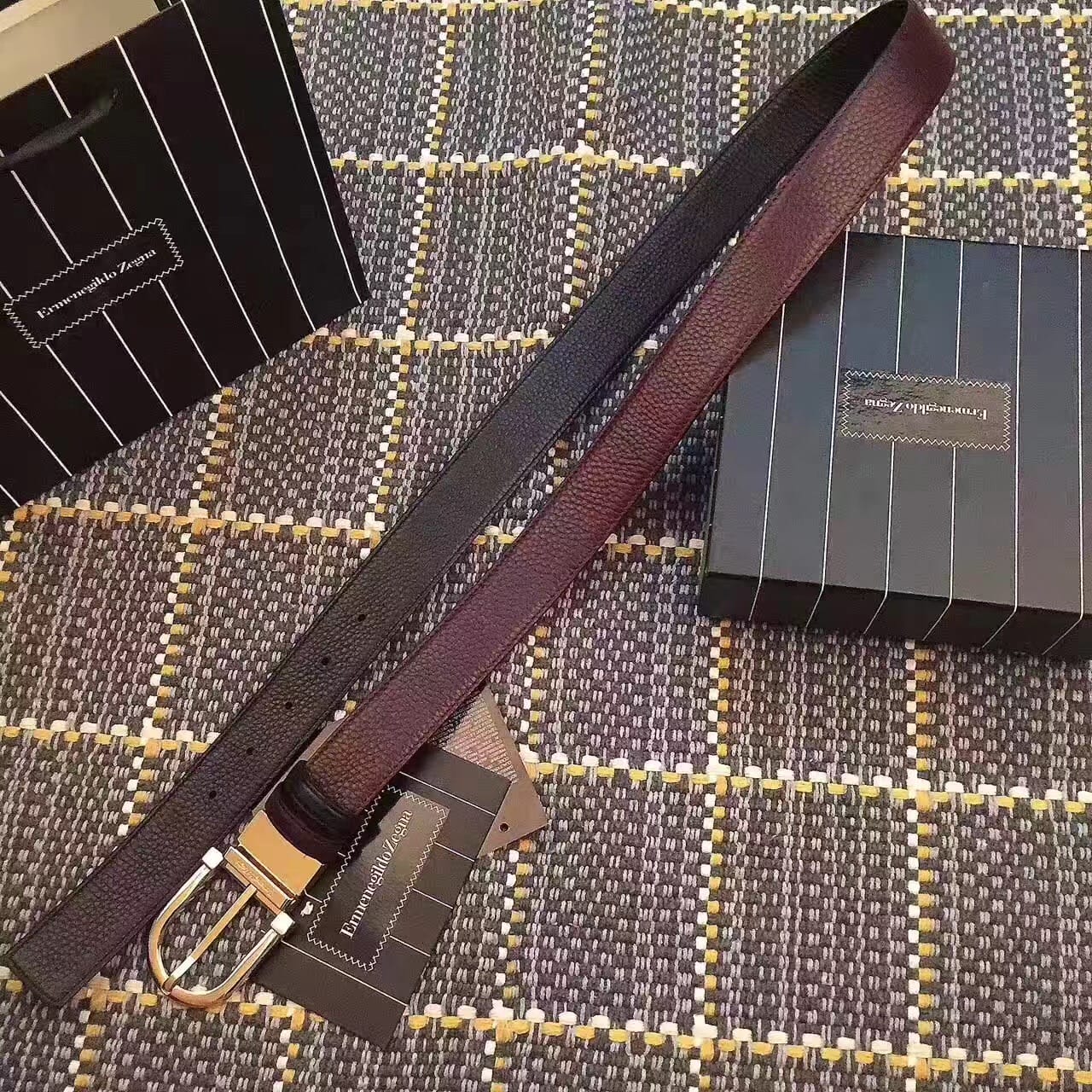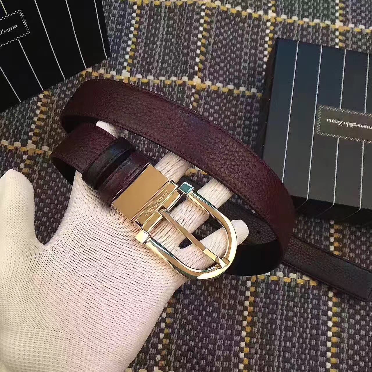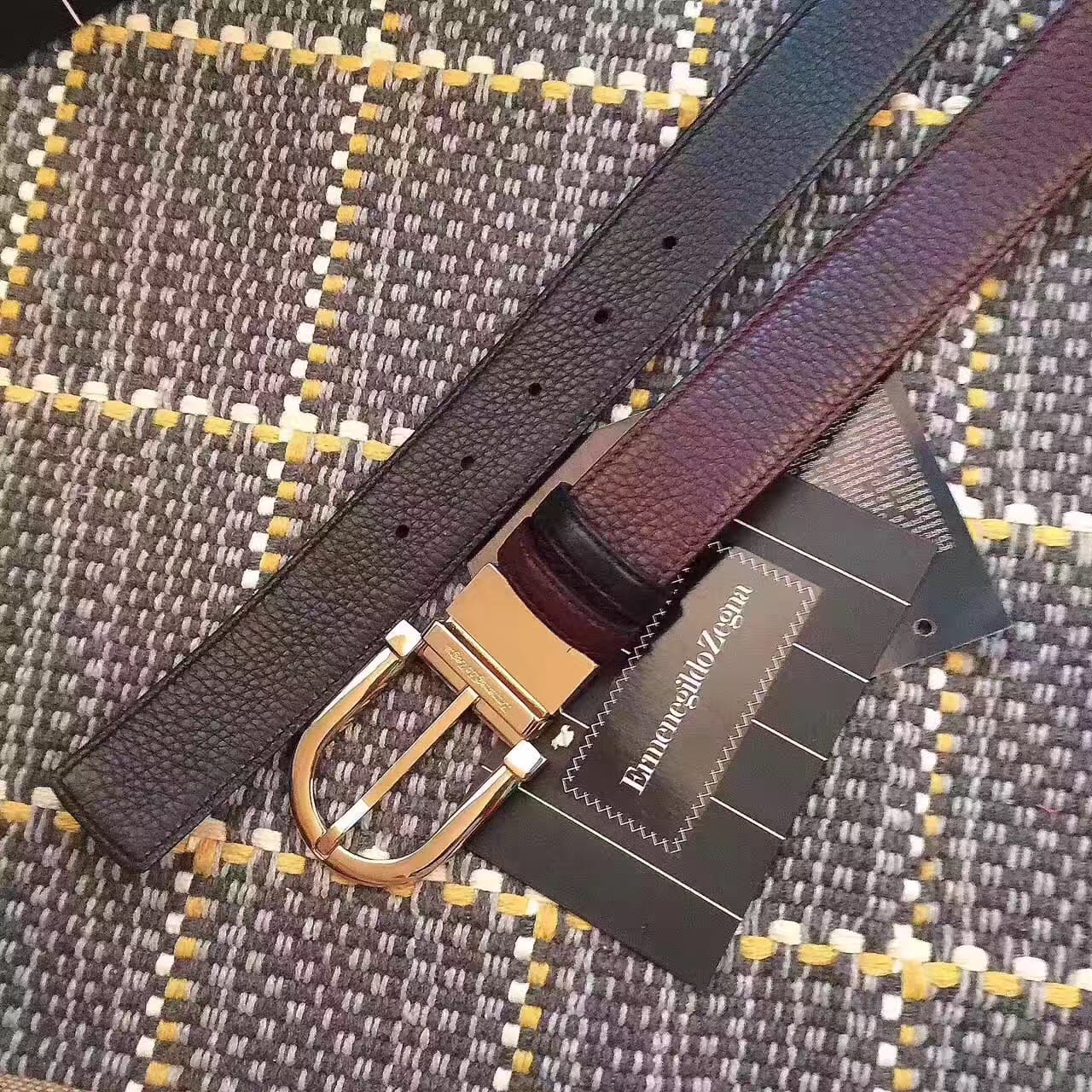 杰尼亚商务休闲款腰带 双面头层牛皮 做工细致