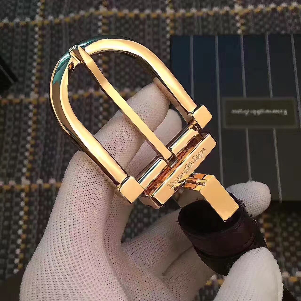 杰尼亚 (Zegna) 金色精品钢扣 男士腰带