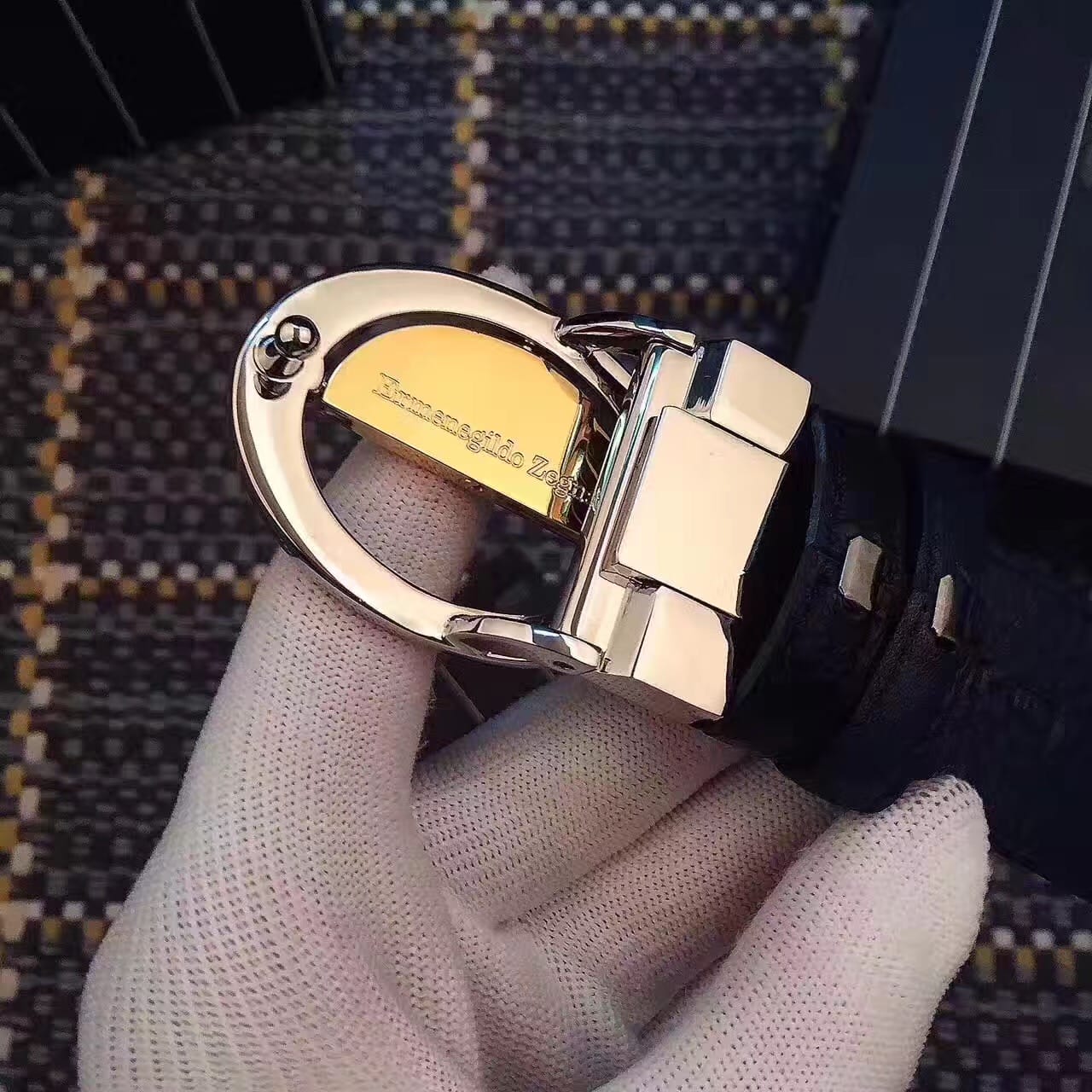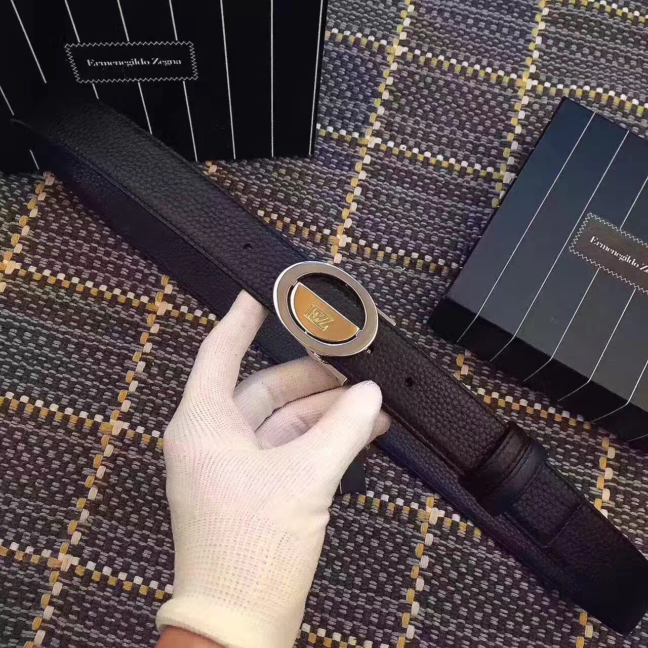 杰尼亚 (Zegna) 金色精品钢扣 男士腰带