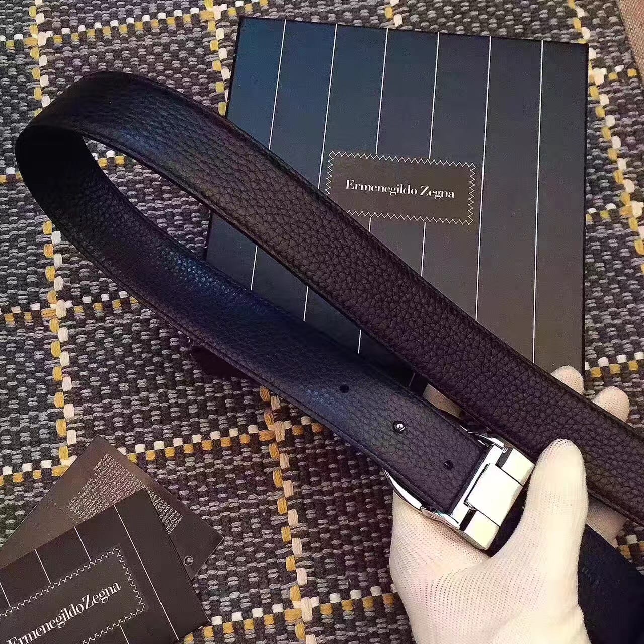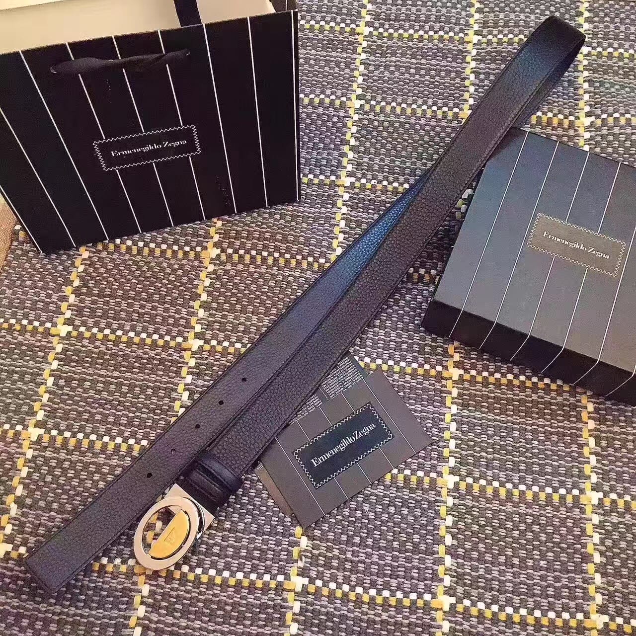杰尼亚 (Zegna) 银色精品钢扣 男士腰带