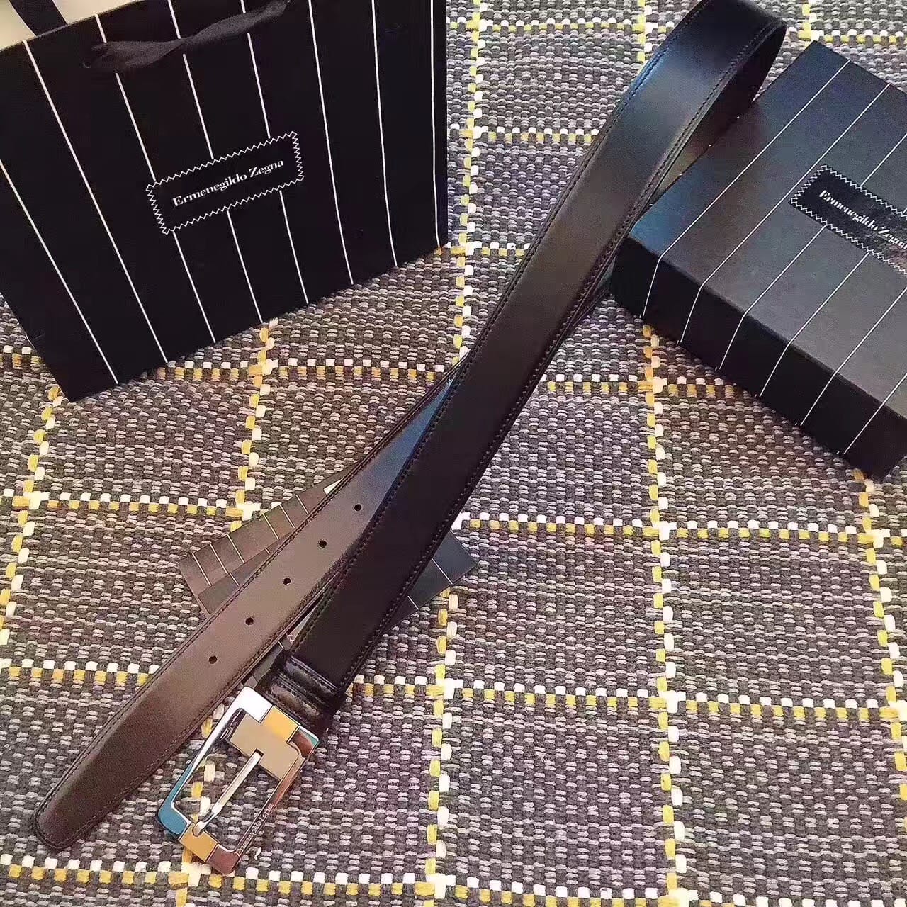 杰尼亚 (Zegna) 银色精品钢扣 男士腰带