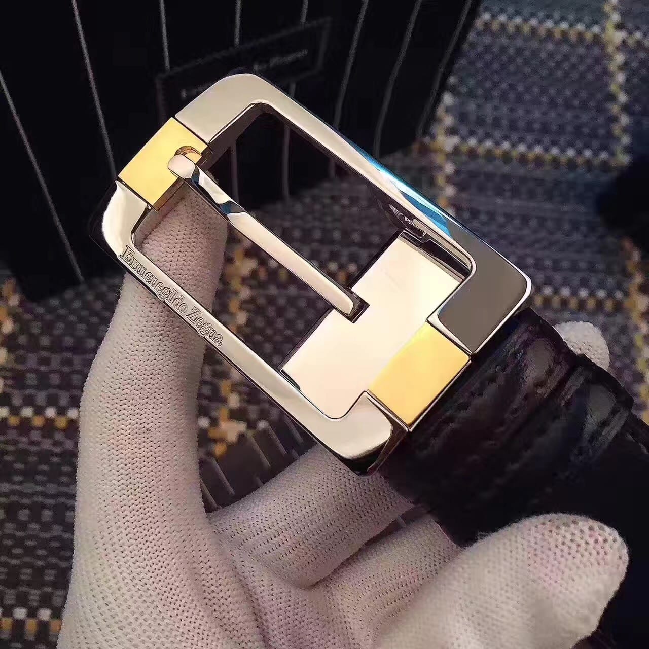 杰尼亚 (Zegna) 金色精品钢扣 男士腰带