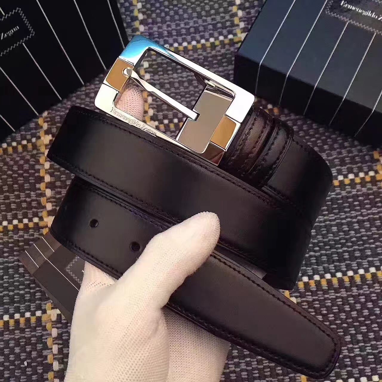 杰尼亚新款,原版品质,带身3.5cm宽,双面头层牛皮,做工细致,搭配精品钢扣,商务休闲可用。