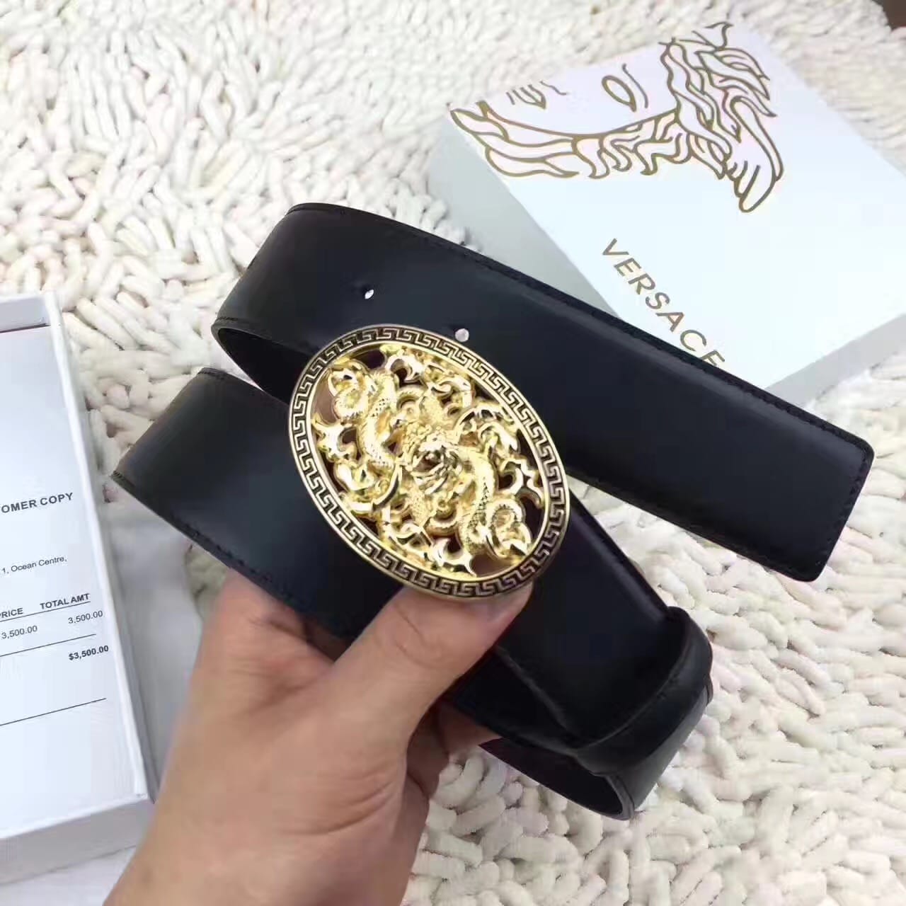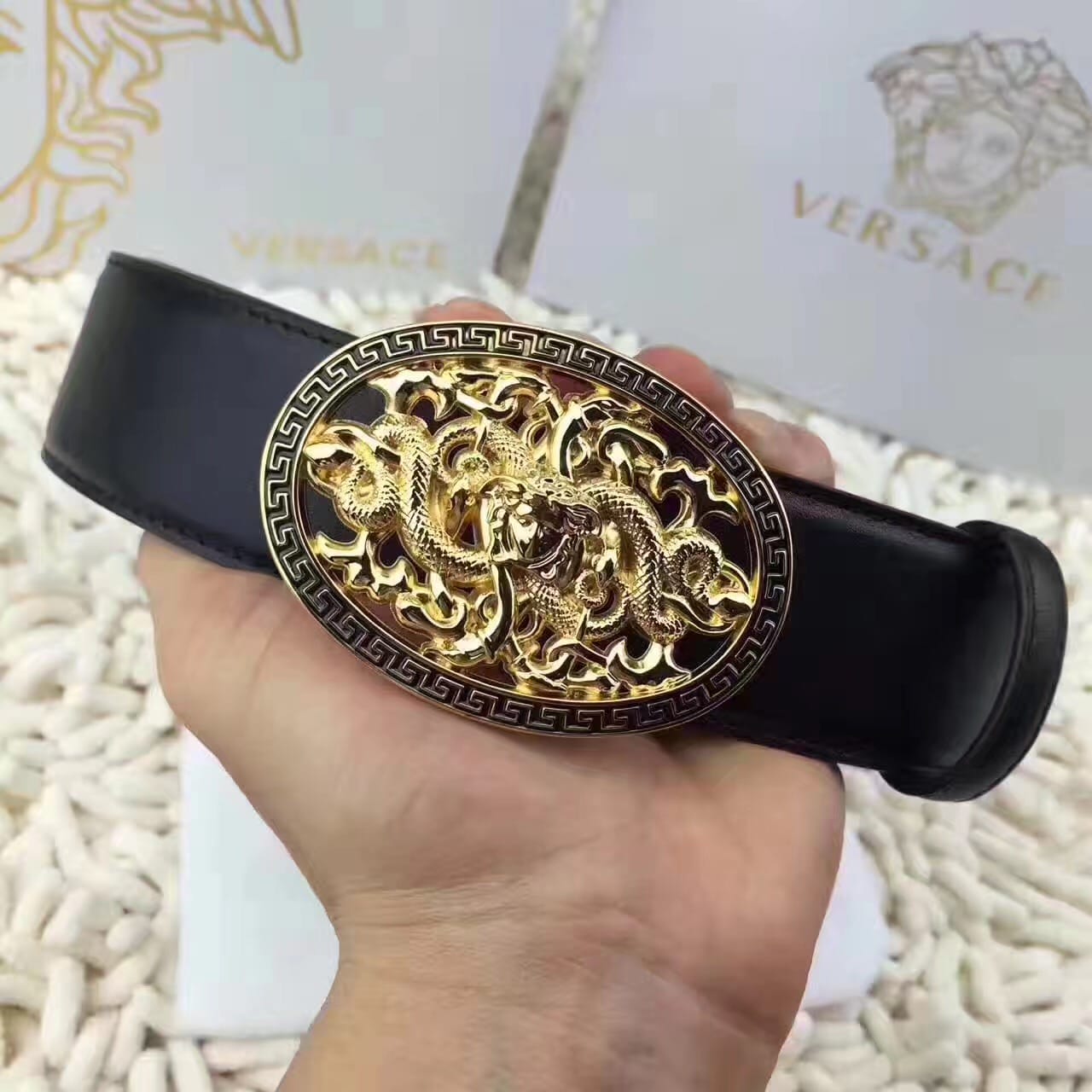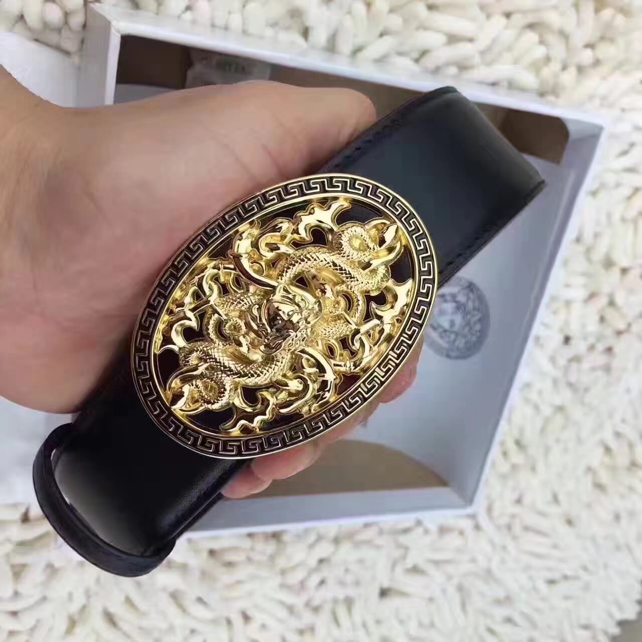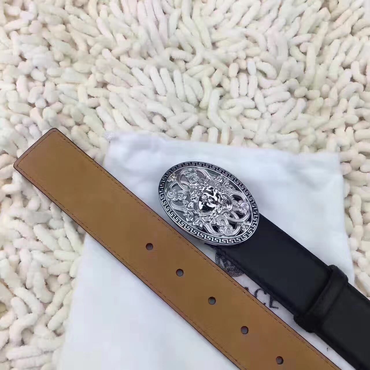 范思哲 经典的美杜莎扣头 双面头层牛皮腰带