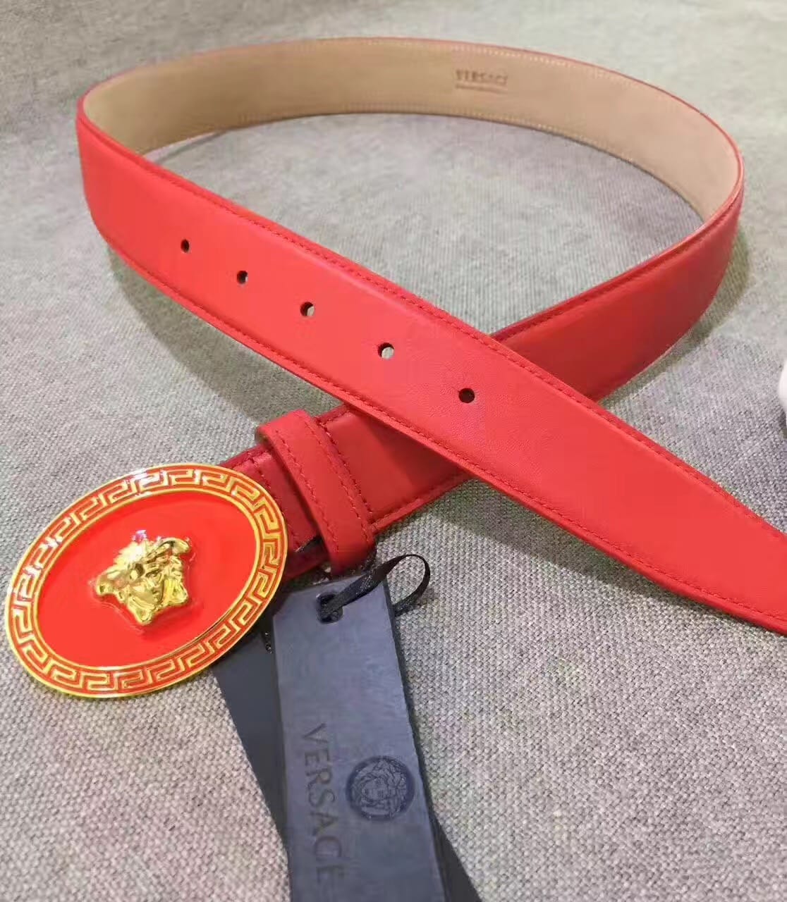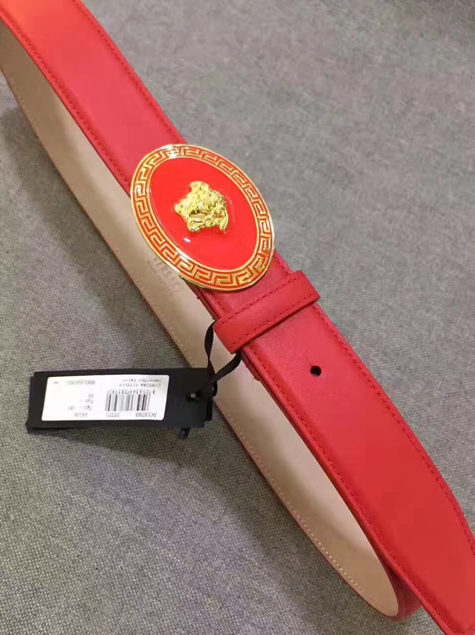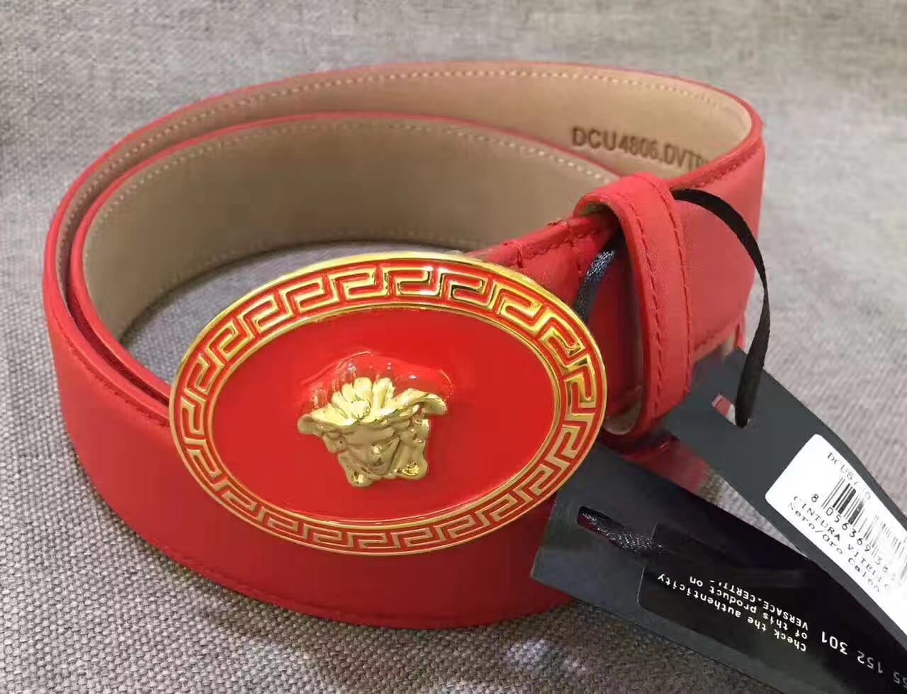 范思哲 耀眼大红色牛皮腰带 原厂挂牌 原厂编号