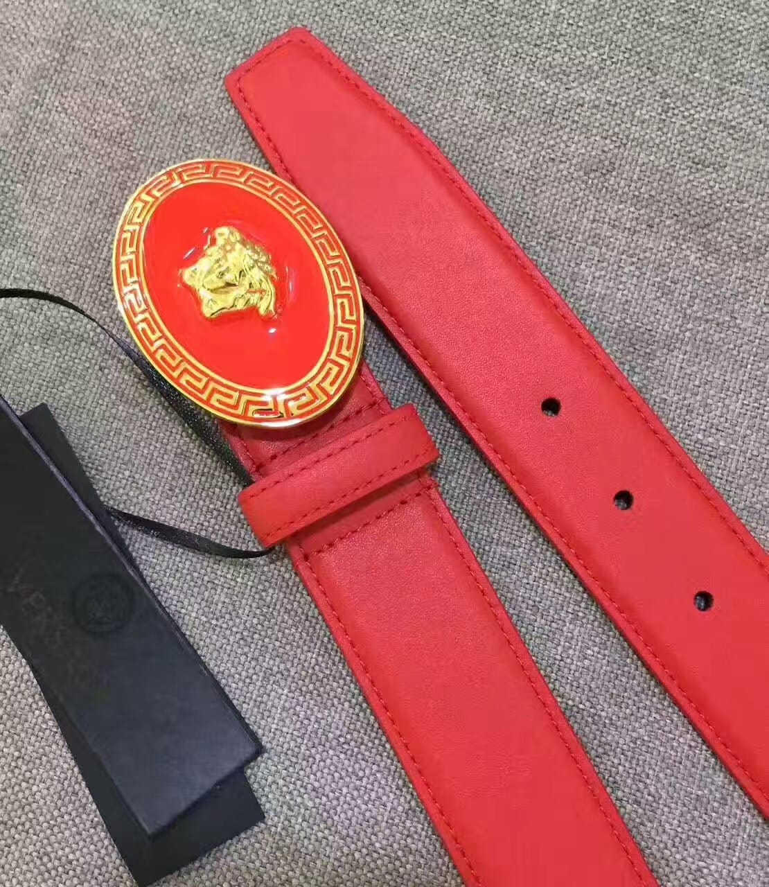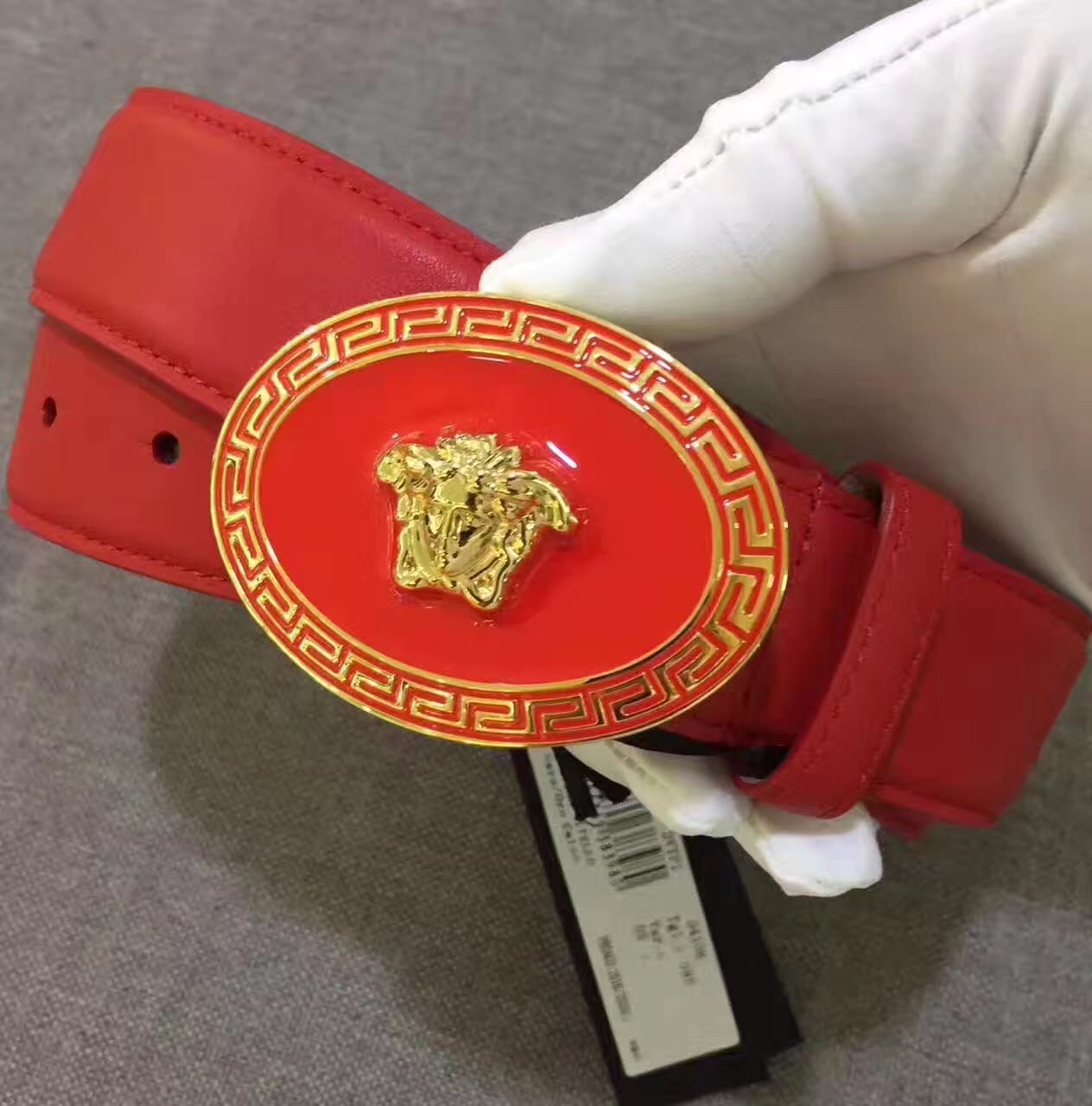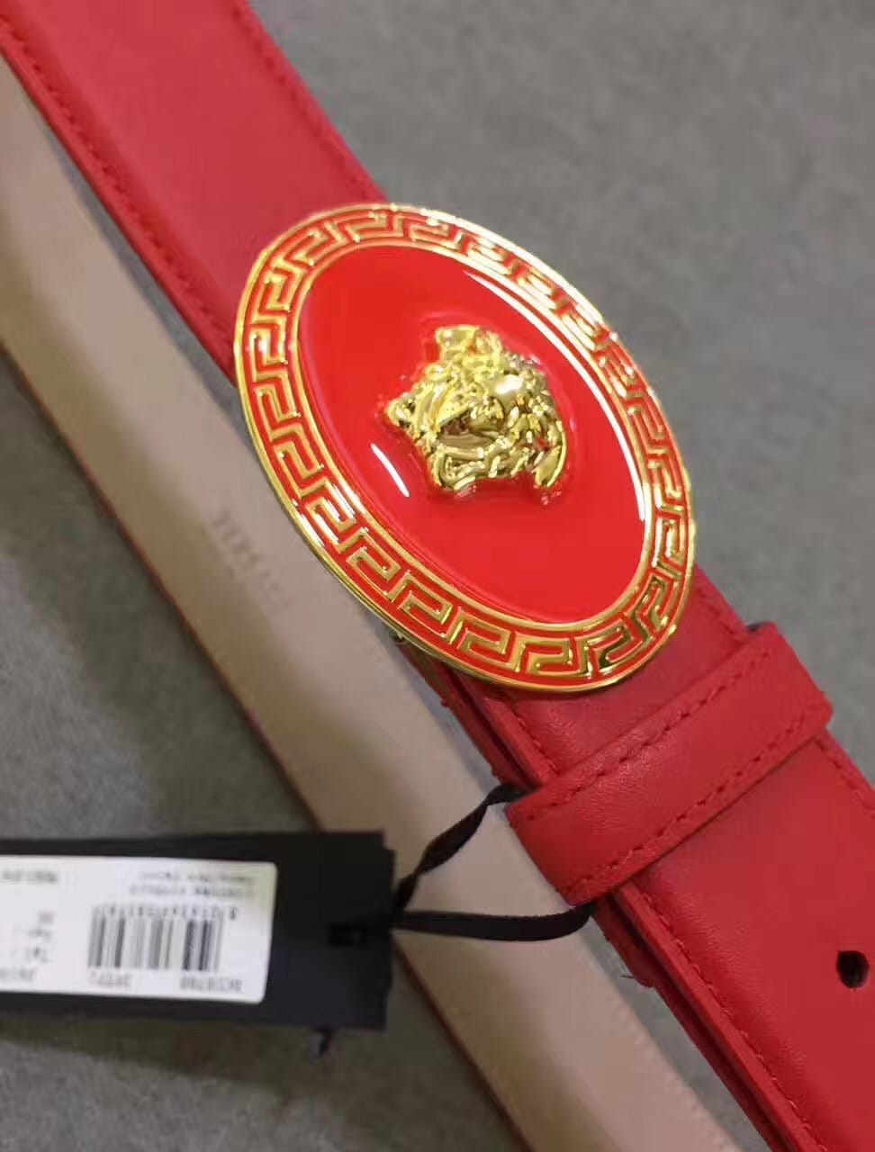 范思哲 耀眼大红色牛皮腰带 原厂挂牌 原厂编号