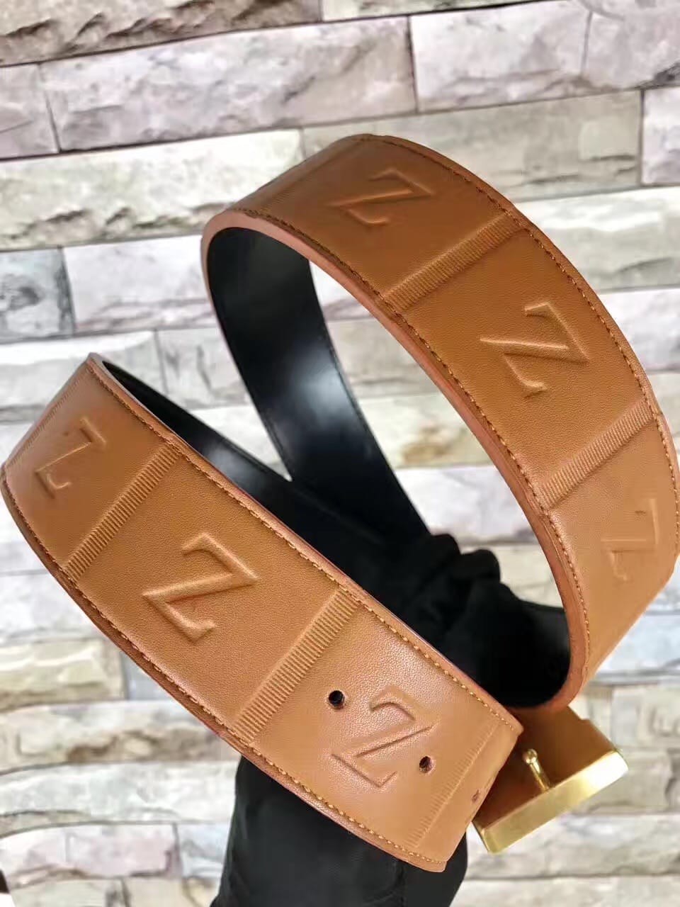 杰尼亚 (Zegna)双面头层牛皮,面压Z字母花纹腰带。