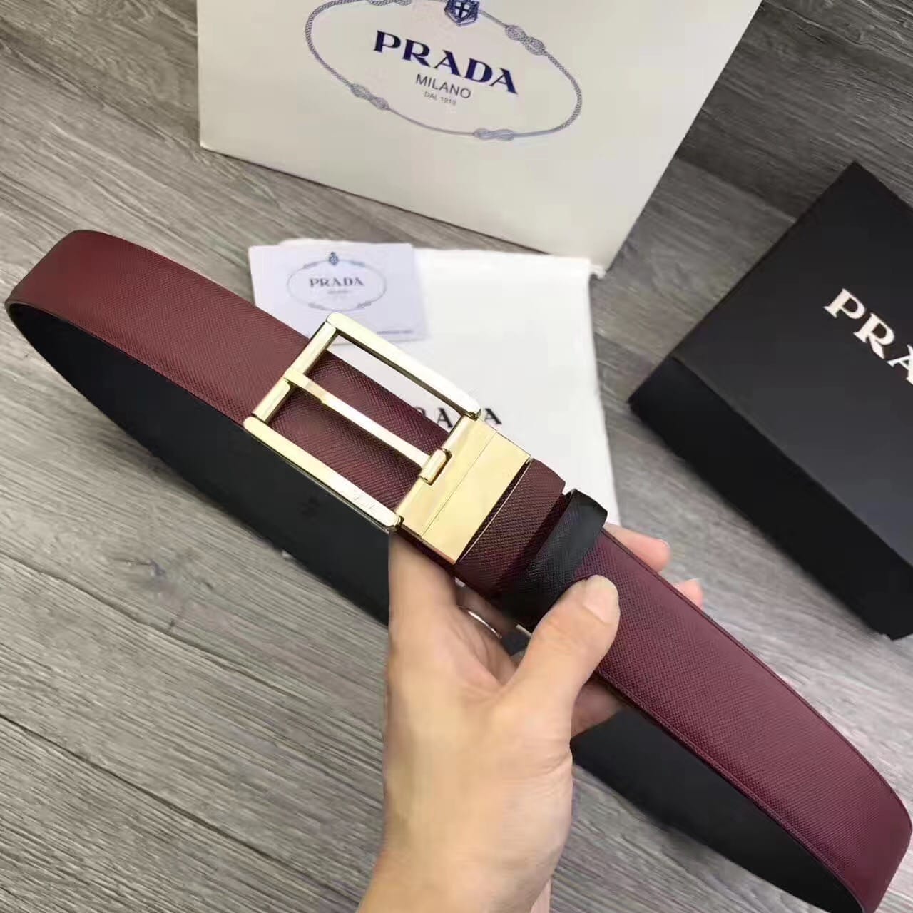 普拉达 世界著名奢侈品品牌 采用100%进口原版皮男士腰带