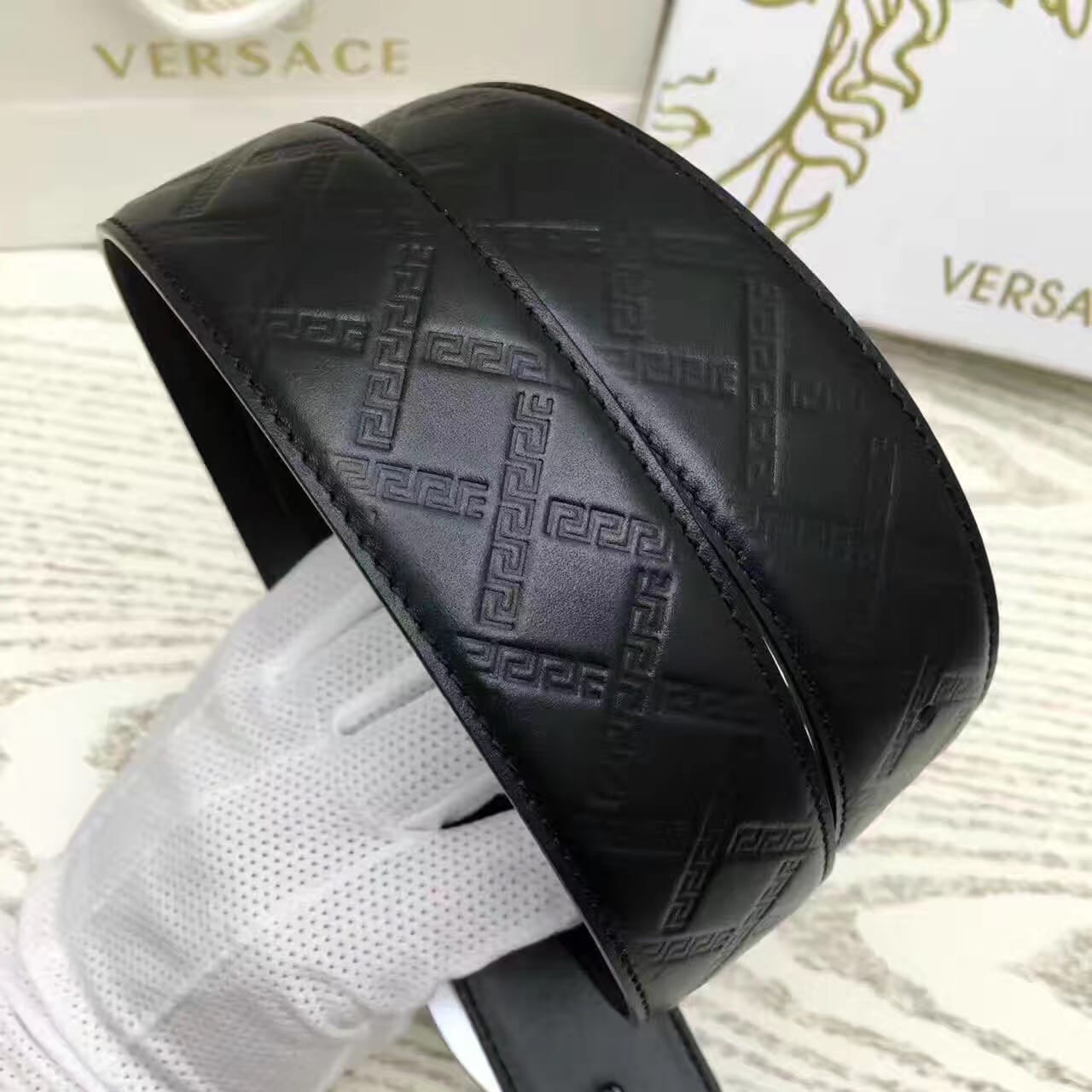 Versace压花款,双面进口头层牛皮,现货实拍,宽度3.8cm。非市场普通二层皮货。商务休闲可用。