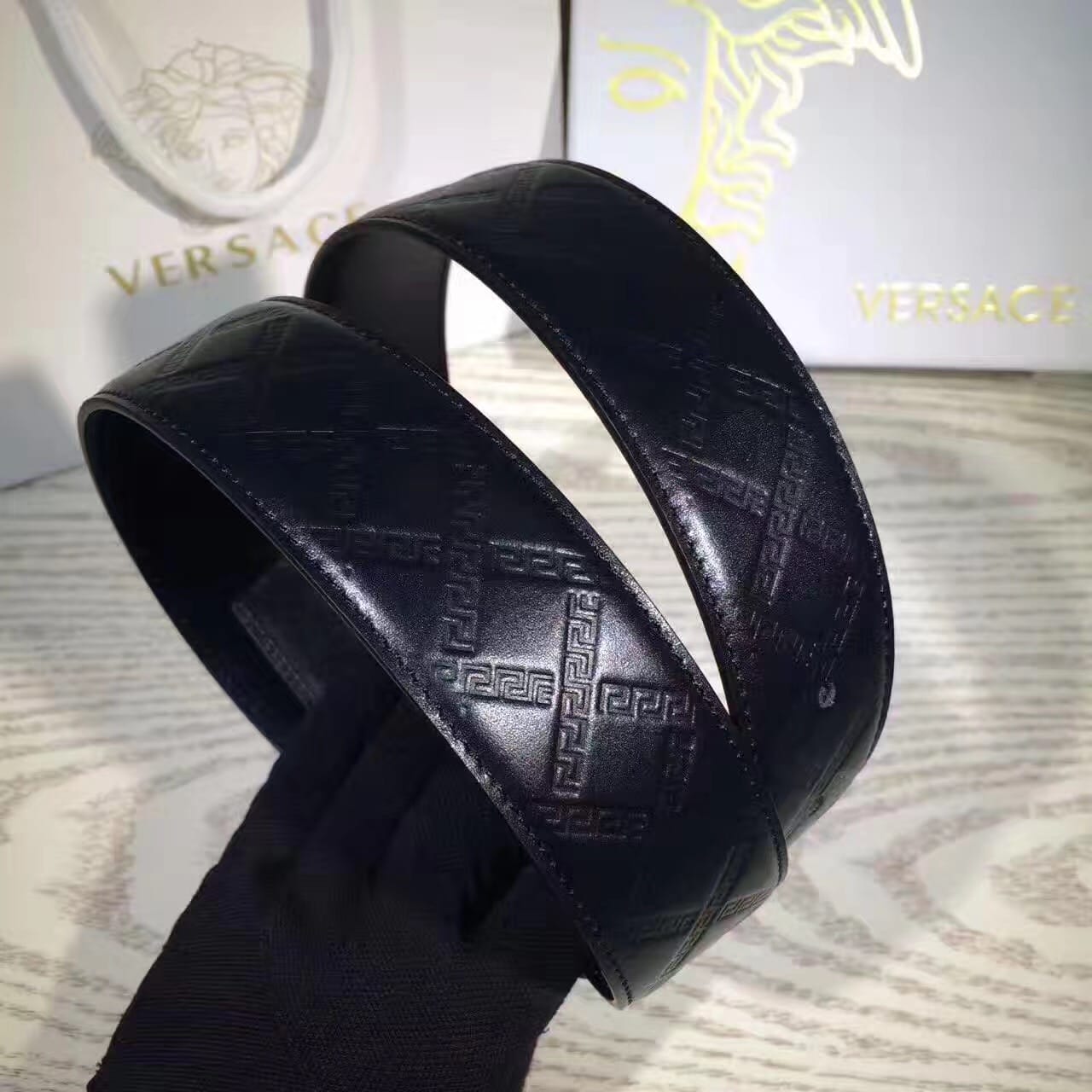 Versace压花款 双面进口头层牛皮腰带