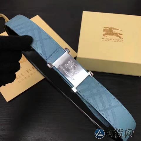 Burberry原版压花款 湖蓝色头层牛皮男士腰带