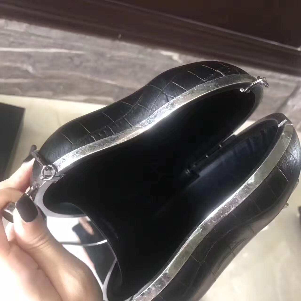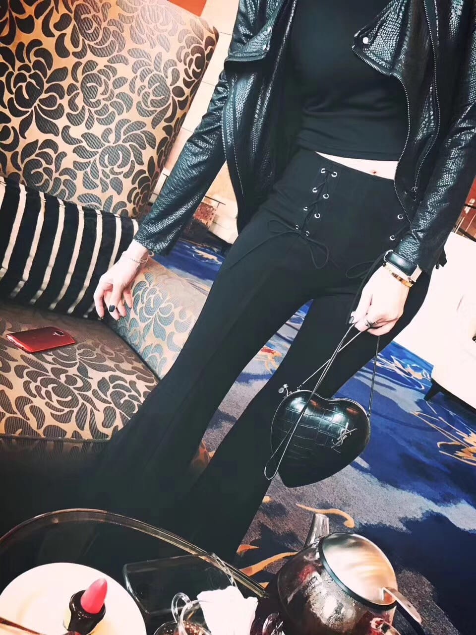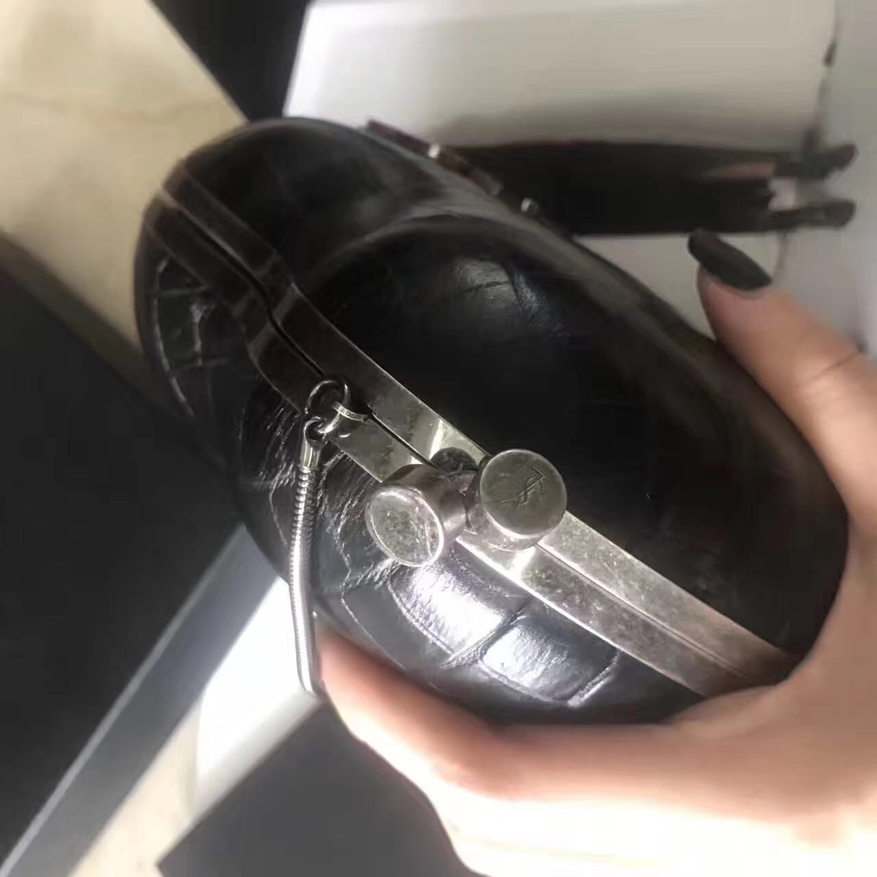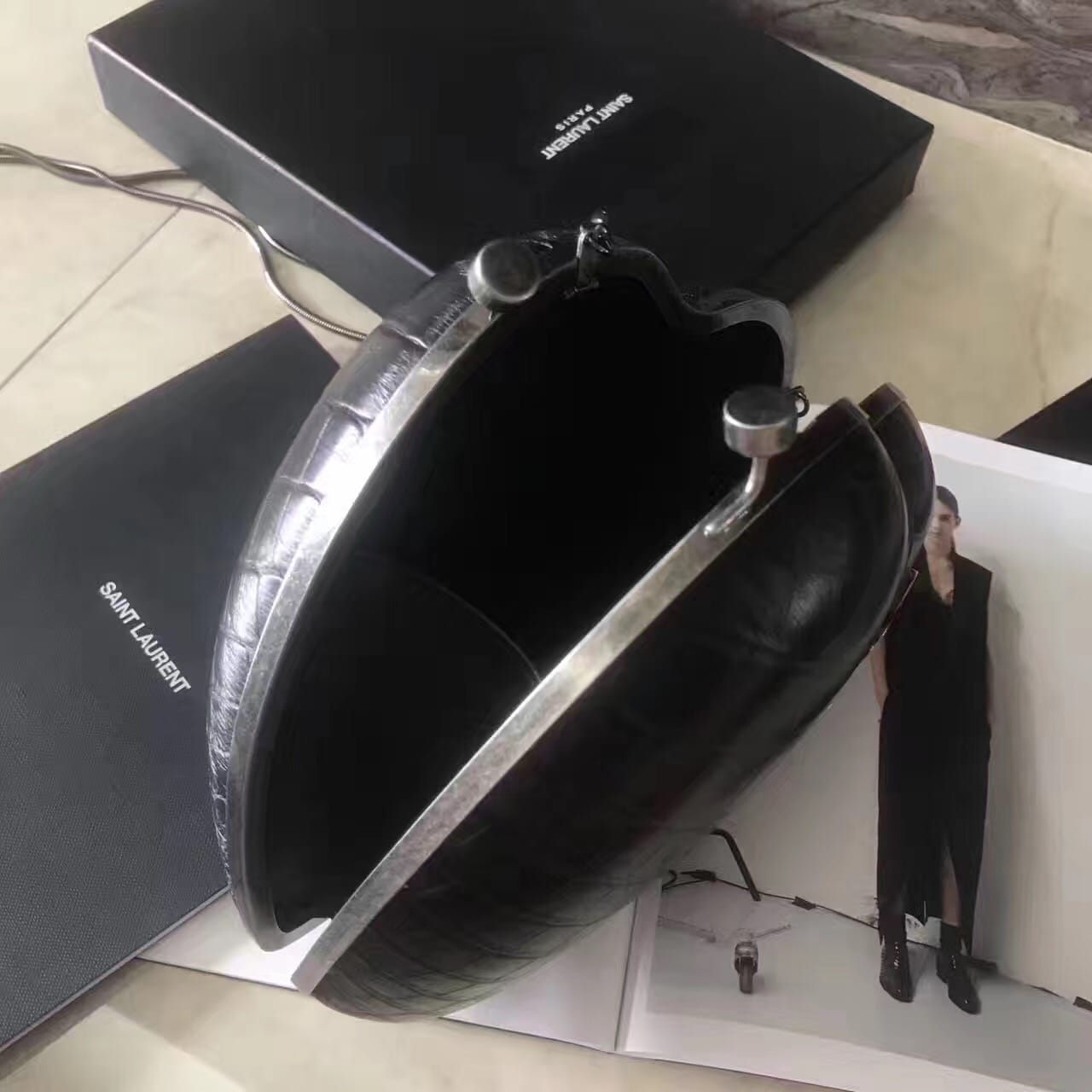 saint laurent 最新鳄鱼压花真皮love箱形袋,