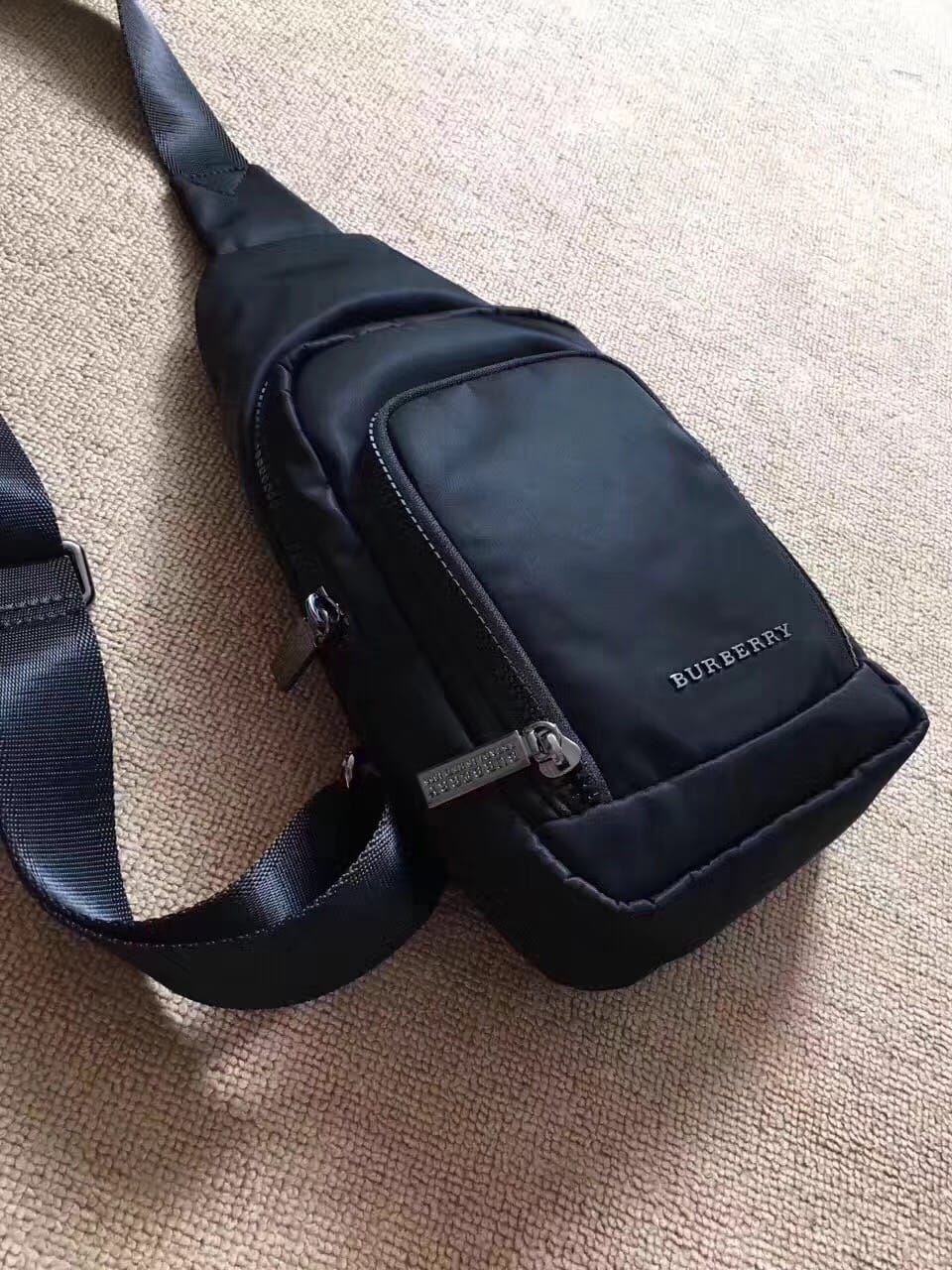 B家男士胸包,降落伞防水料材质,轻便实用,两个拉链兜设计,尺