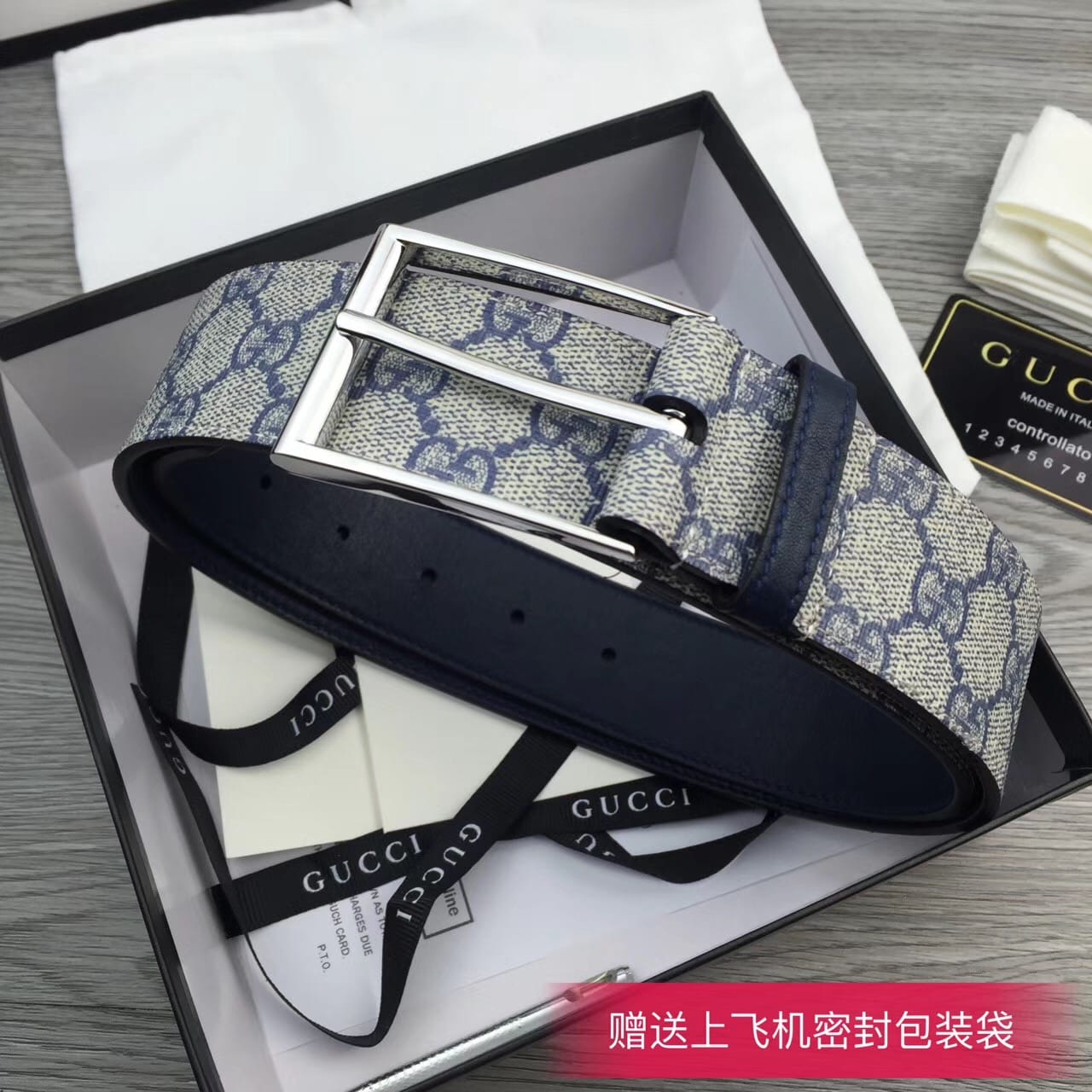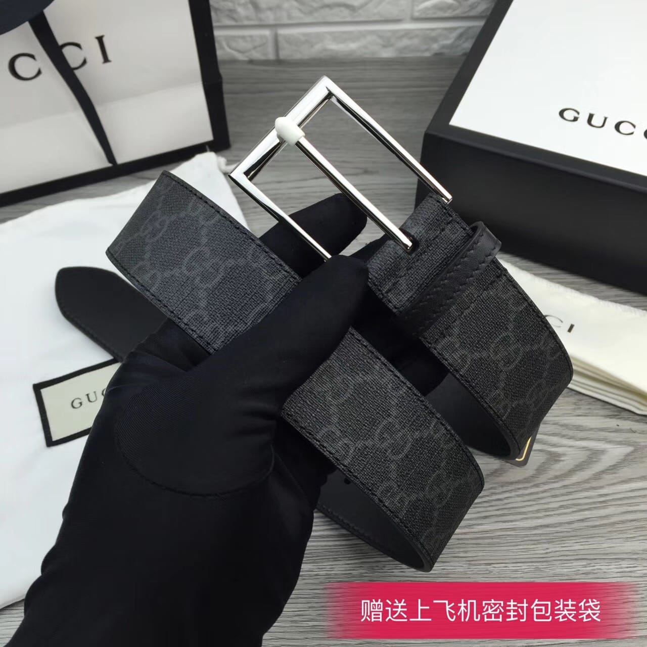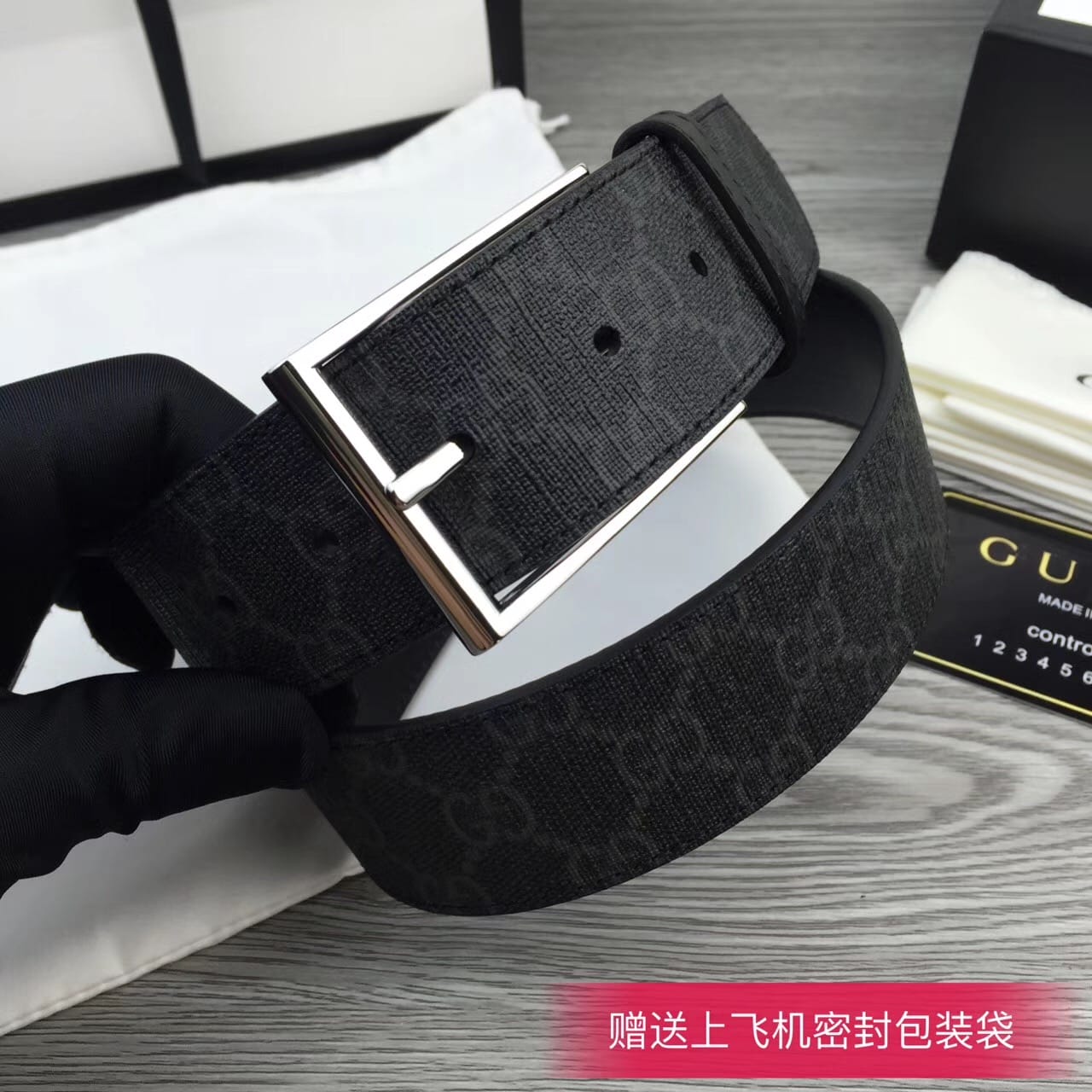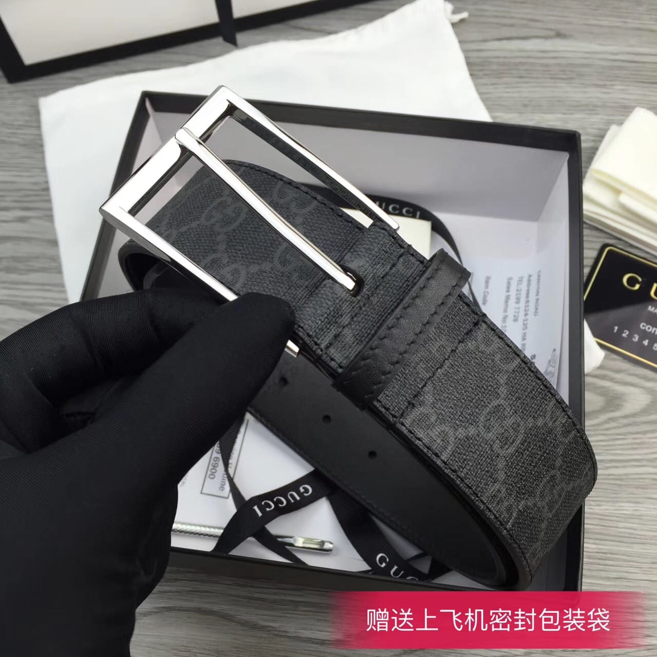 古奇最新款与欧洲站同步3.8宽男款皮带,双面头层牛皮,配复动