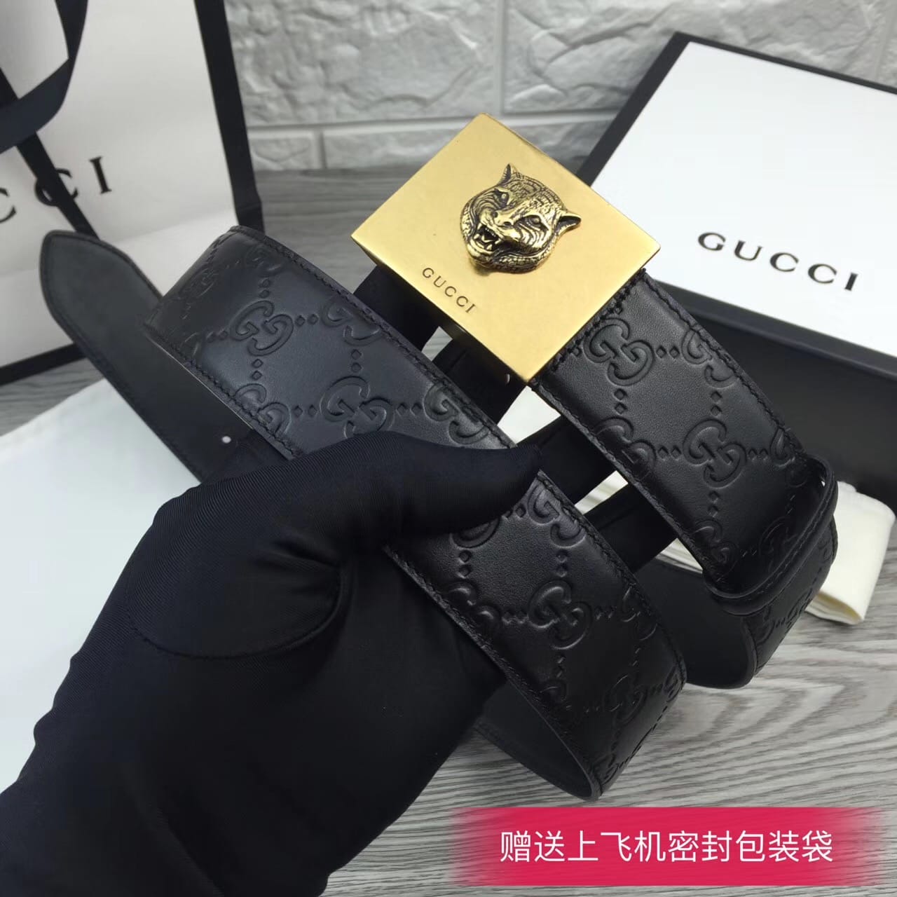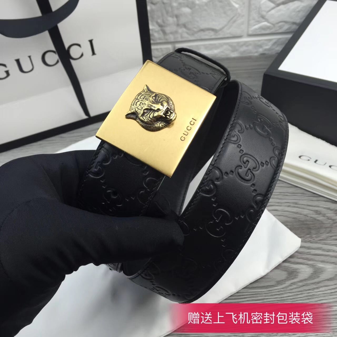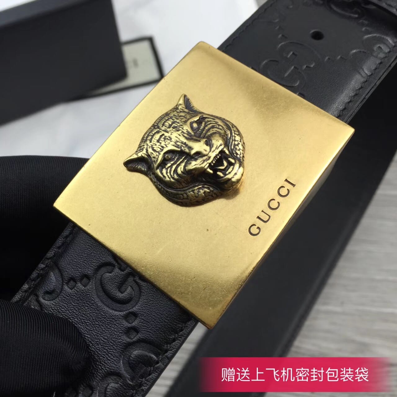 古奇最新款与欧洲站同步3.8宽男款皮带,双面头层牛皮,配复动
