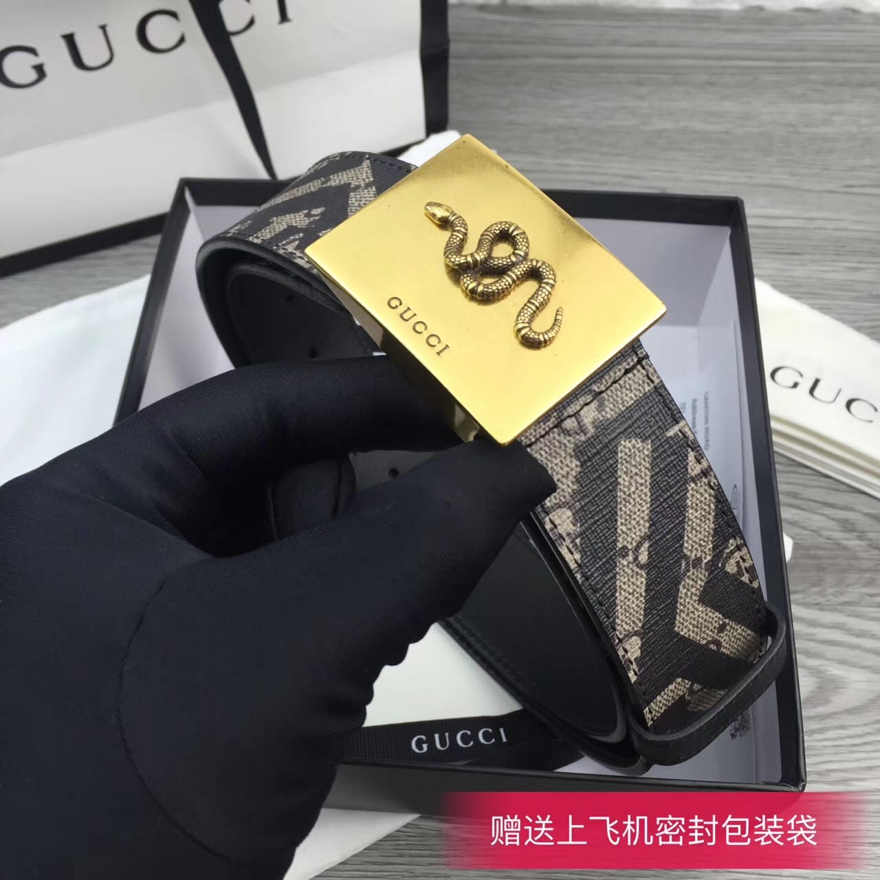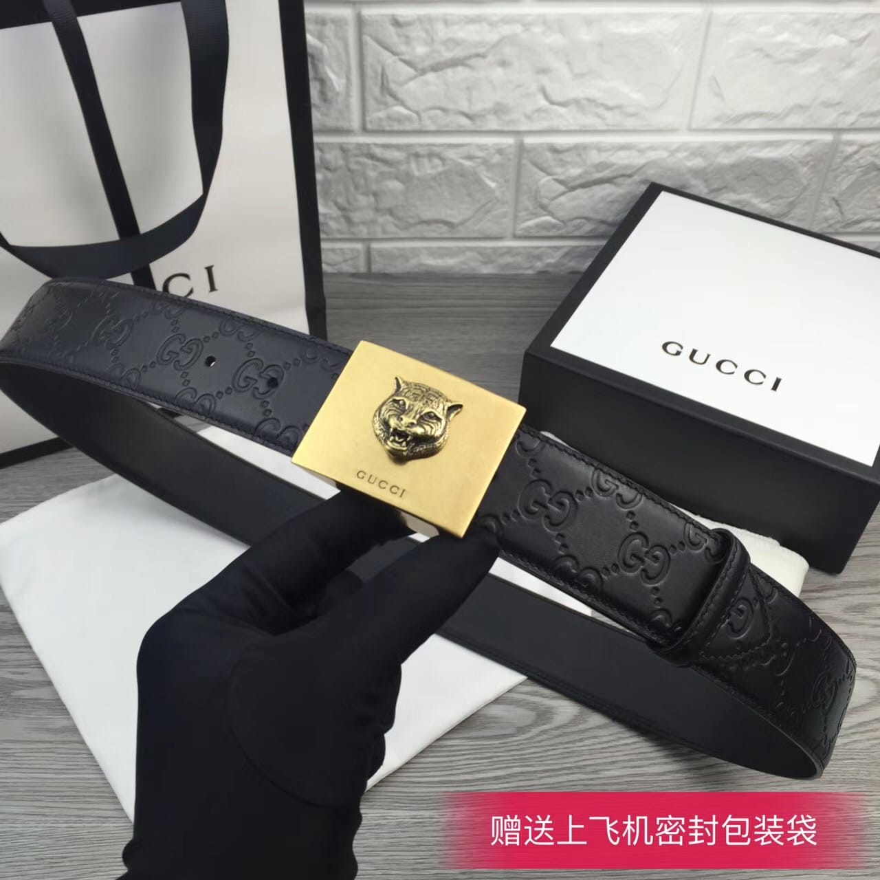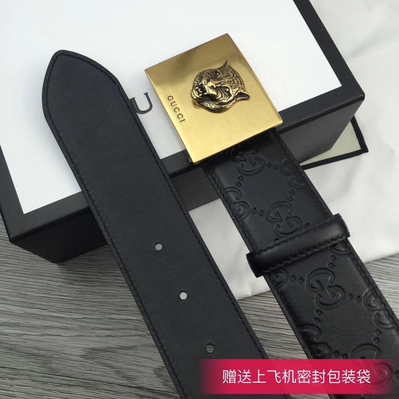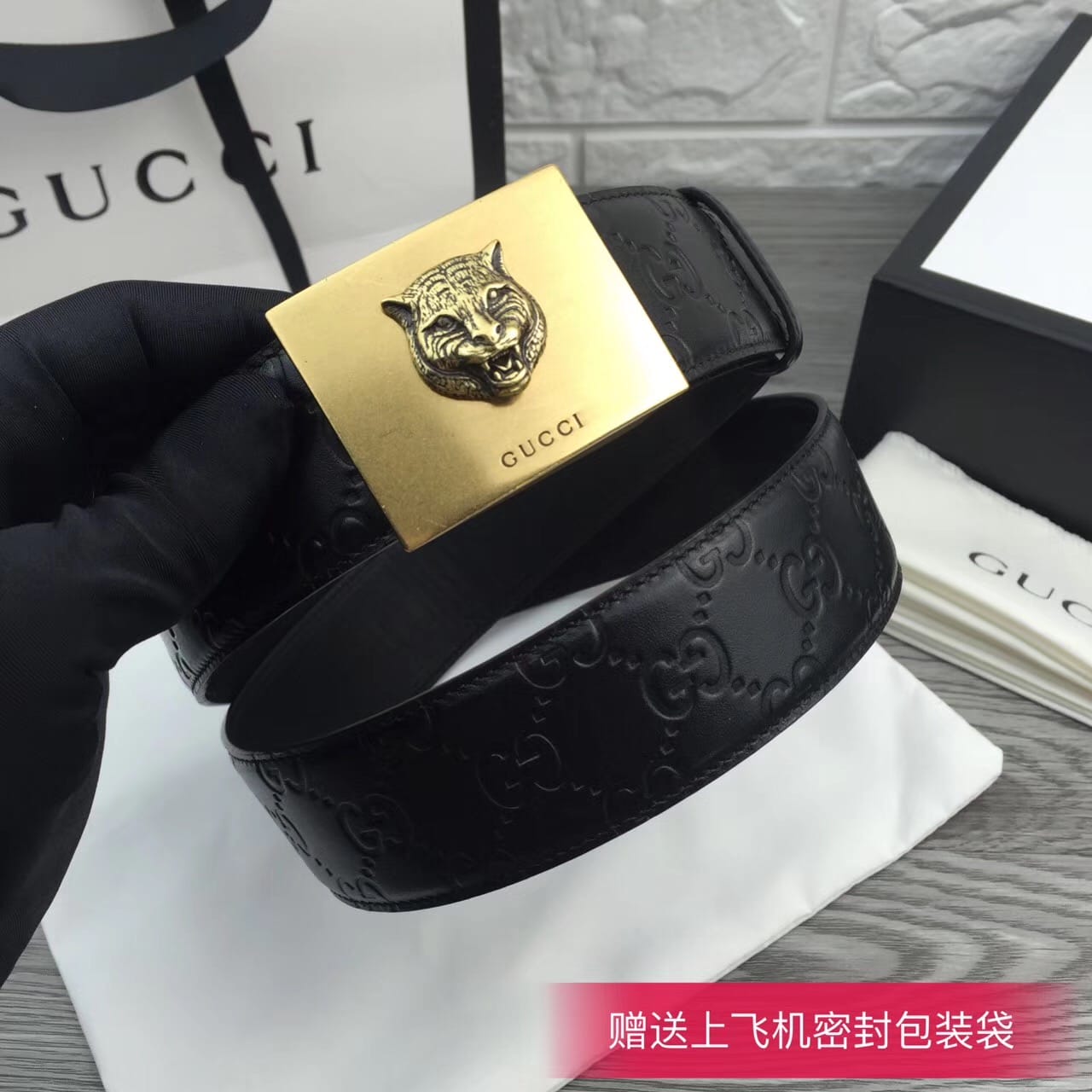 古奇最新款与欧洲站同步3.8宽男款皮带,双面头层牛皮,配复动