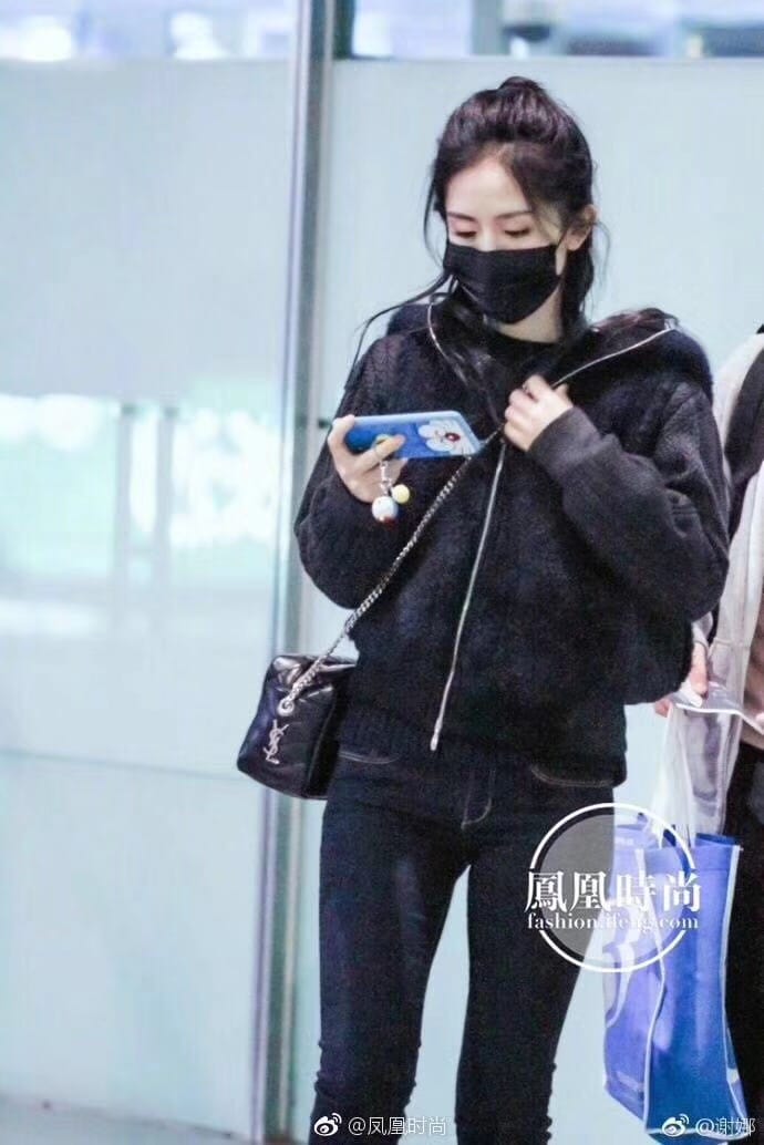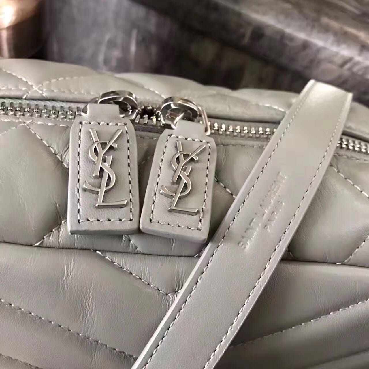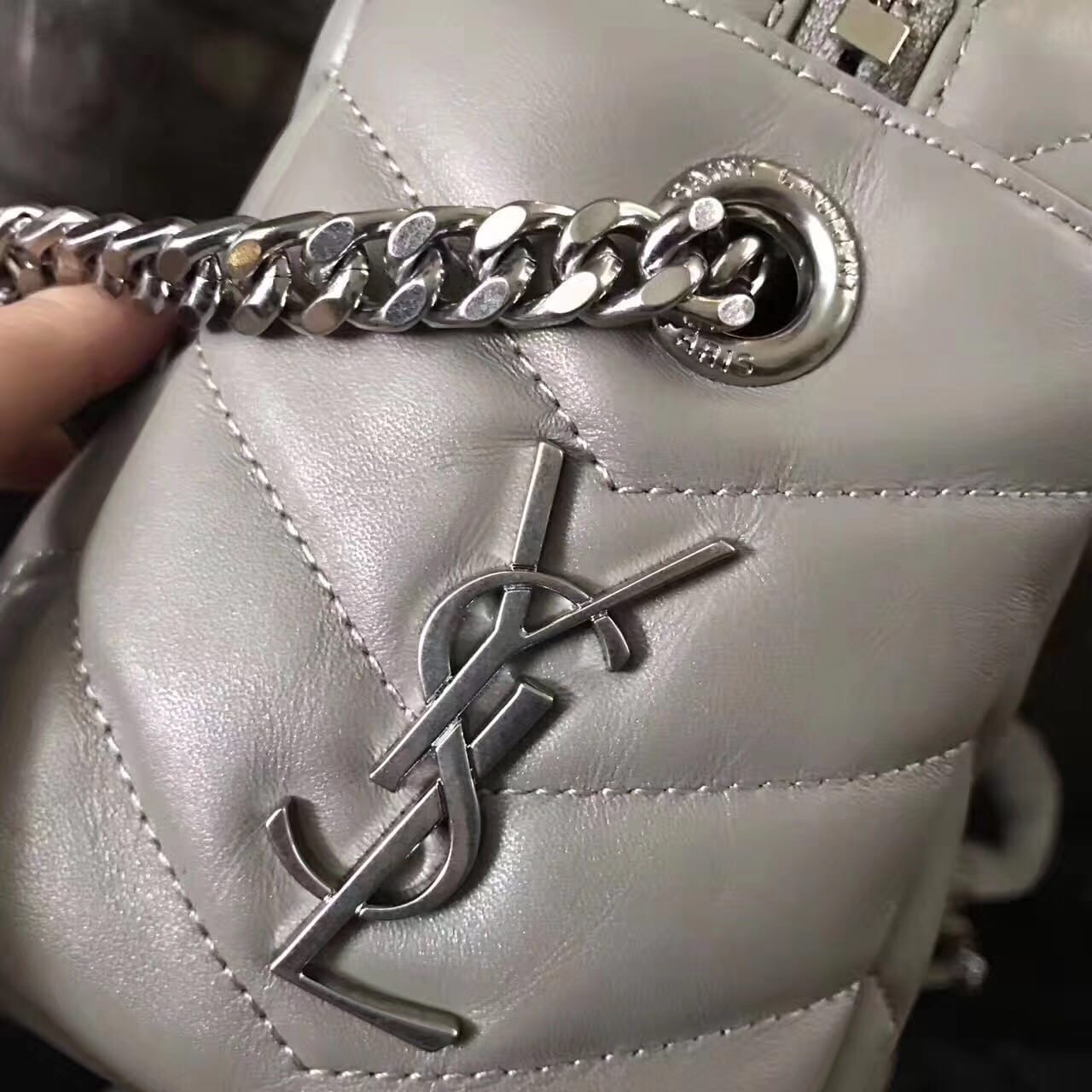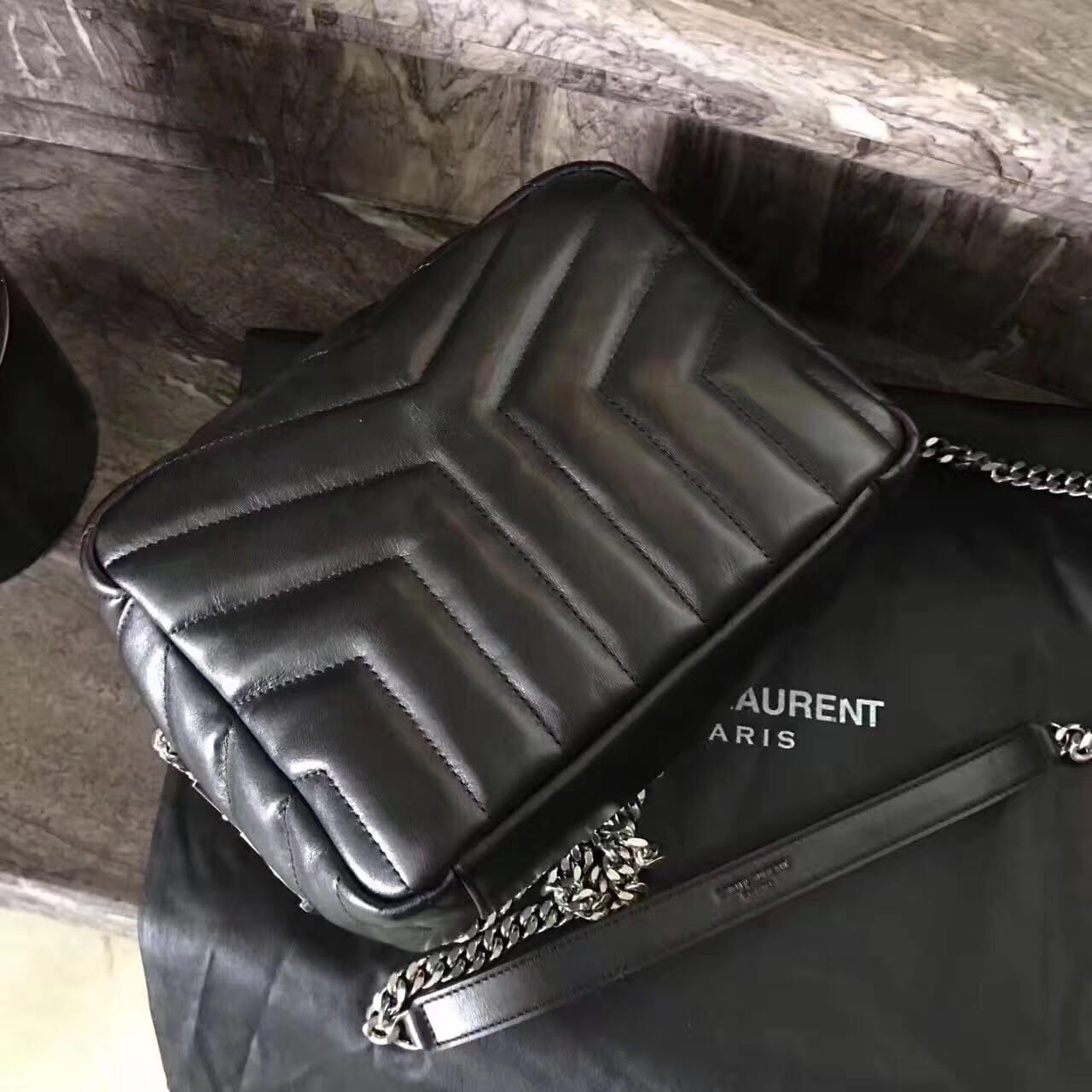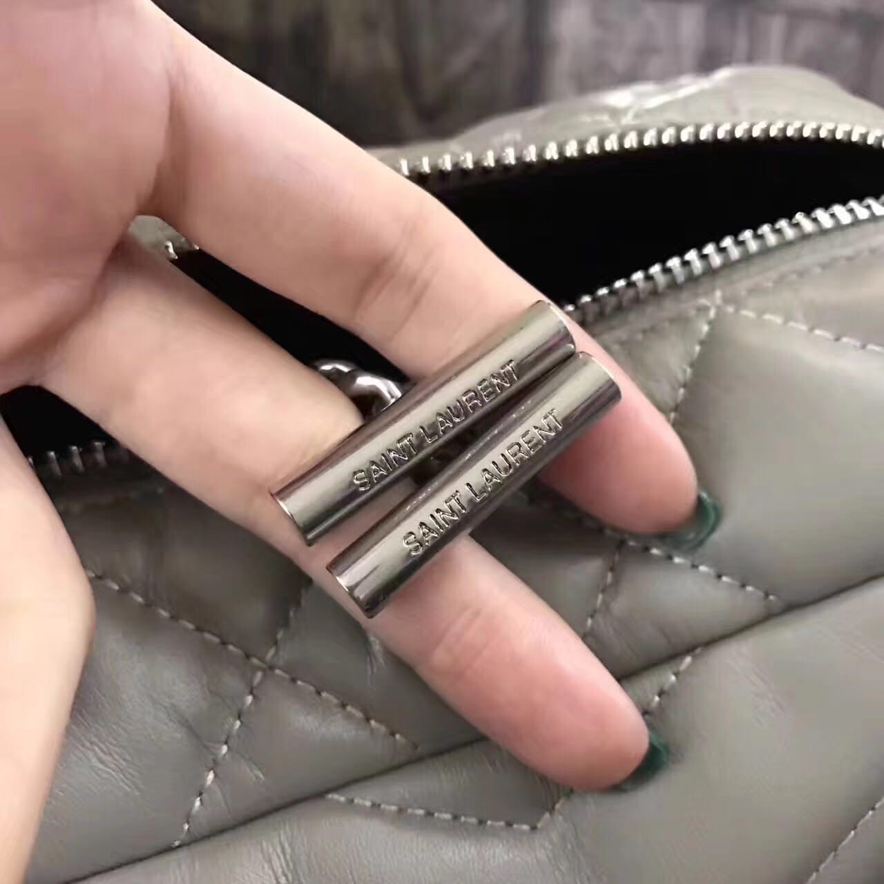 今年的保龄球包,侧面带金属联结YSL标志,金属和真皮链条肩带