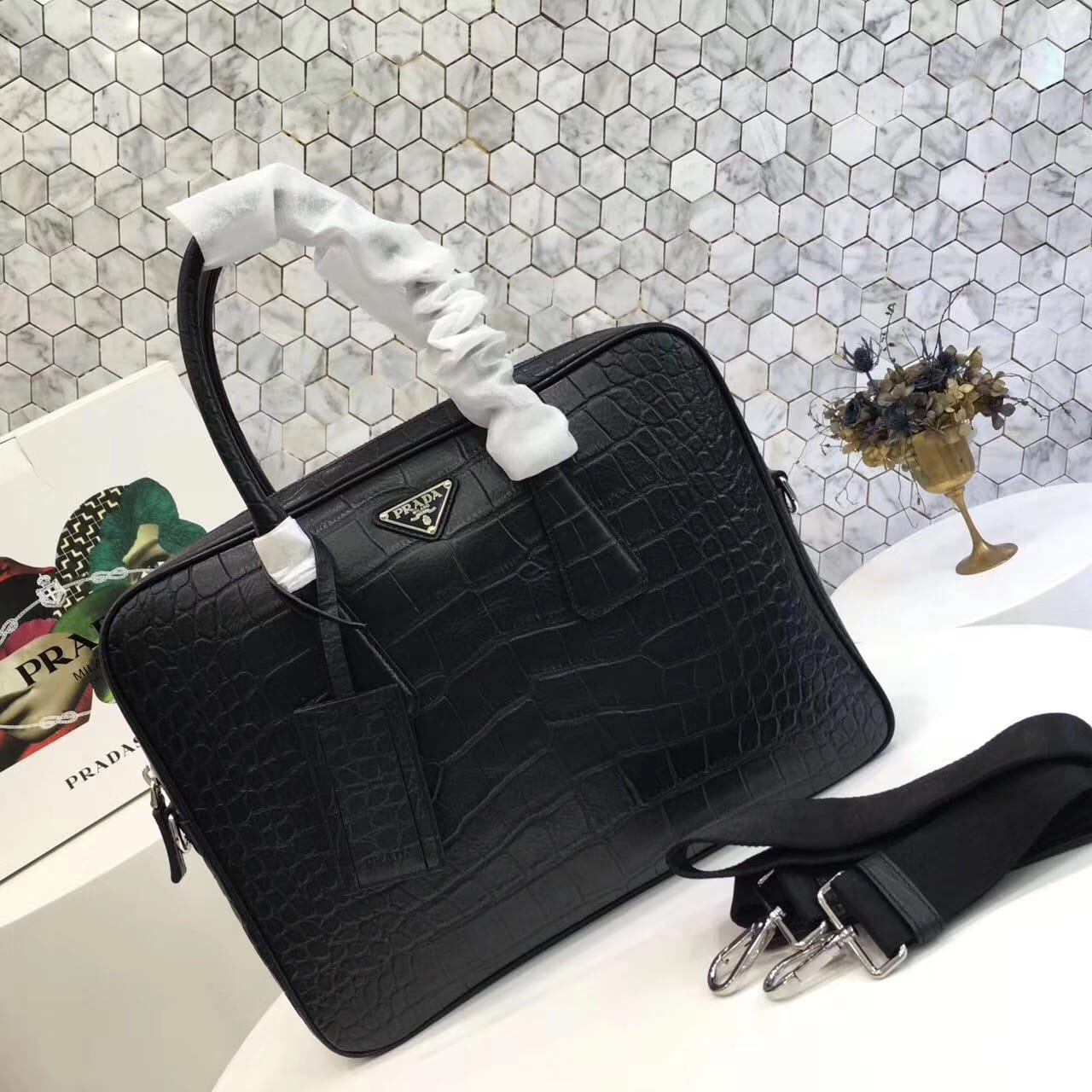 P家男士爆款?VA0891?黑色???175代码+鳄鱼纹牛皮