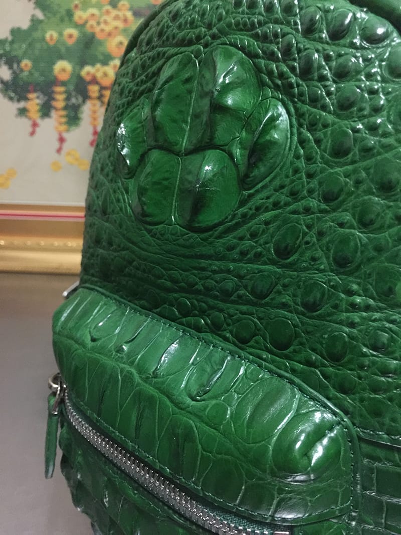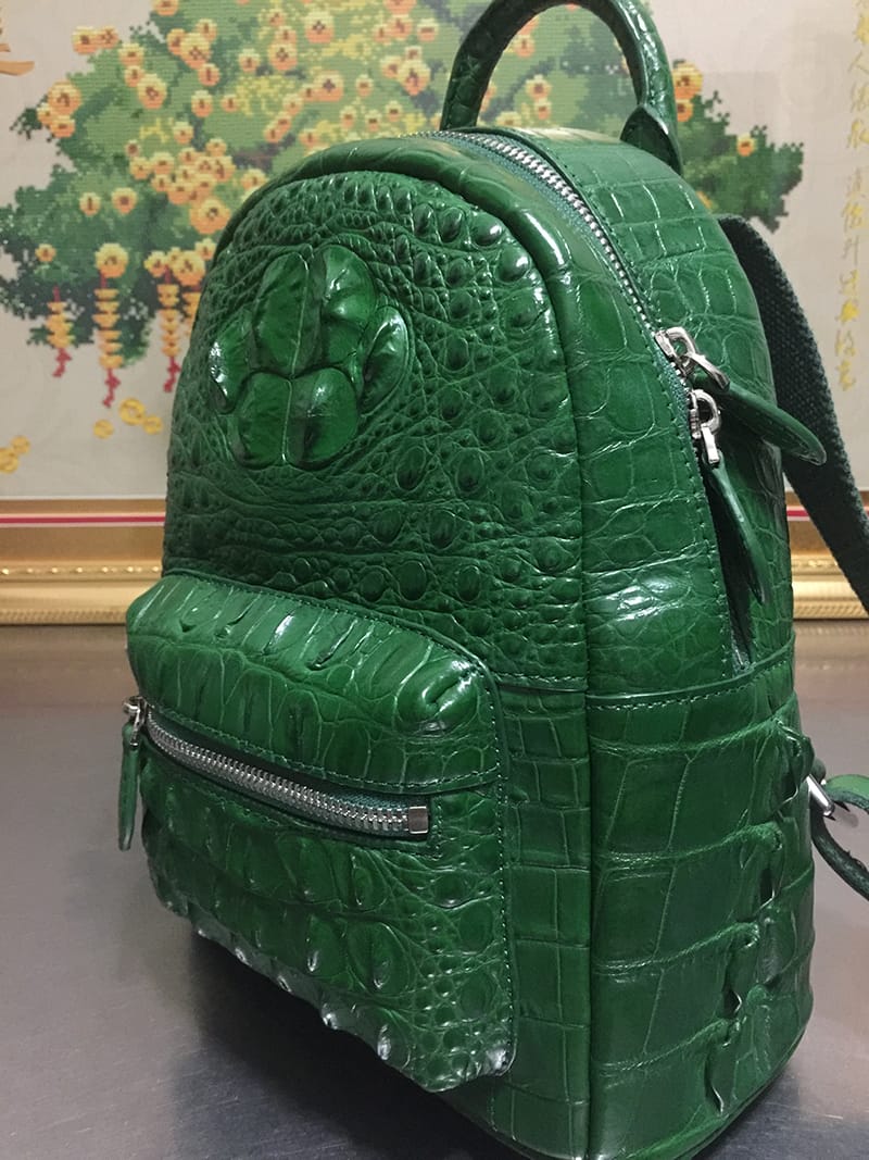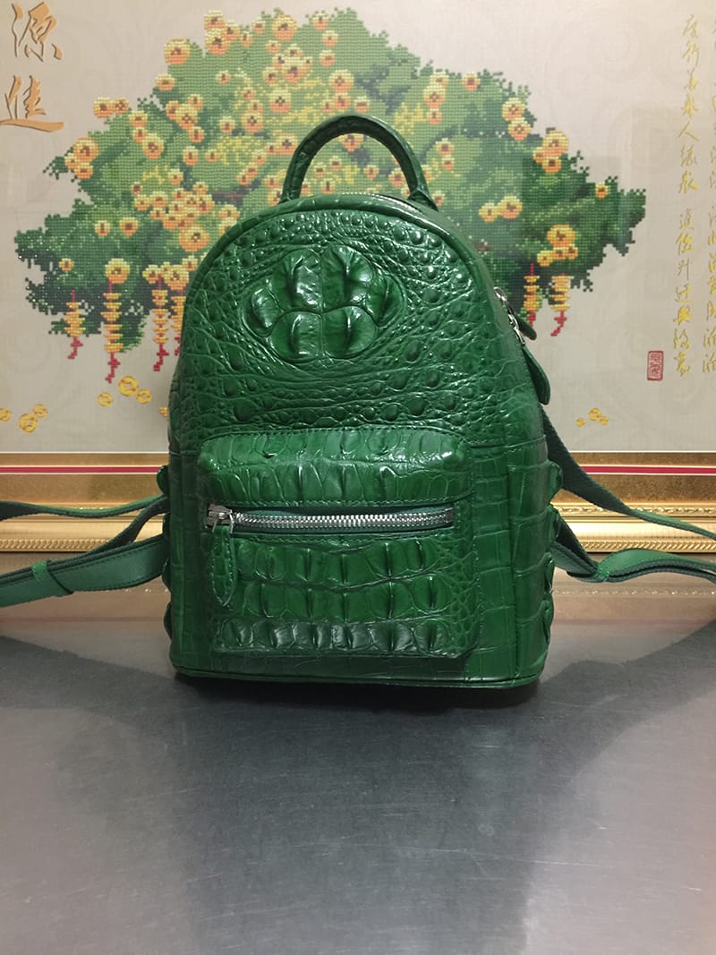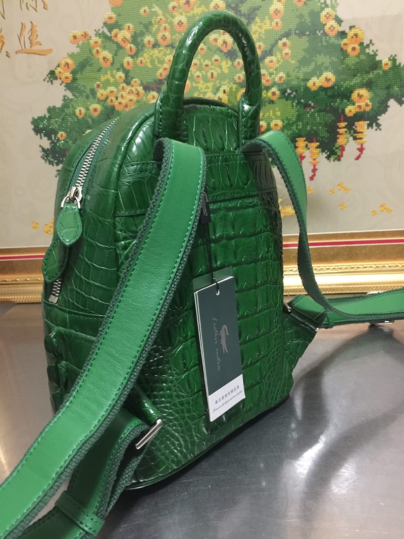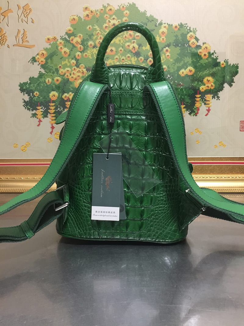 鳄鱼皮女士绿色休闲双肩包