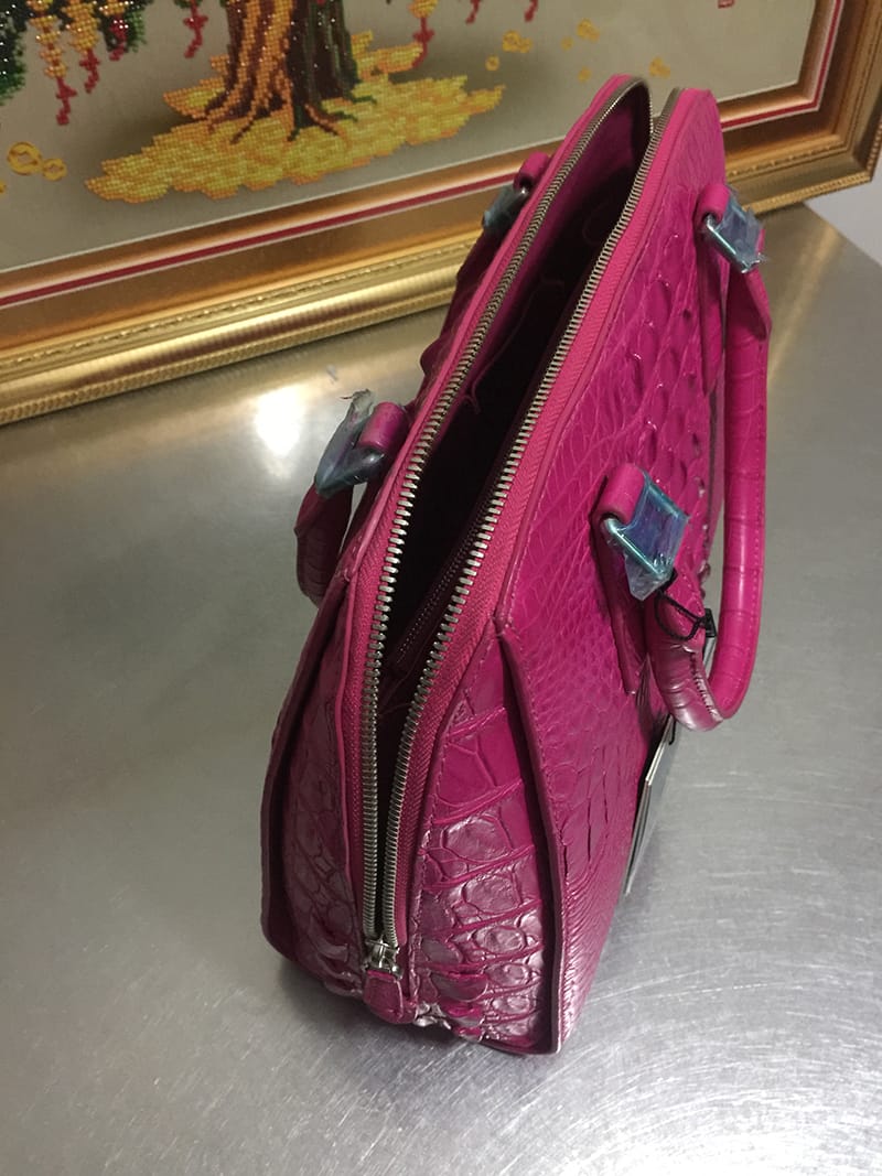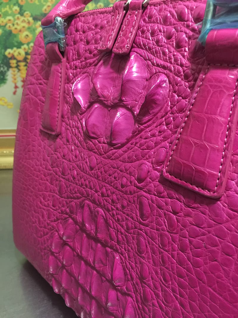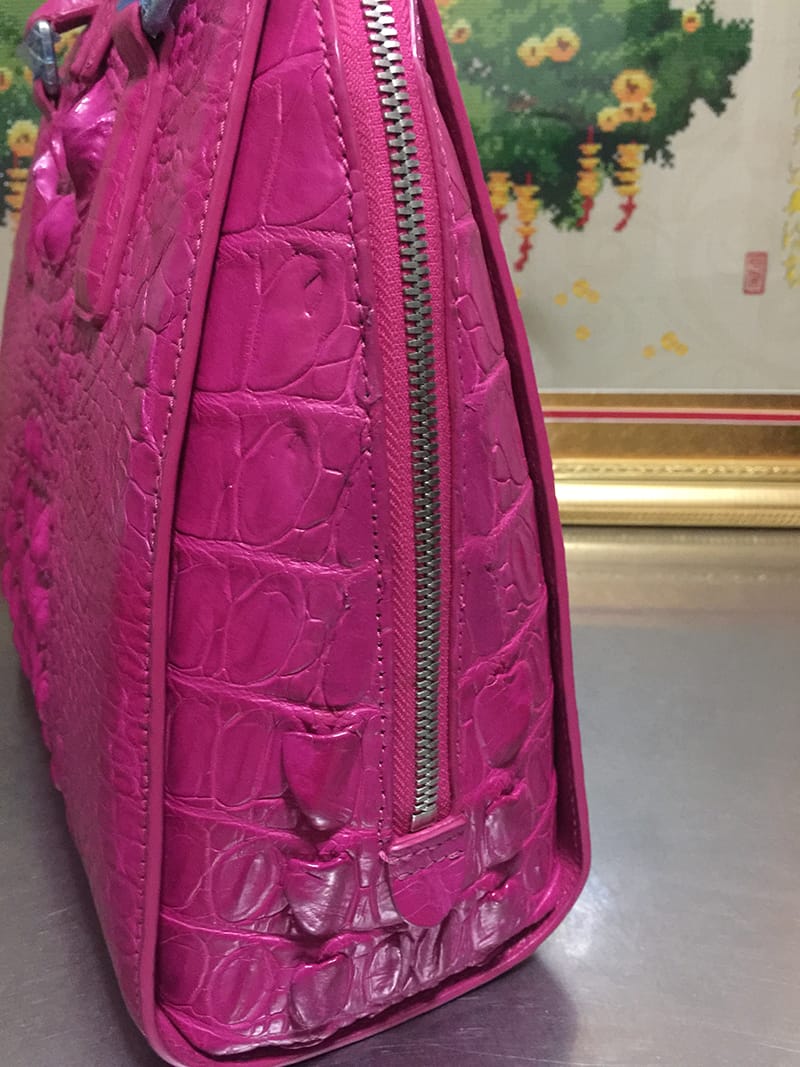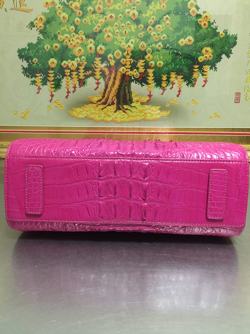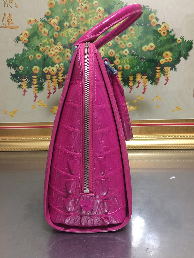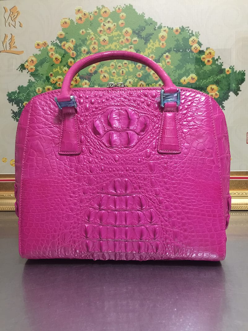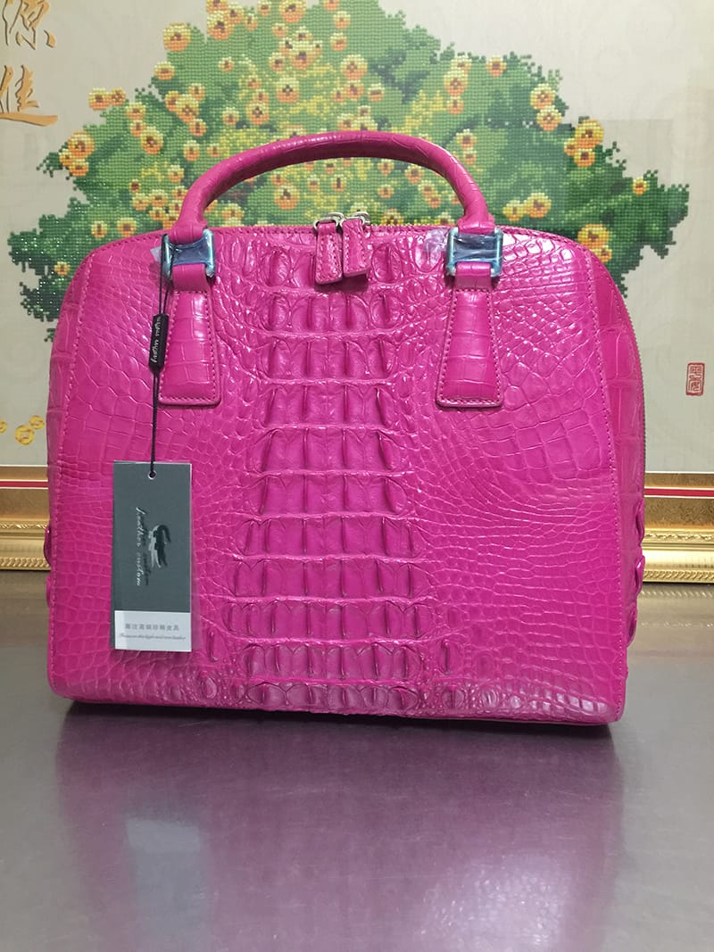鳄鱼皮休闲女士玫红色手提包