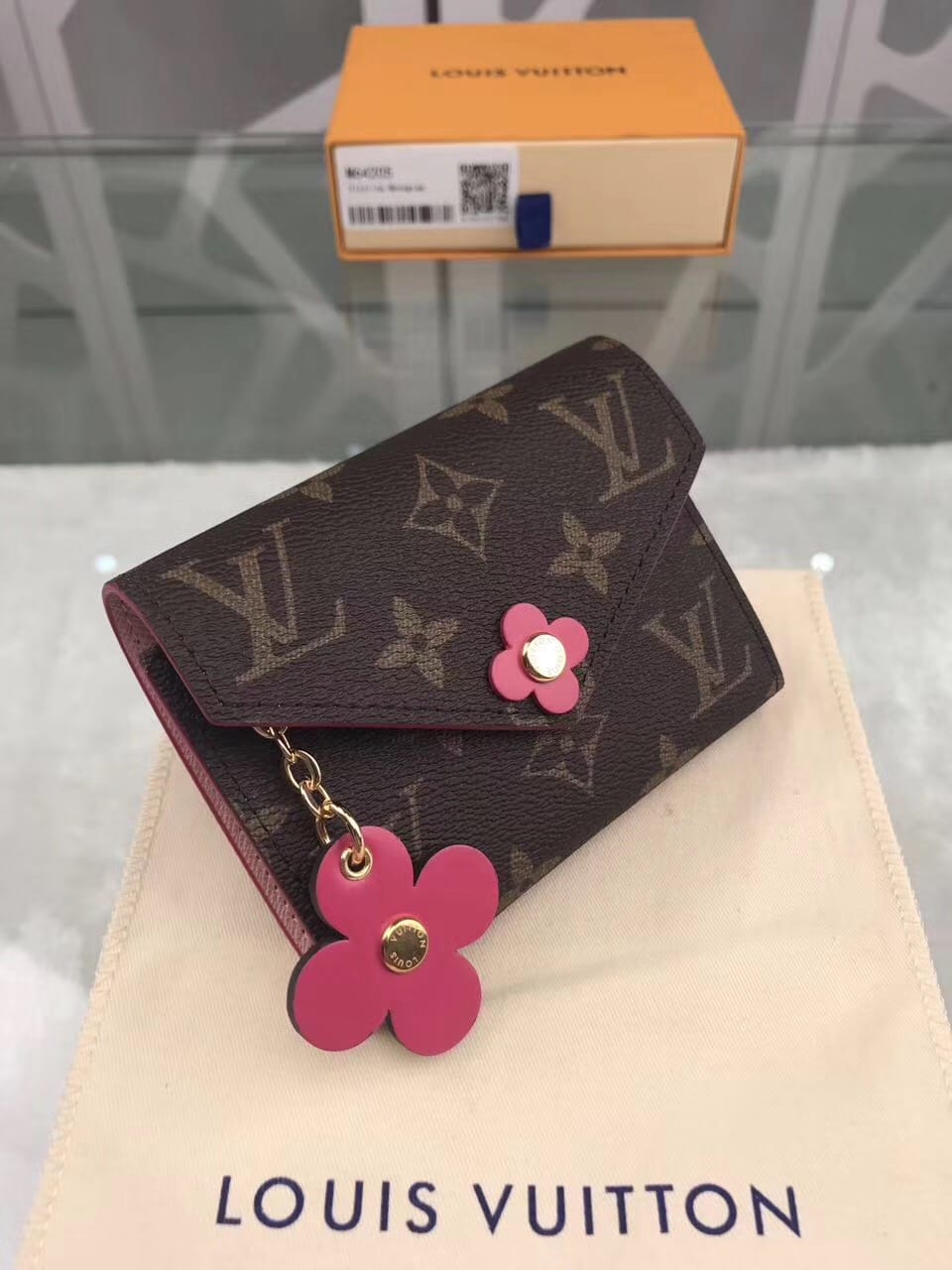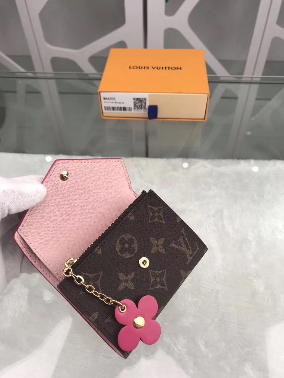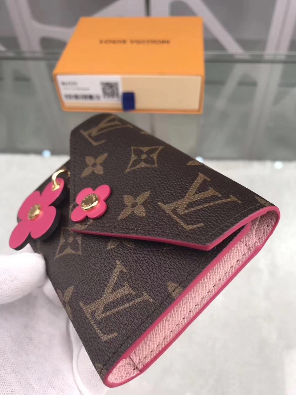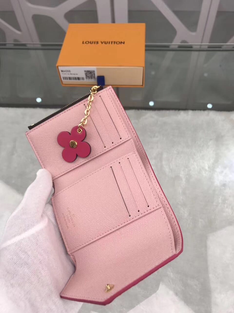 M64205?梅花【特别介绍】?海外特供(专柜货)?路易威登经典钱夹,时尚而实用,粉色皮革饰边与可爱的花卉饰钉与饰件尽显精致柔美。尺寸:12X9cm ~