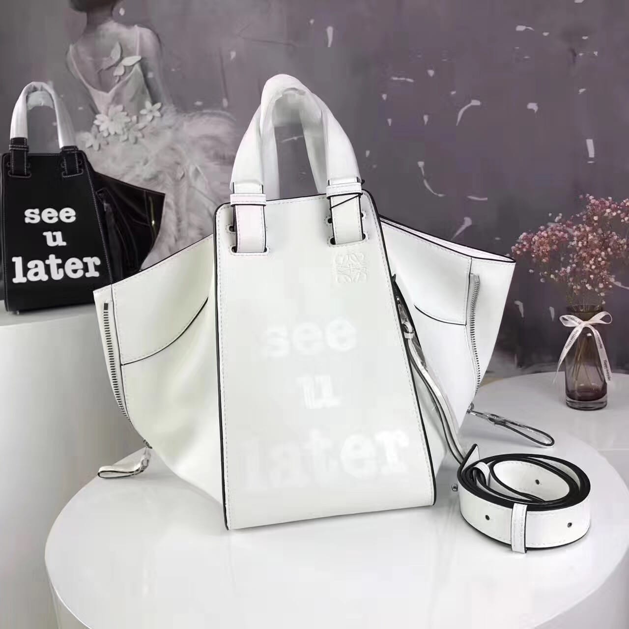 Loewe/罗意威?See u later吊床包, 原单品质, 市场独家出货?款号: 0156?LOEWE带来既功能多元且又造型醒目的多功能设计,就是Hammock 的特色。创新的设计,可以作为肩背包,手提包,甚至可以斜挎,摩登的造型也绝对舒适,在不同的时间点都能散发不同的魅力。原版特别订制进口小牛皮,重金打造,顶级品质!size: 29*27*26cm