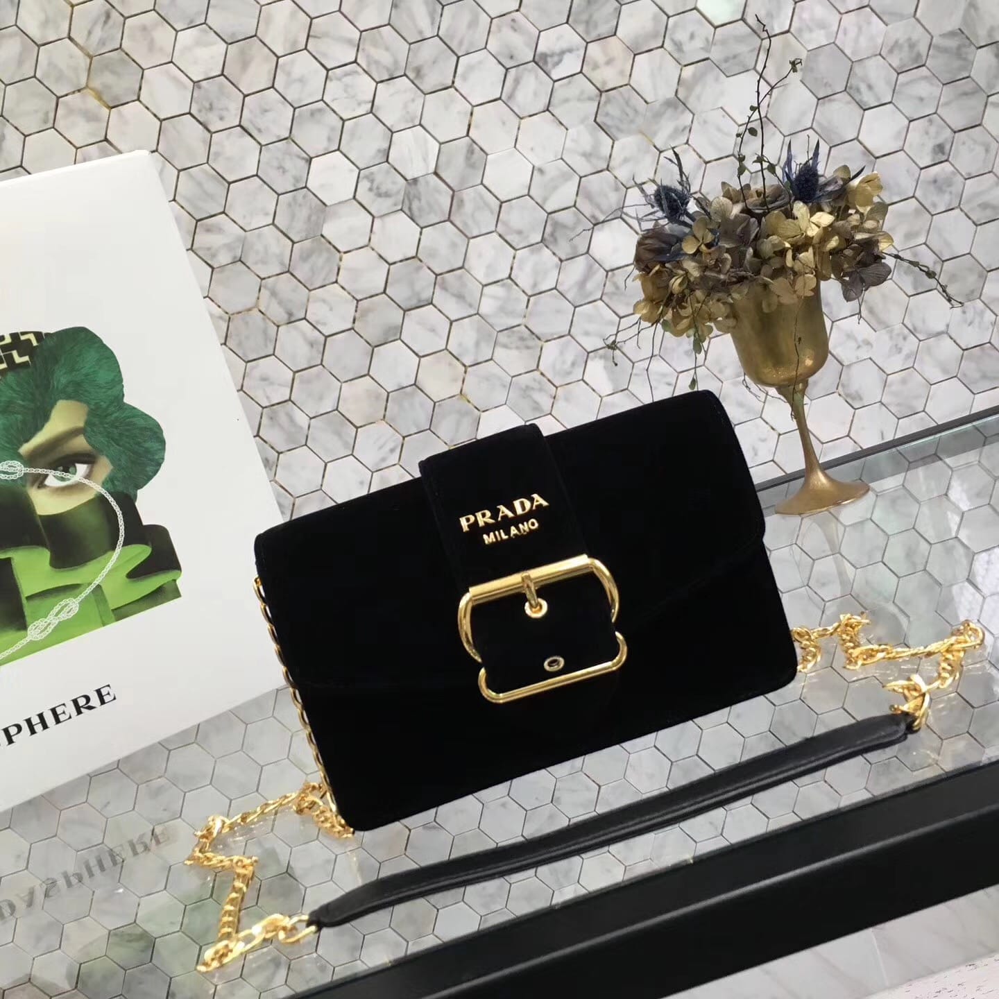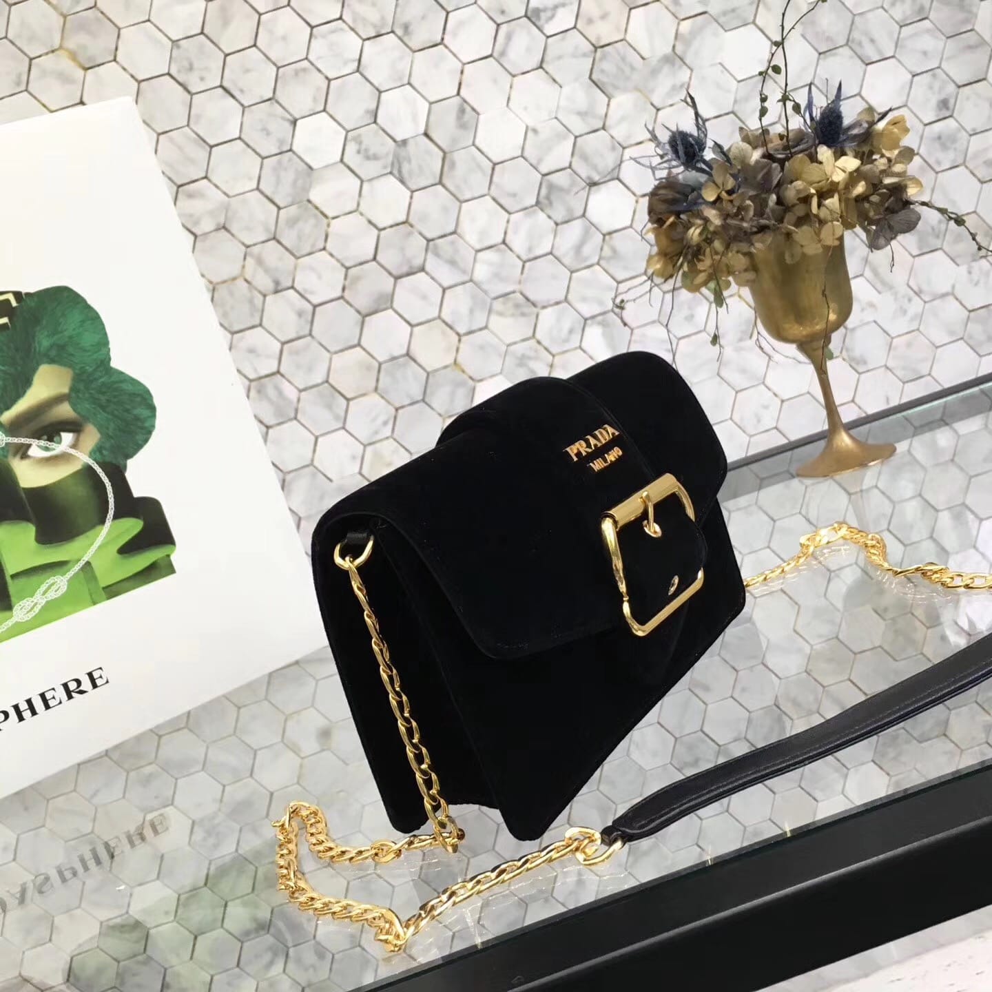 P家1BH052最新款专柜同步、[玫瑰]包身天鹅绒面料?内里