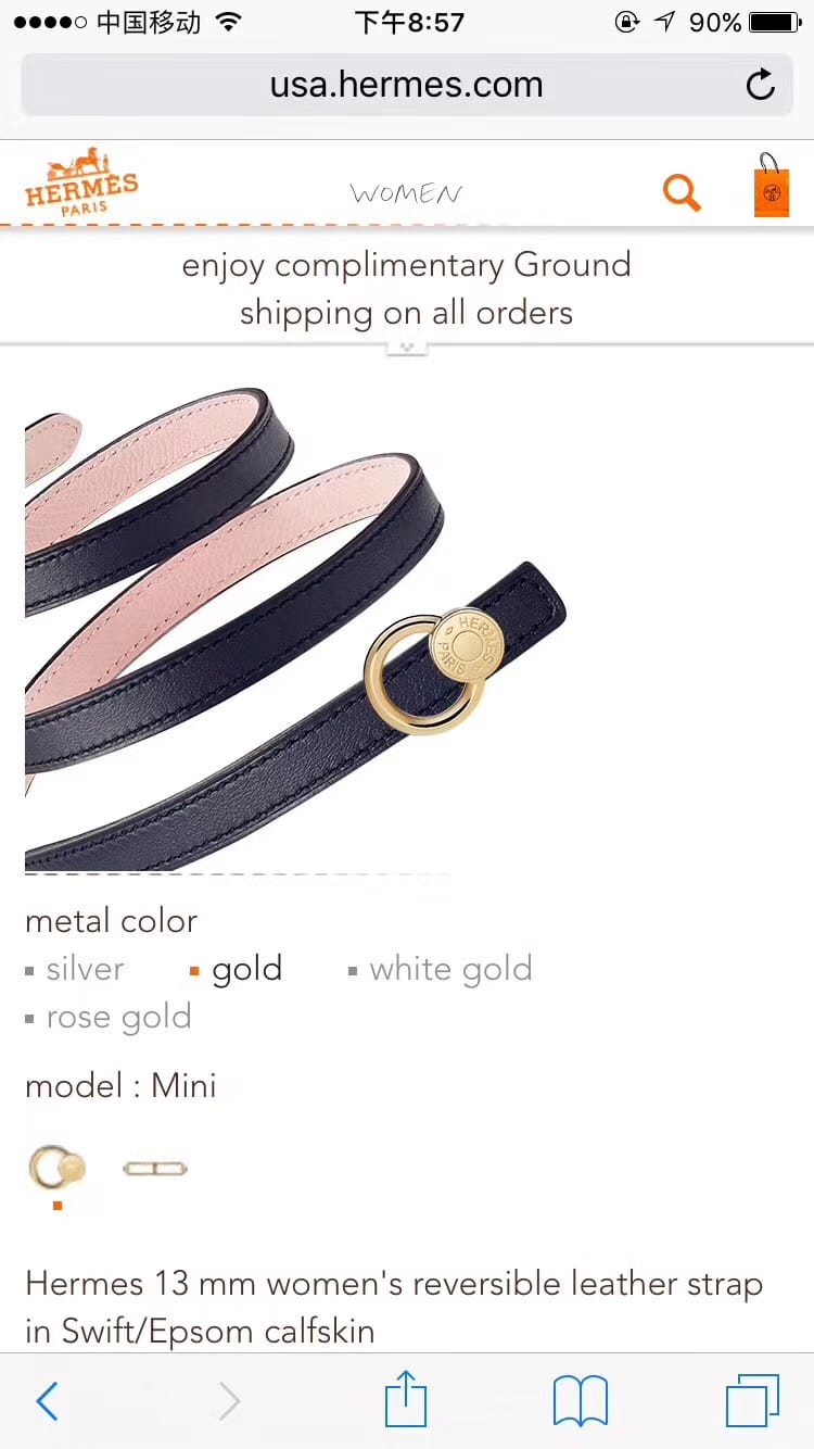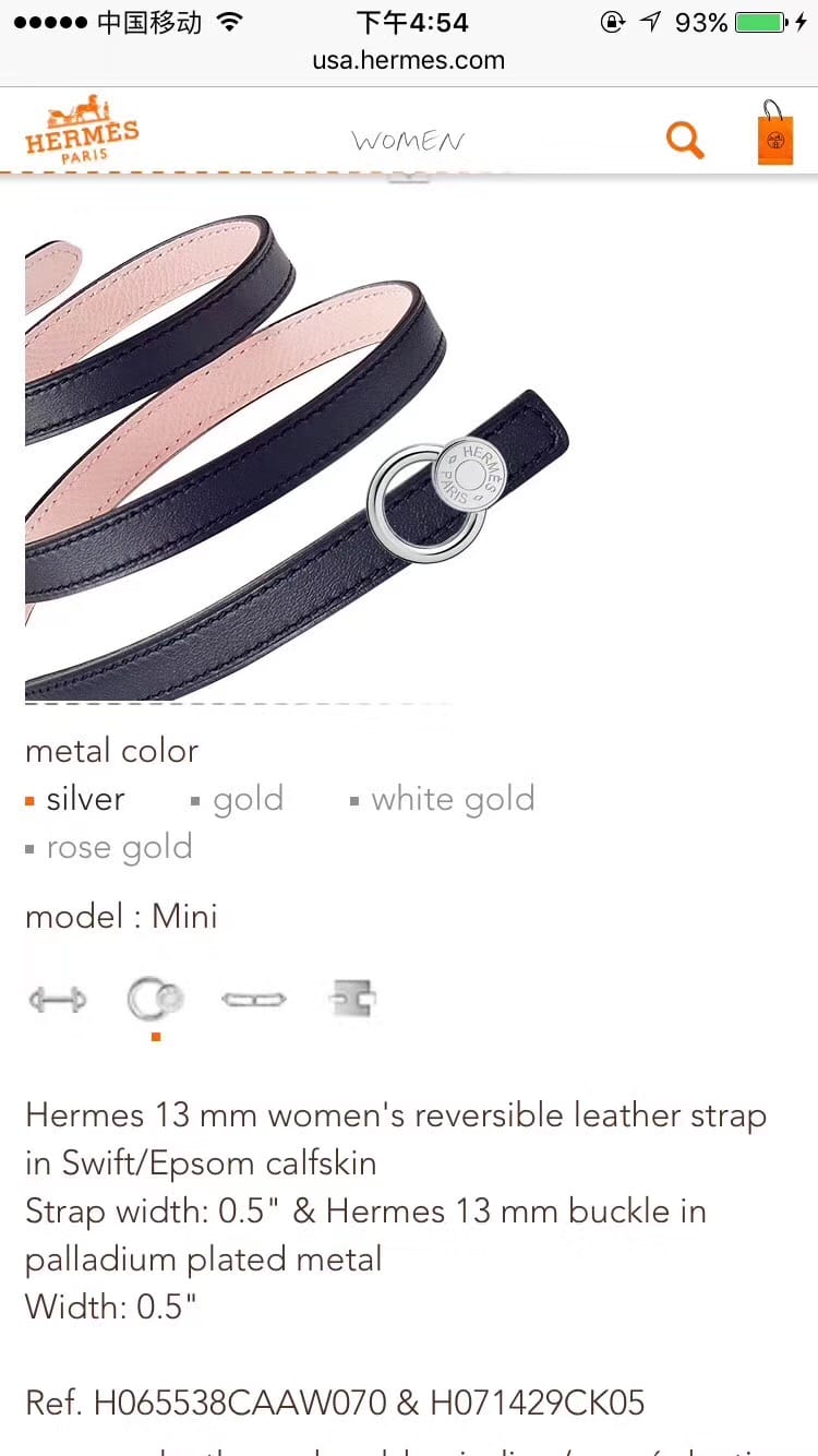 2017爱马仕新款?女士皮带1.3cm(超细),迷你版腰带。