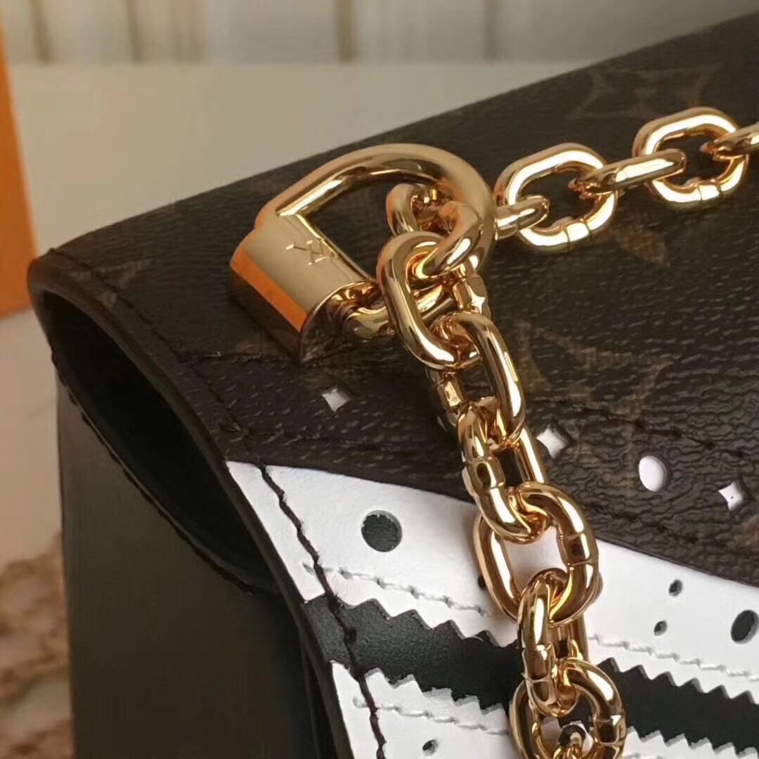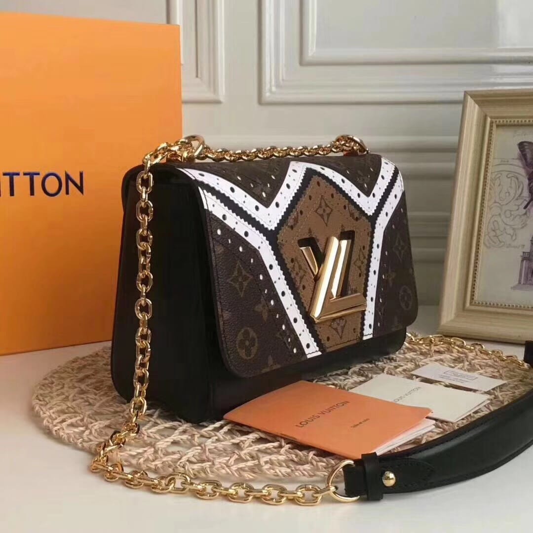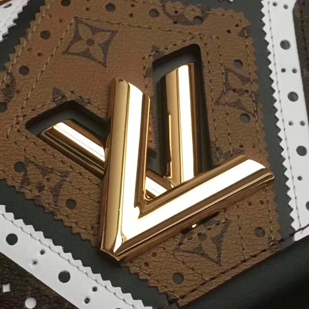 [海外原单]TWIST 中号手袋M44214在此款化用经典拷花纹理的17秋冬版Twist手袋中,设计师Nicolas Ghesquière继续探索着巴黎式优雅的精髓。装饰性镂孔设计、皮革与Monogram帆布面料,尽显LV高端时尚工艺风格。23.0 x 18.0 x 8.0 cm (长 x 高 x 宽)