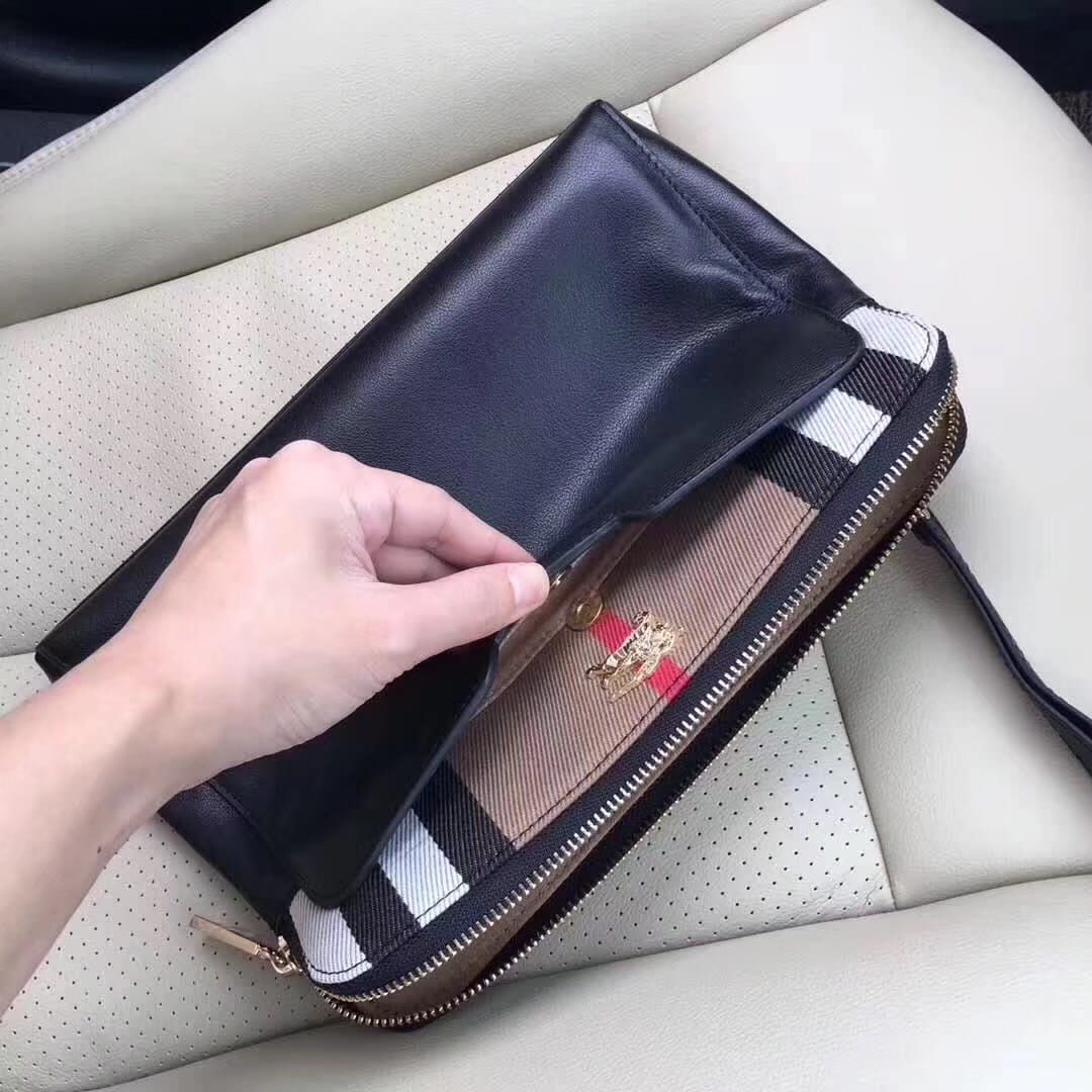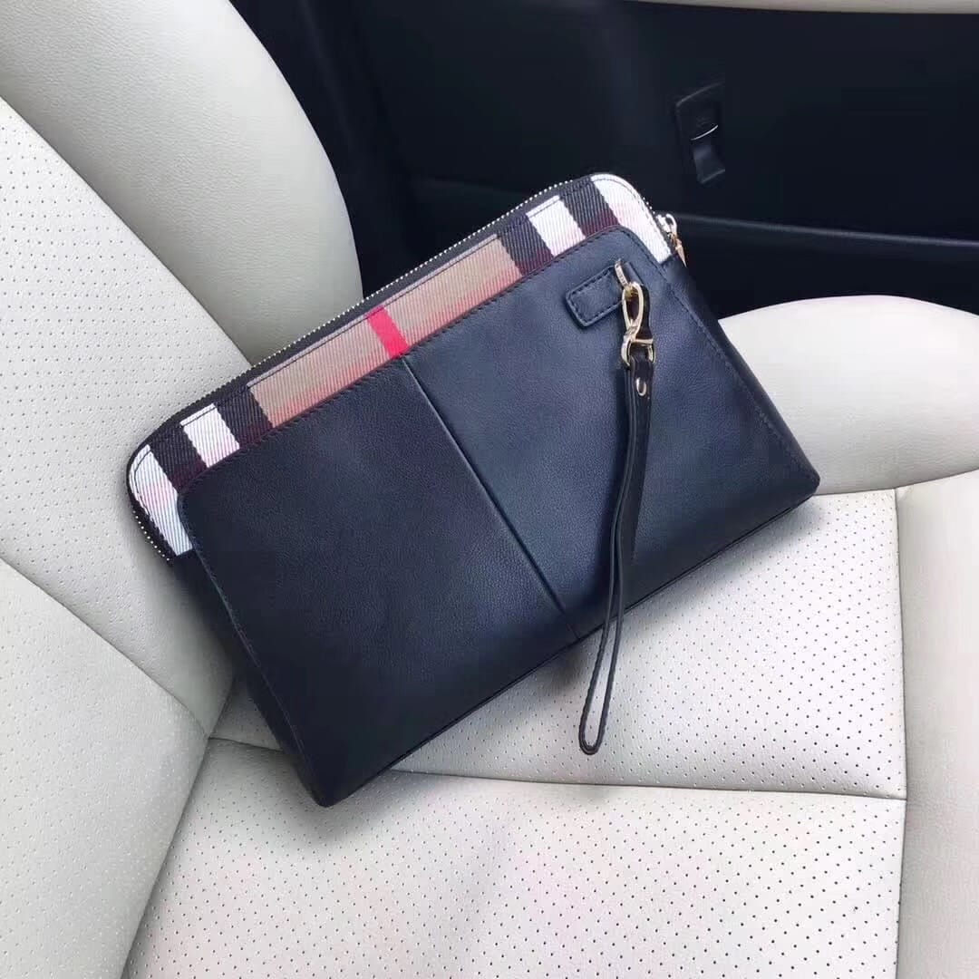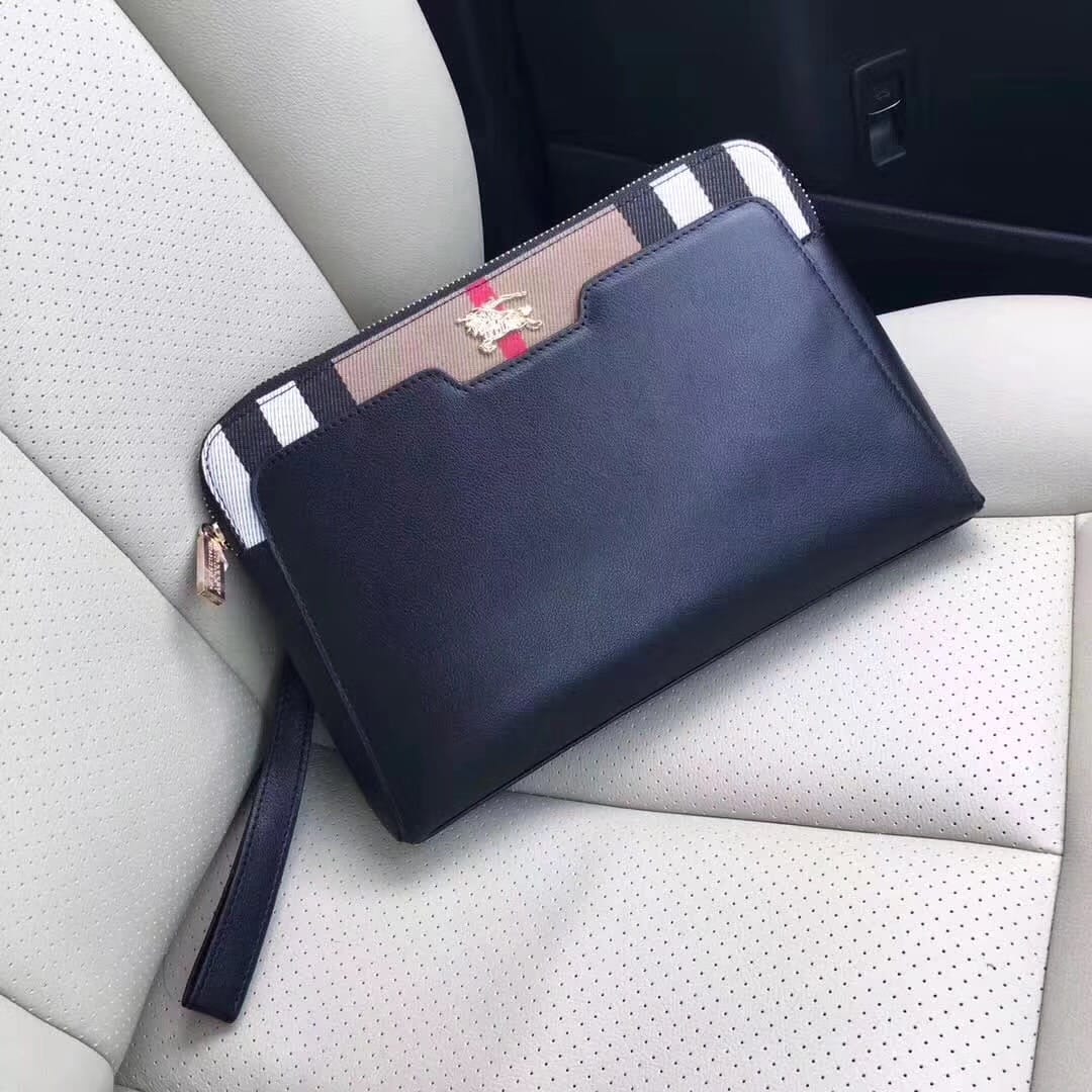 顶级原单醉新款巴宝莉手拿包到货。进口牛皮。配专里布。做工看细