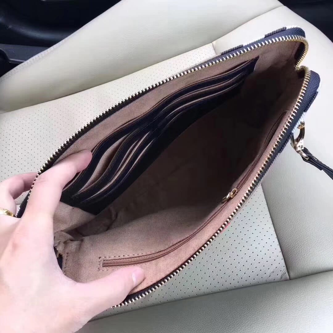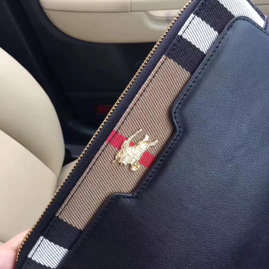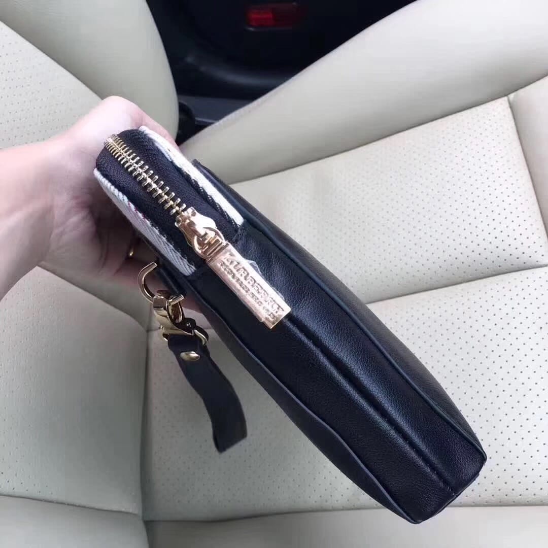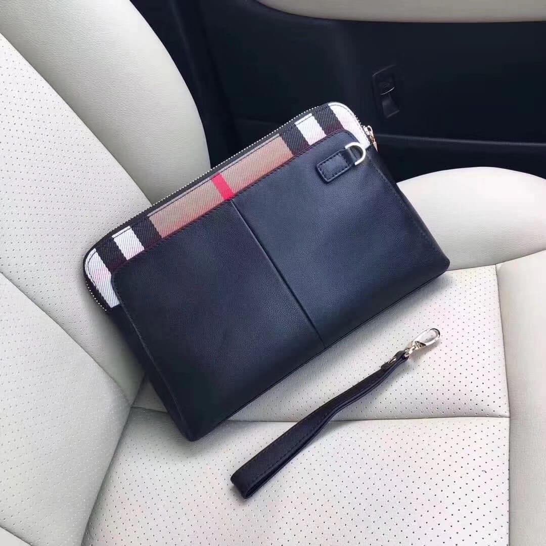 顶级原单醉新款巴宝莉手拿包到货。进口牛皮。配专里布。做工看细