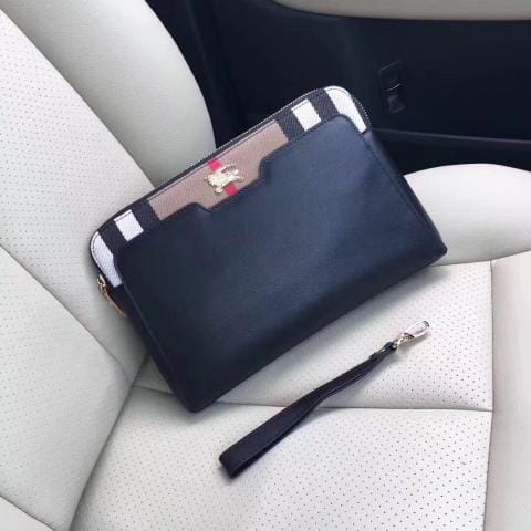 顶级原单醉新款巴宝莉手拿包到货。进口牛皮。配专里布。做工看细