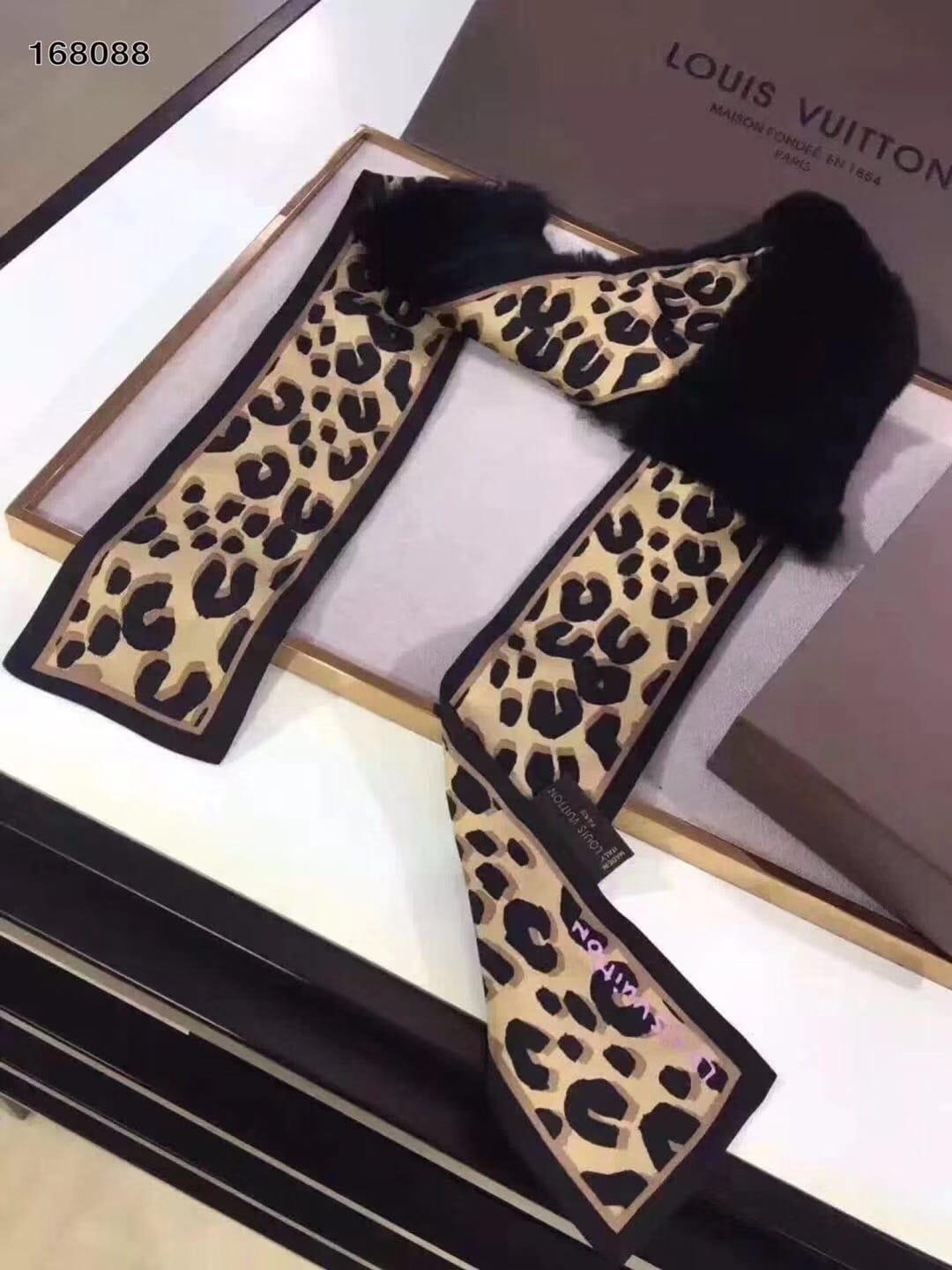 SVIP推荐~精致小尤物LV高端私流真丝 雪兔毛完美品相.多功能毛领发带~??这款真丝上饰有标志性豹纹印花图案,由美国艺术家Stephen Sprouse专为路易威登设计,十分别致。毛毛部分非常重工,是进口Lepus timidus雪兔毛(此兔毛分布在欧亚大陆北部,毛长而绒厚).亲贴皮肤非常舒服,真心推荐~秋冬搭配怎么用都显品味尺寸:120*8.5厘米~编号168088