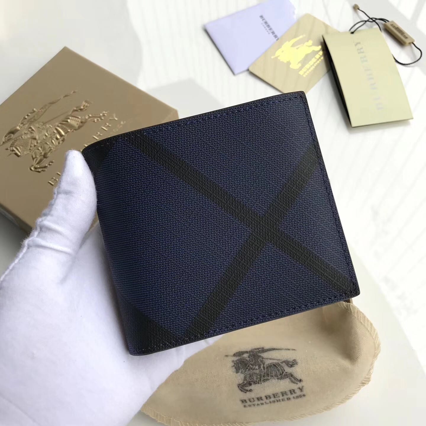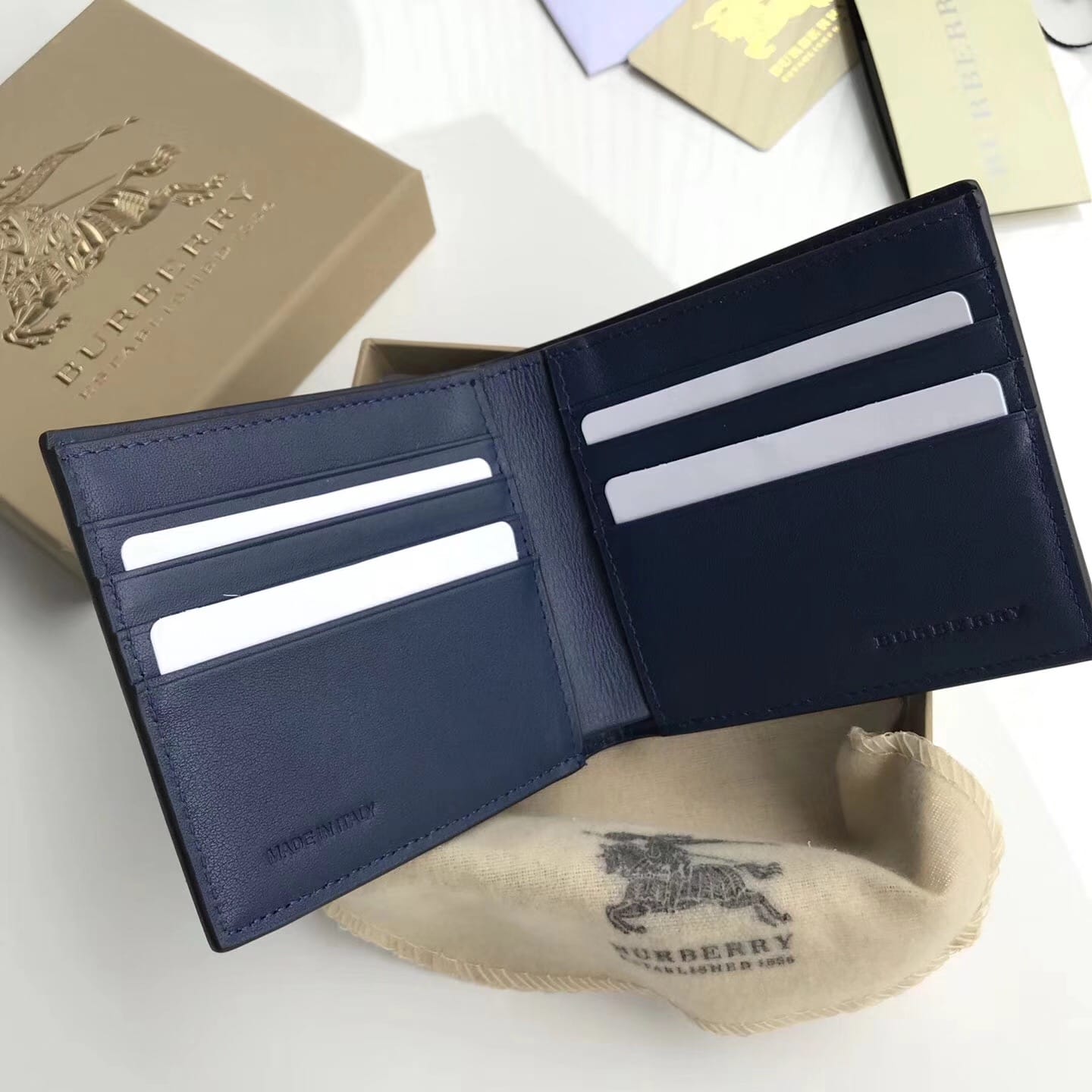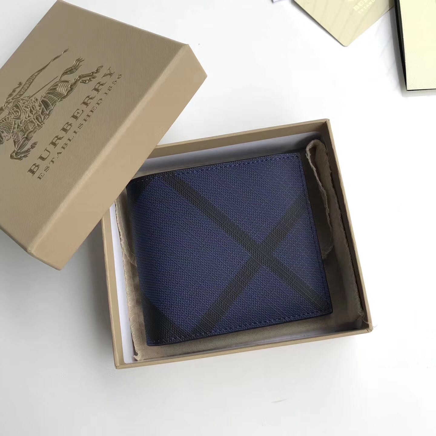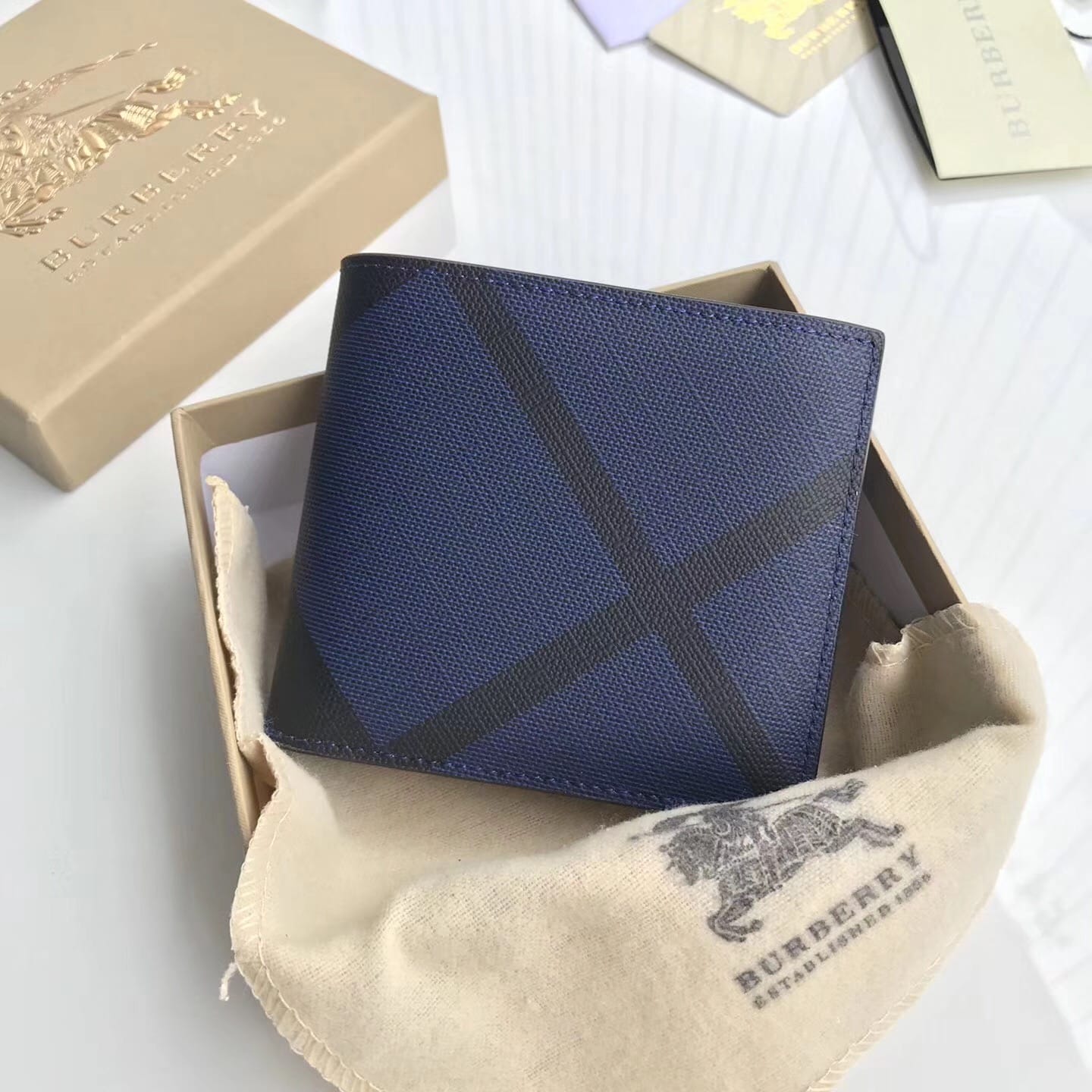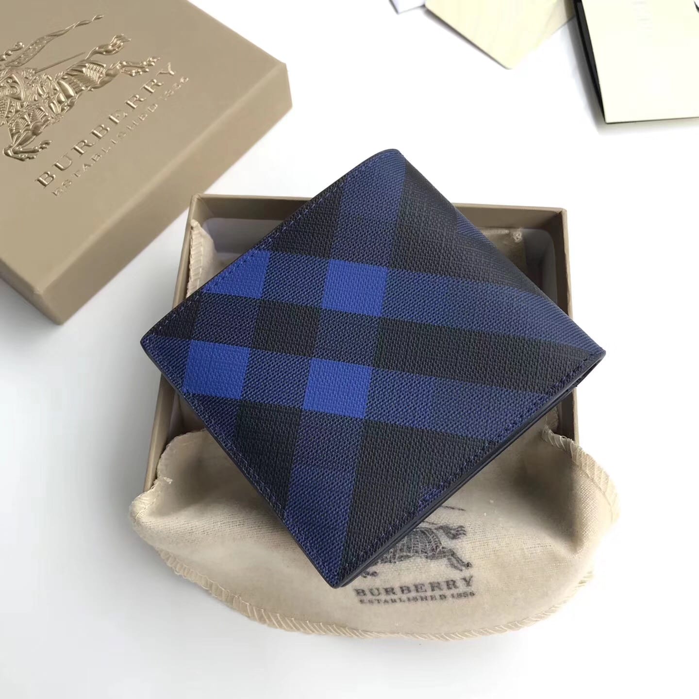【Burberry?柏宝利】原单出品??~~男士短夹??烟熏格子新颜色搭配进口粒面小牛皮,?专柜品质、做工精细?实物拍摄?,??40520871中兰/蓝皮,尺寸11cm*10cm*