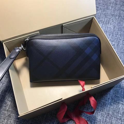 burberry掌纹牛皮钱夹式收纳袋,可拆式提柄与后侧绊带细