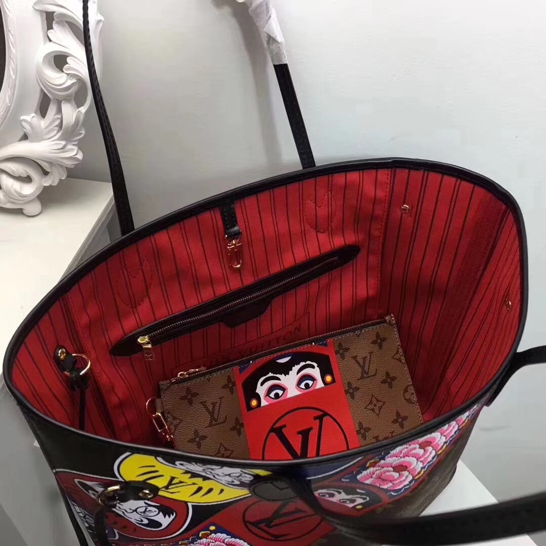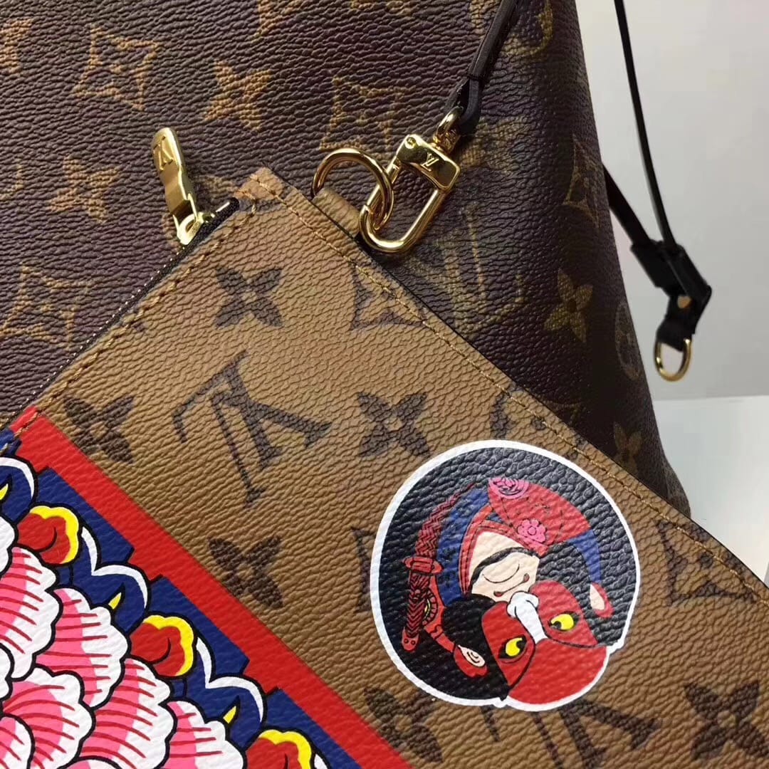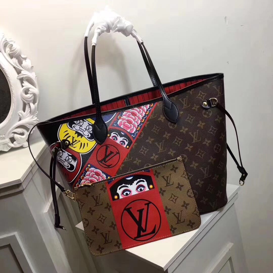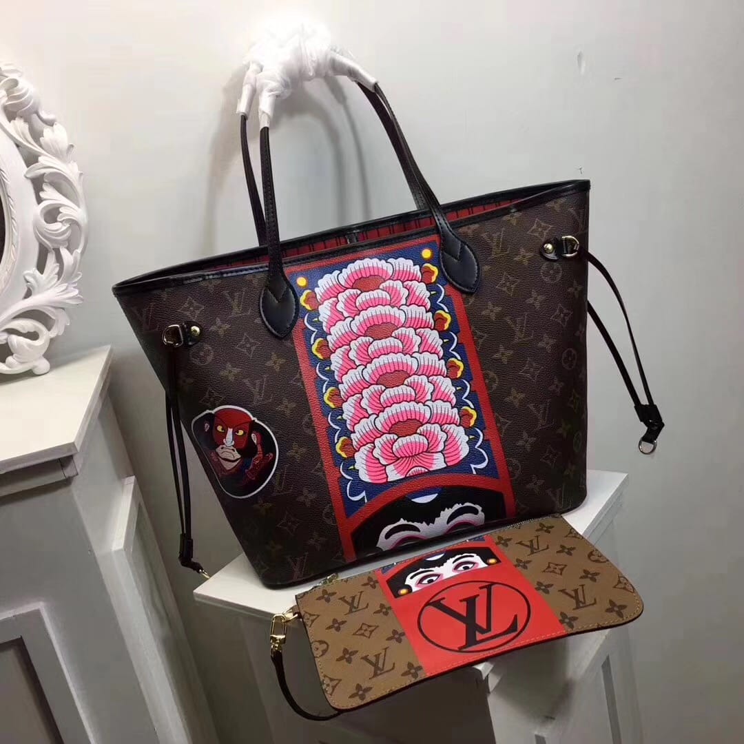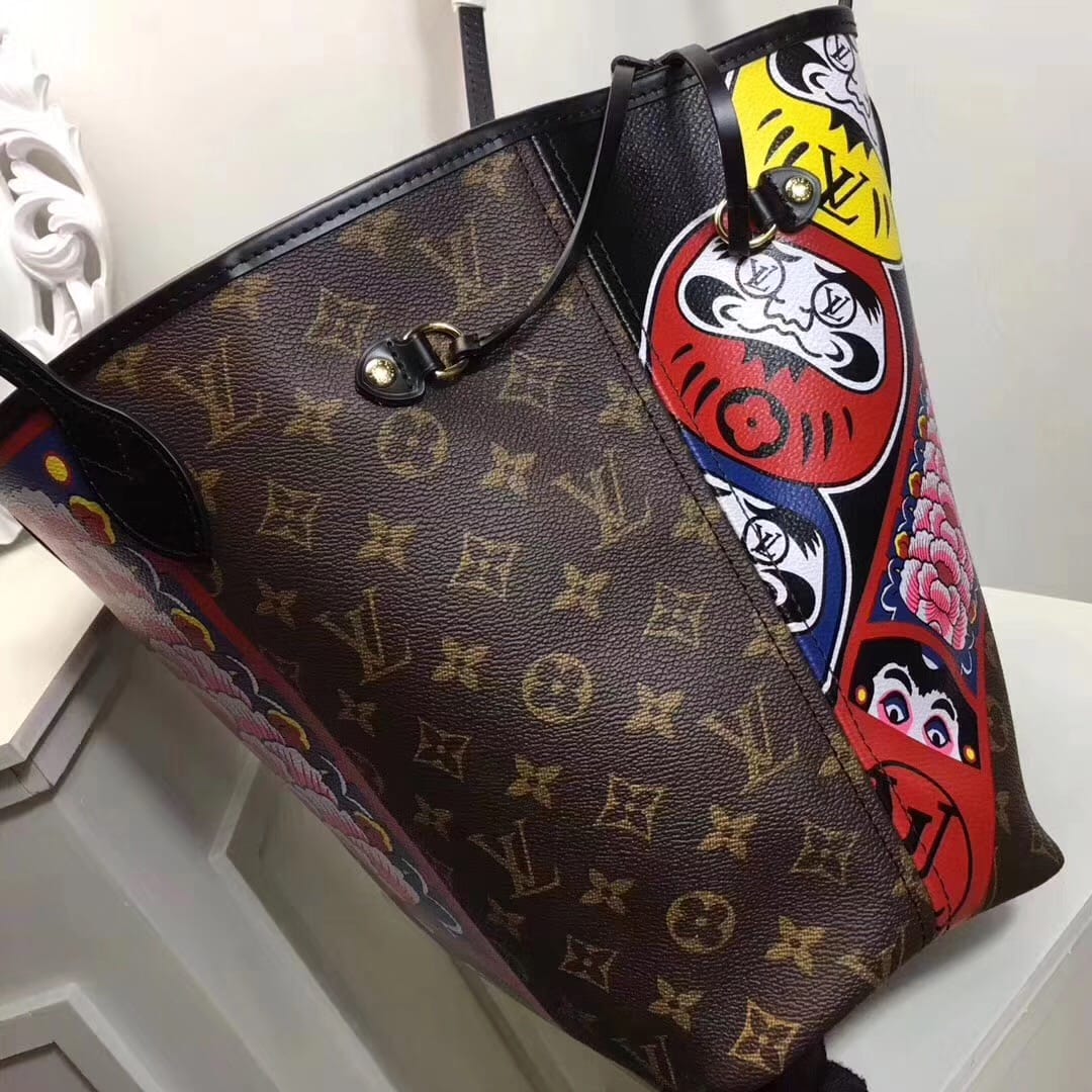 顶级原单?官网最新??M43499 Nicolas Ghesquière为2018早春系列创作的大尺寸歌舞伎贴饰使此款Neverfull手袋散发极为出众的时尚气息。这一日式设计元素成为Monogram帆布上的精美印花,造就此款令人心动、极具收藏价值的珍品,尺寸32x29x16cm