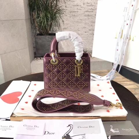 ?Dior?Ladydior 铆钉戴妃包 进口牛皮 复古五金