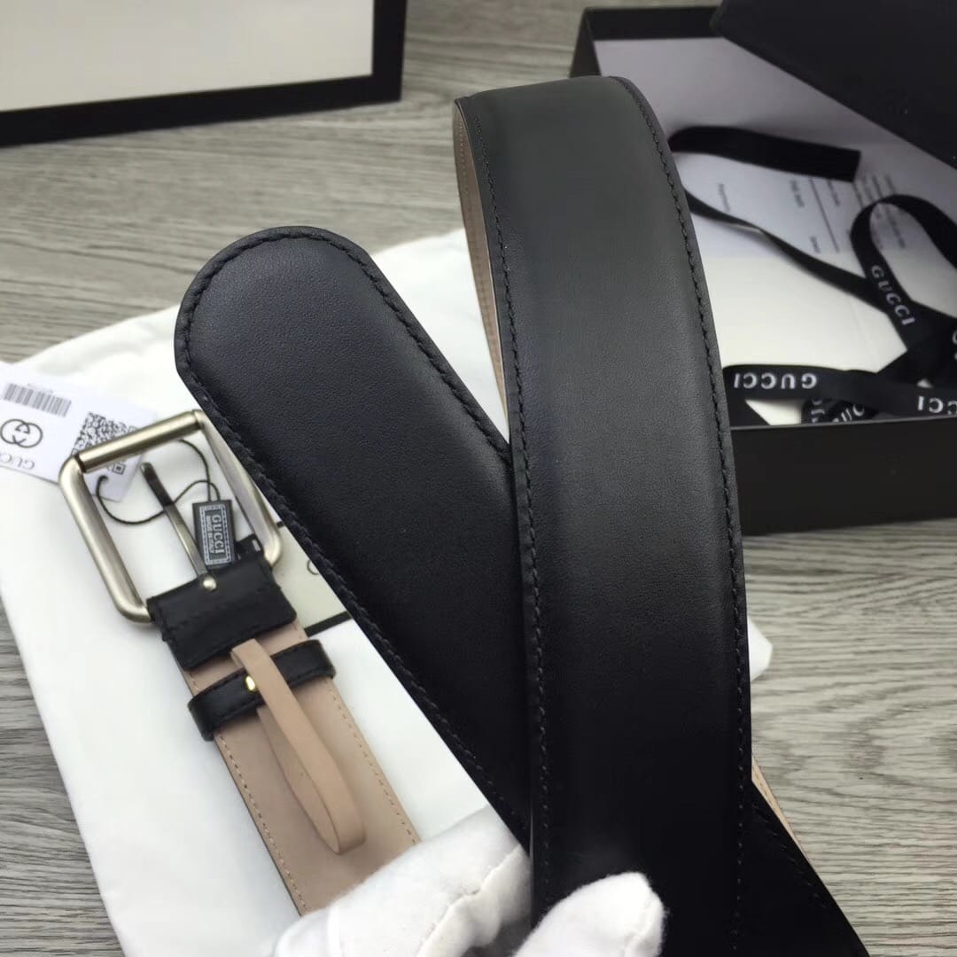 G U C C I 寬度30毫米 雙面進口小牛皮 古銅針扣