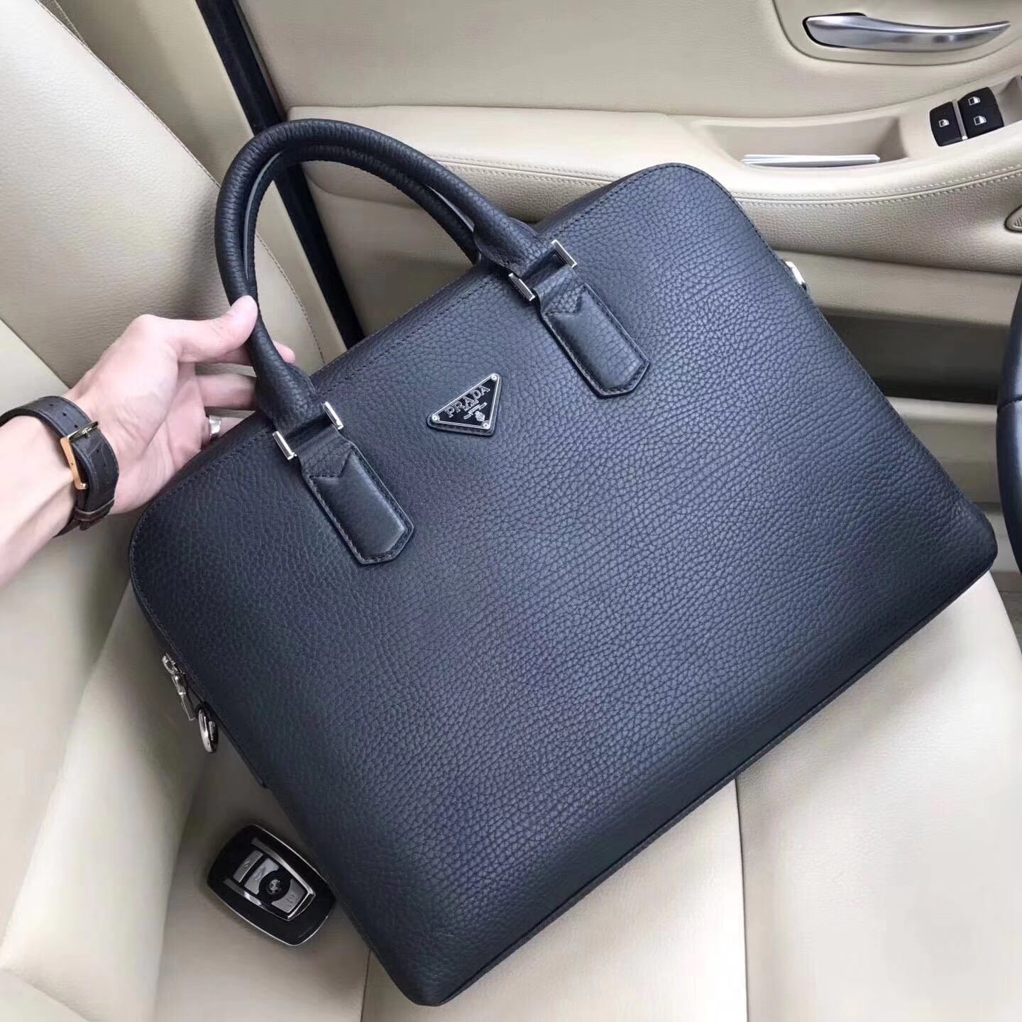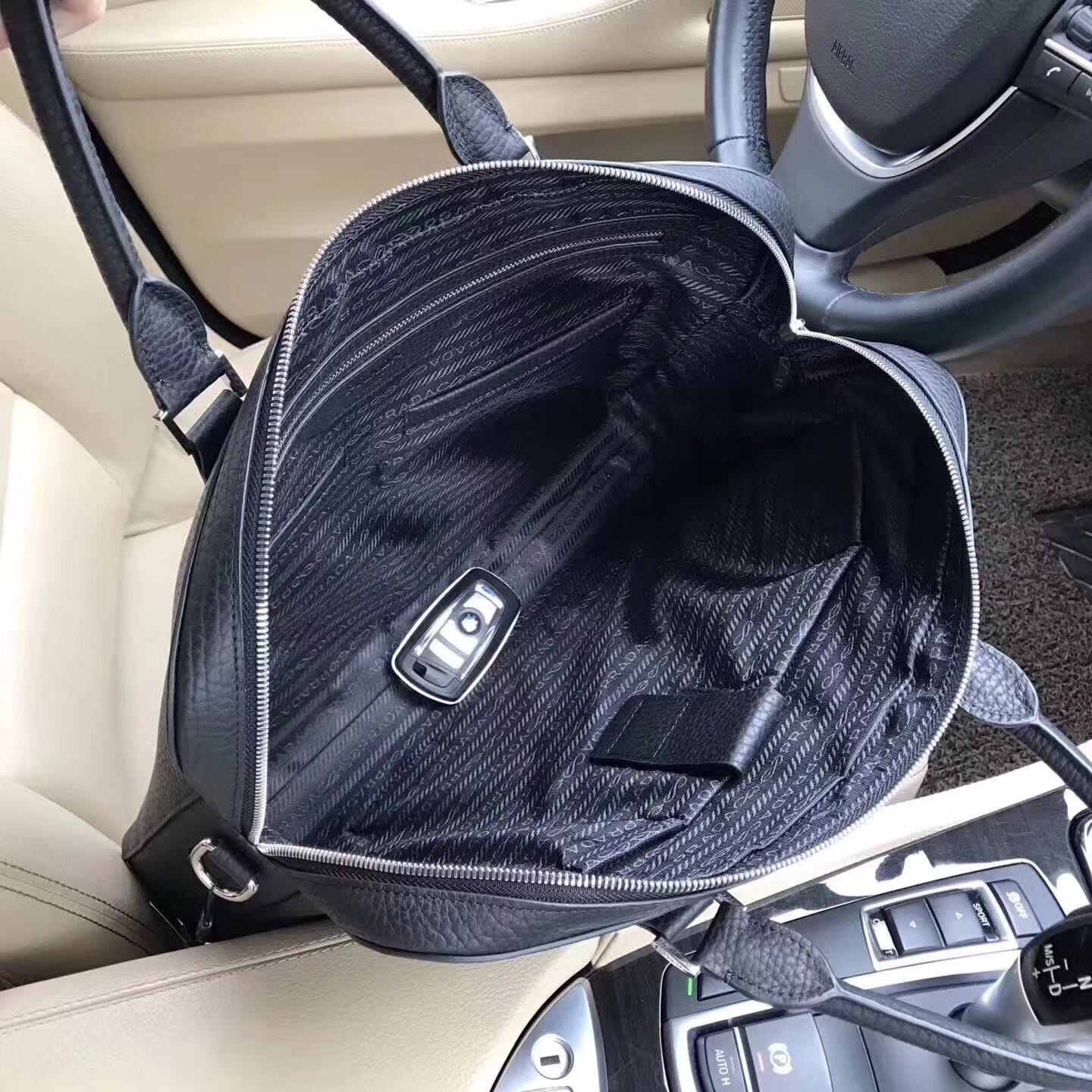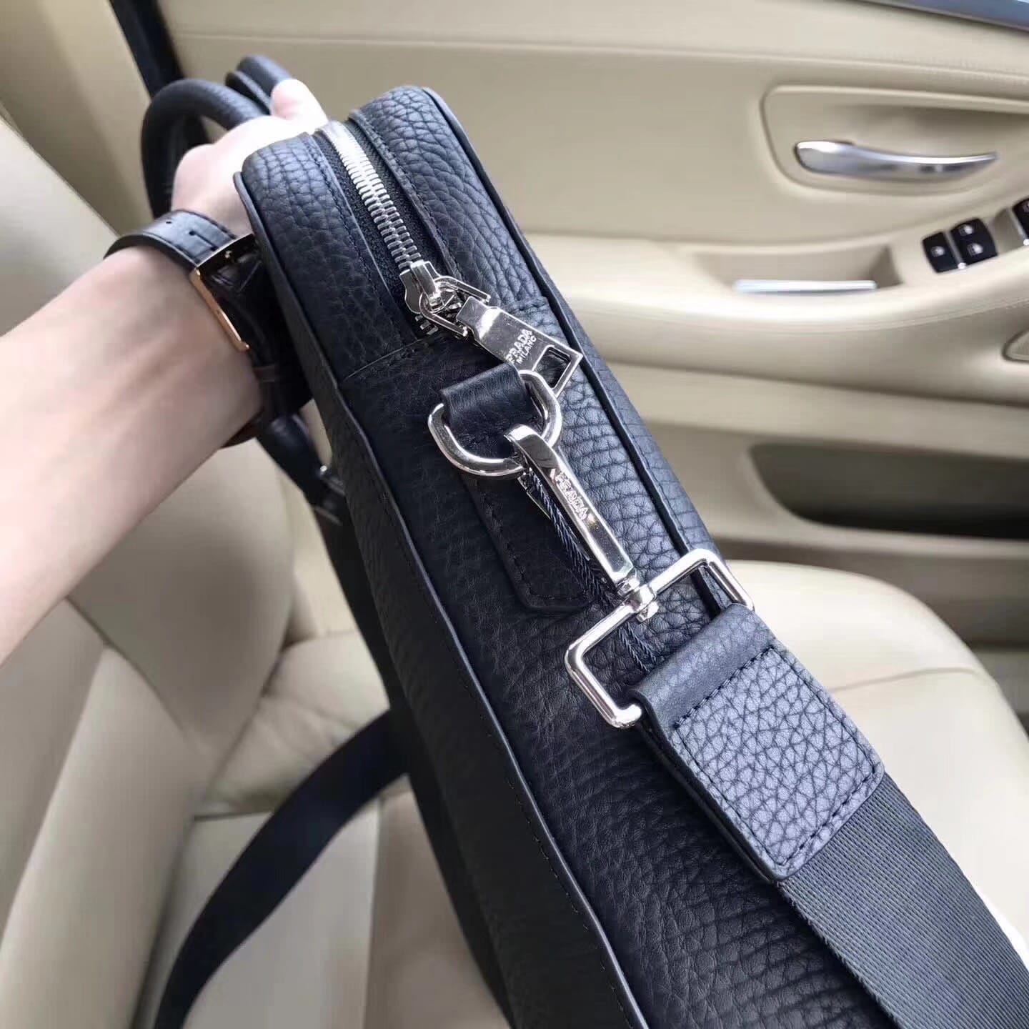 新款来袭PRADA 普拉达??秋冬休闲包。进口头层牛皮??,容量大??比较轻便,简单休闲,销量冠军。出门旅游必须带上他,帅气十足,而且此款经常断货,拿回去必补货,?尺寸:29x39 cm,黑色