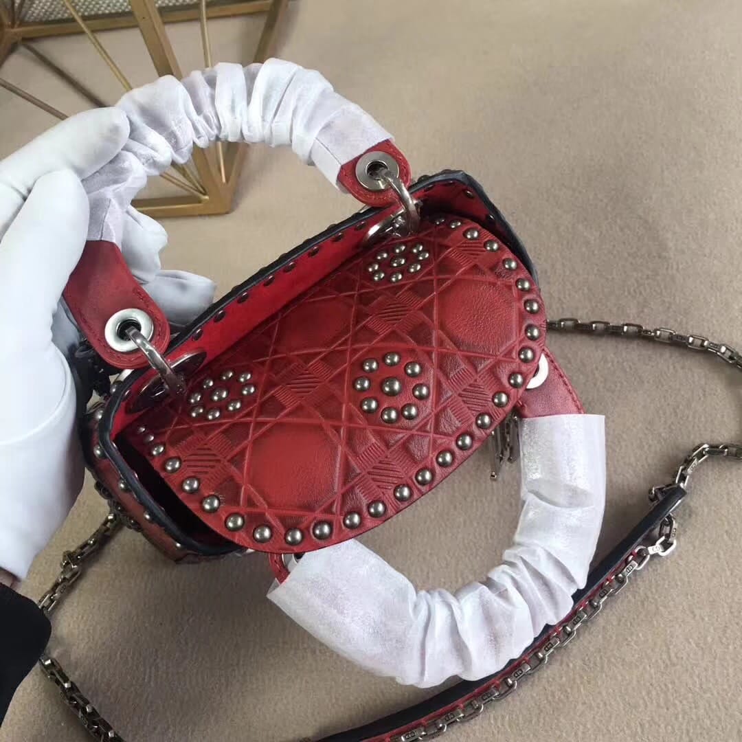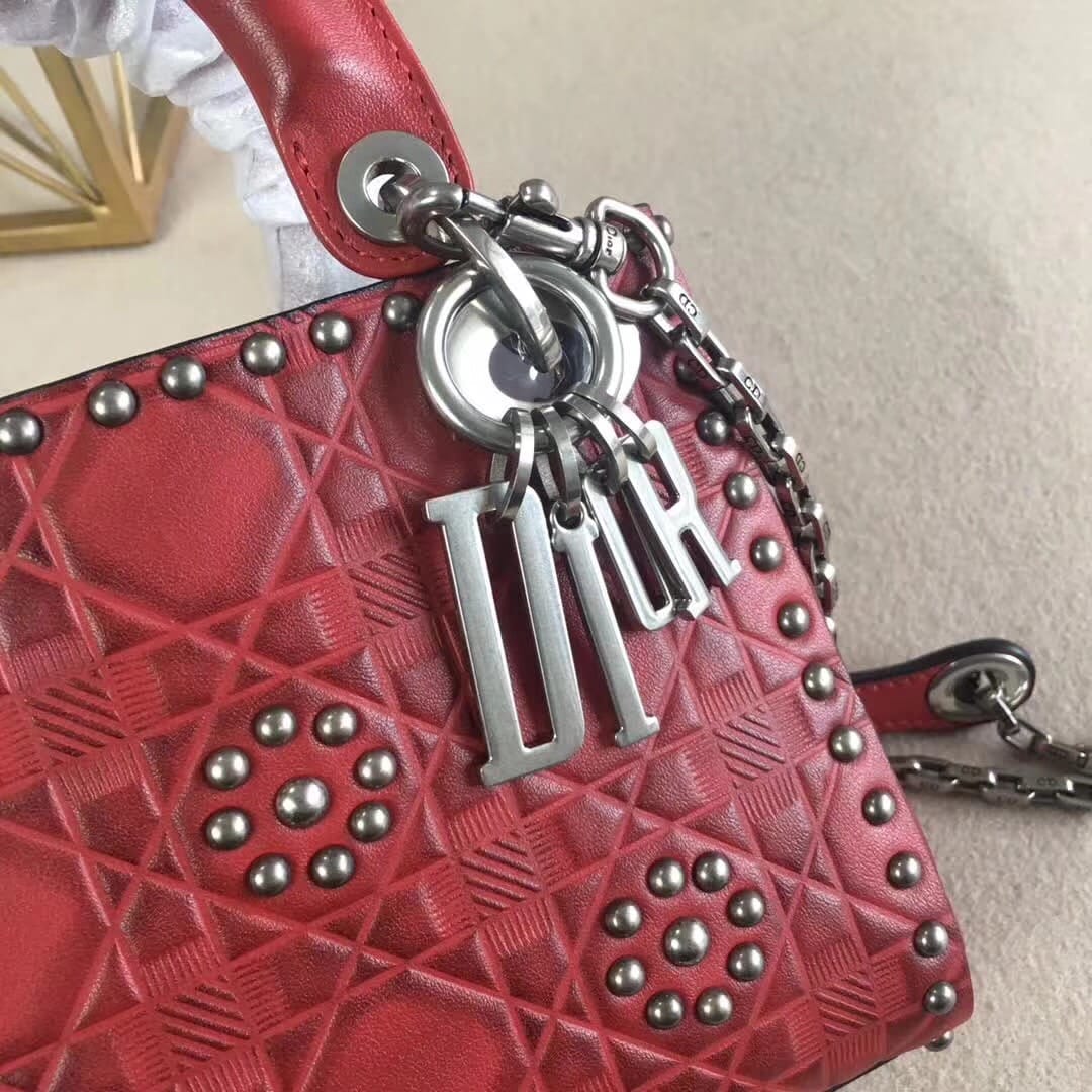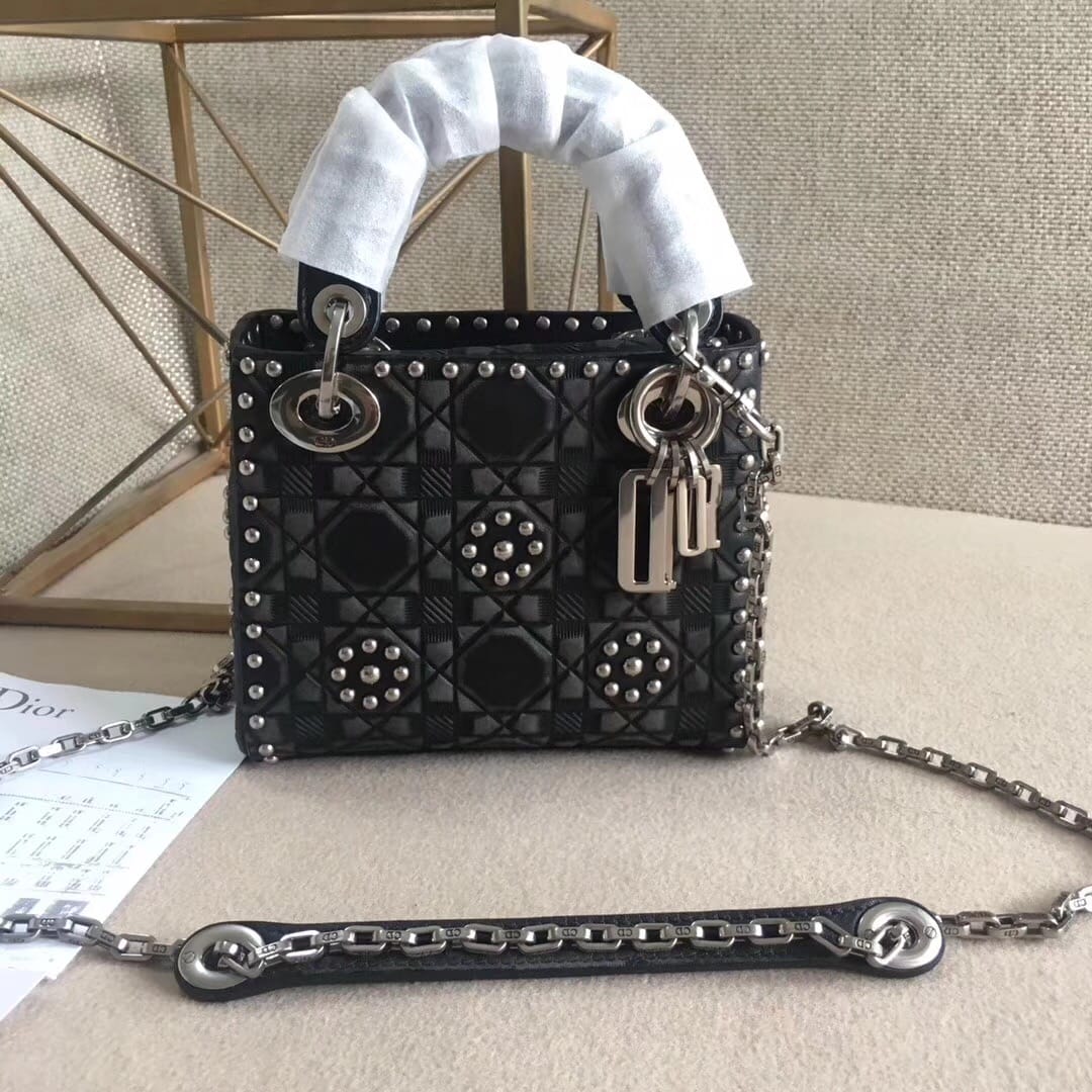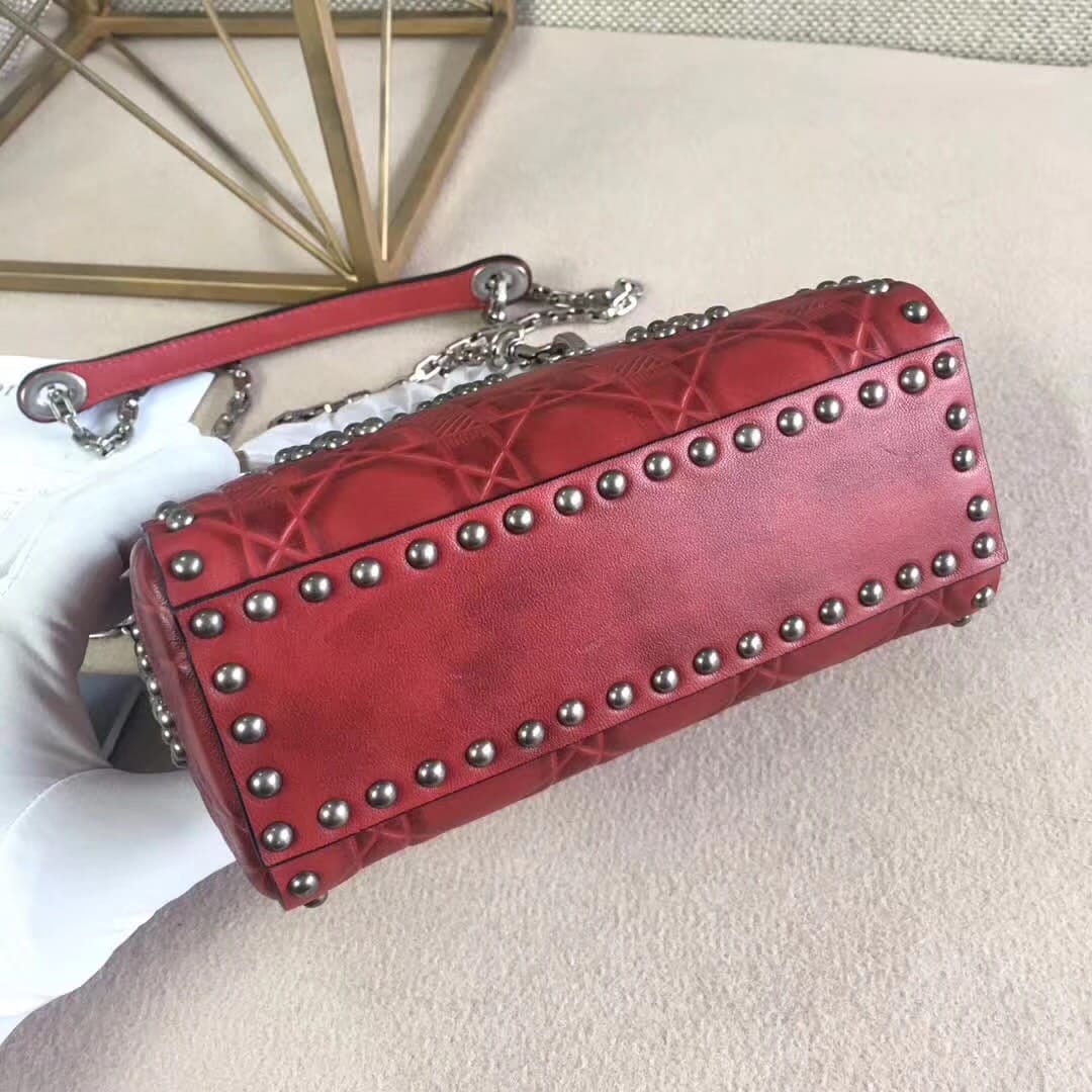 官网最新款“Lady Dior”手提包 热印藤格和缀以饰钉花