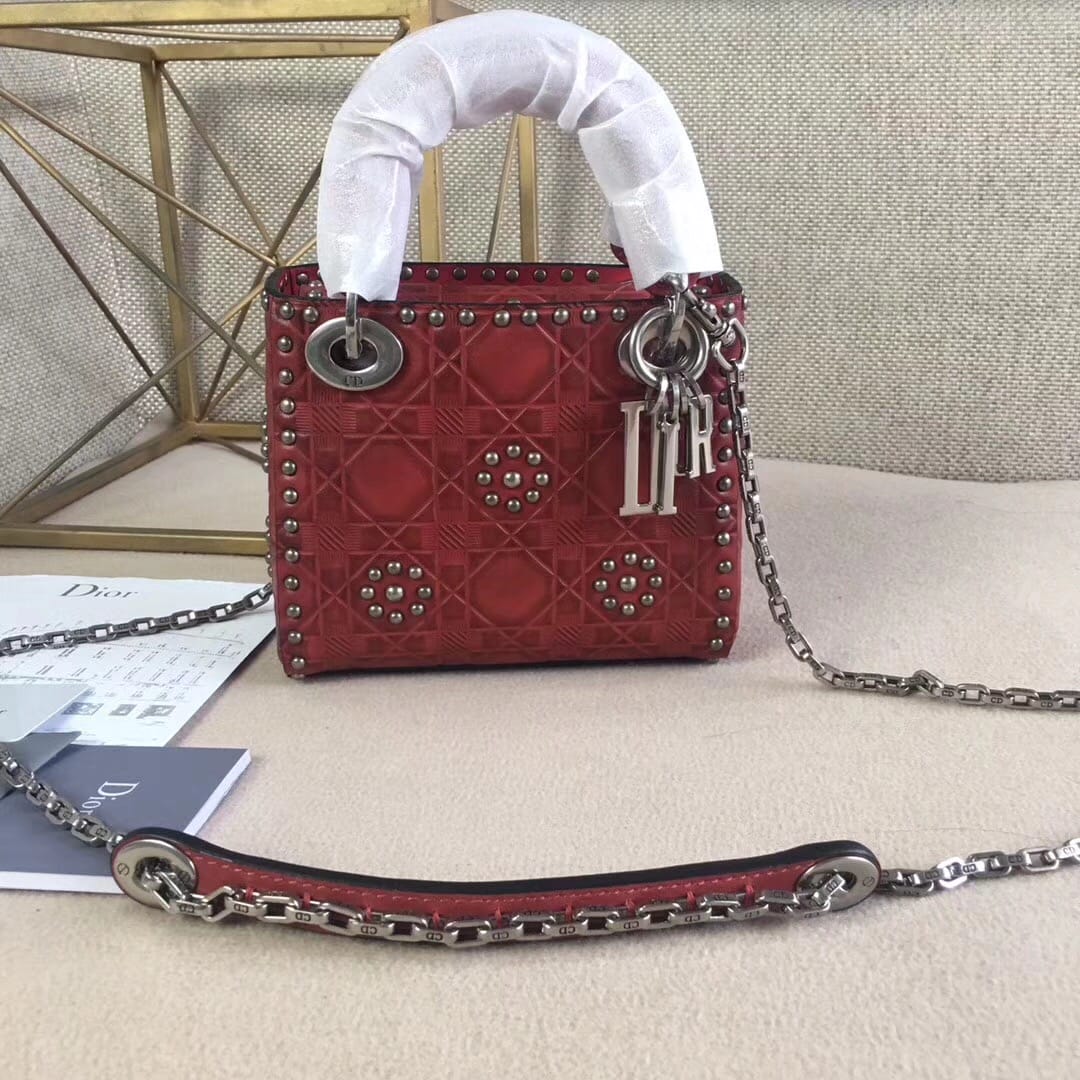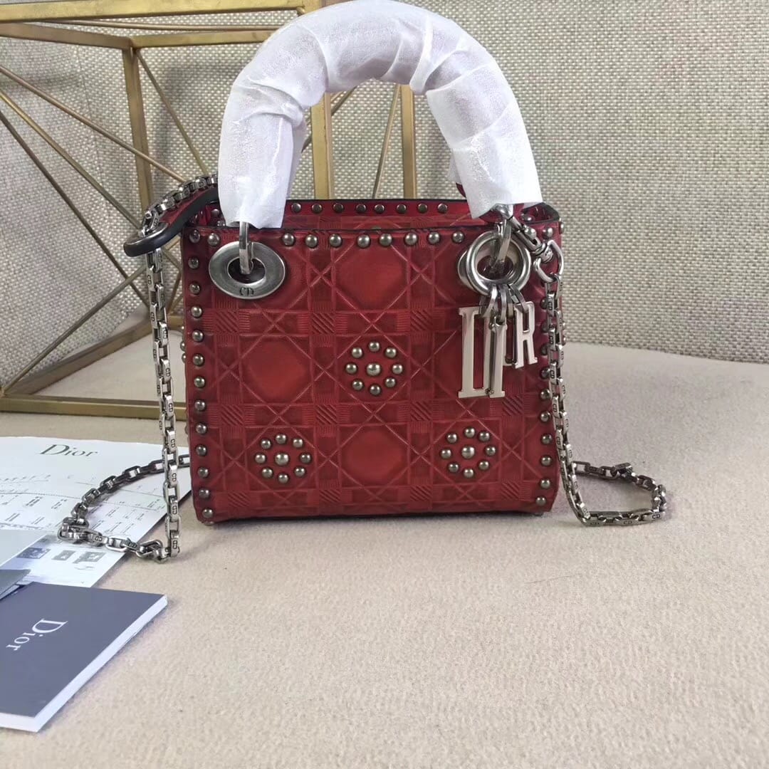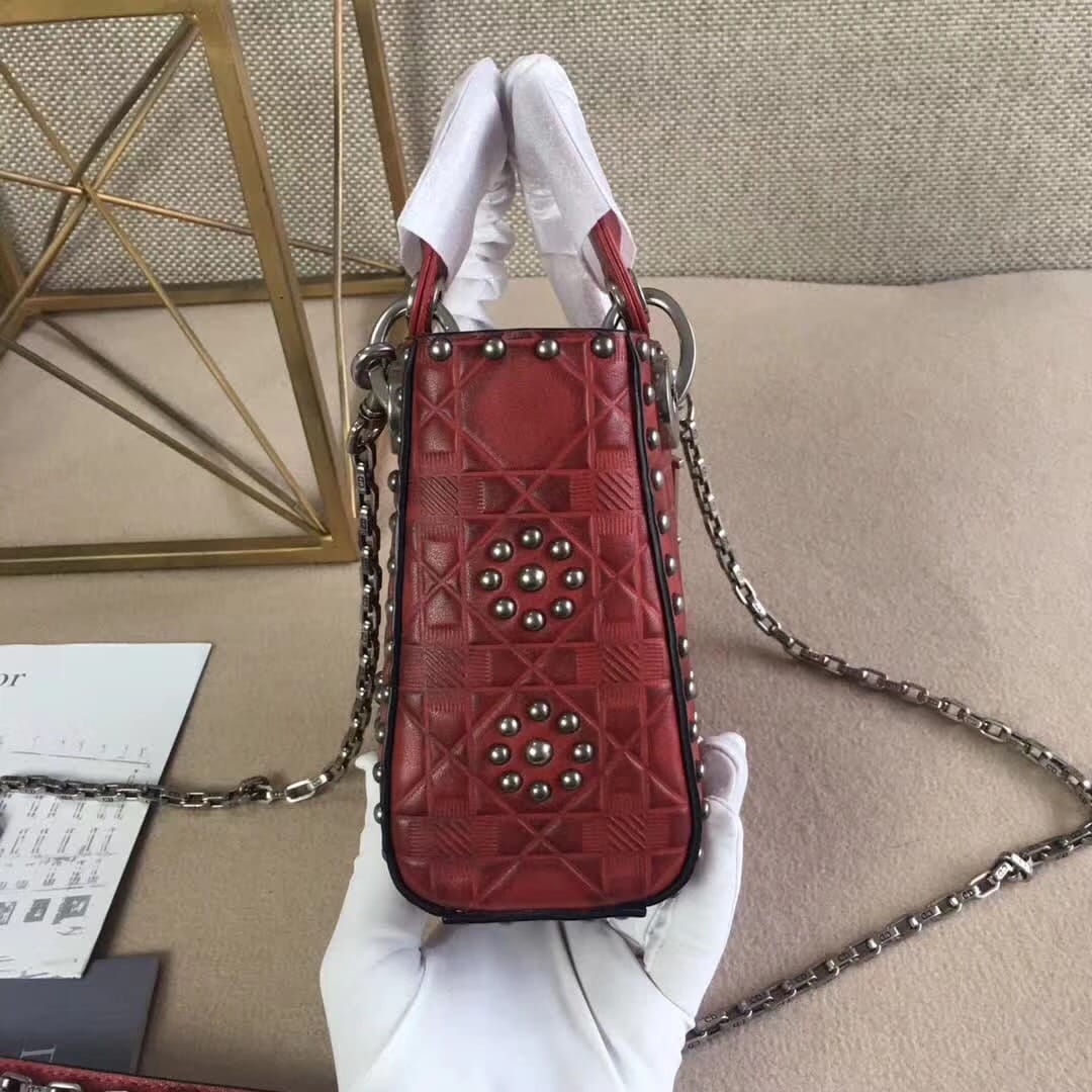 官网最新款“Lady Dior”手提包 热印藤格和缀以饰钉花