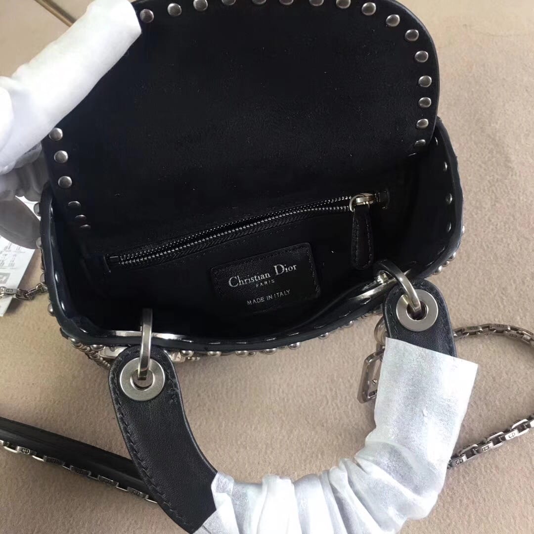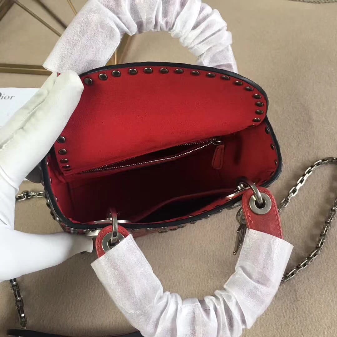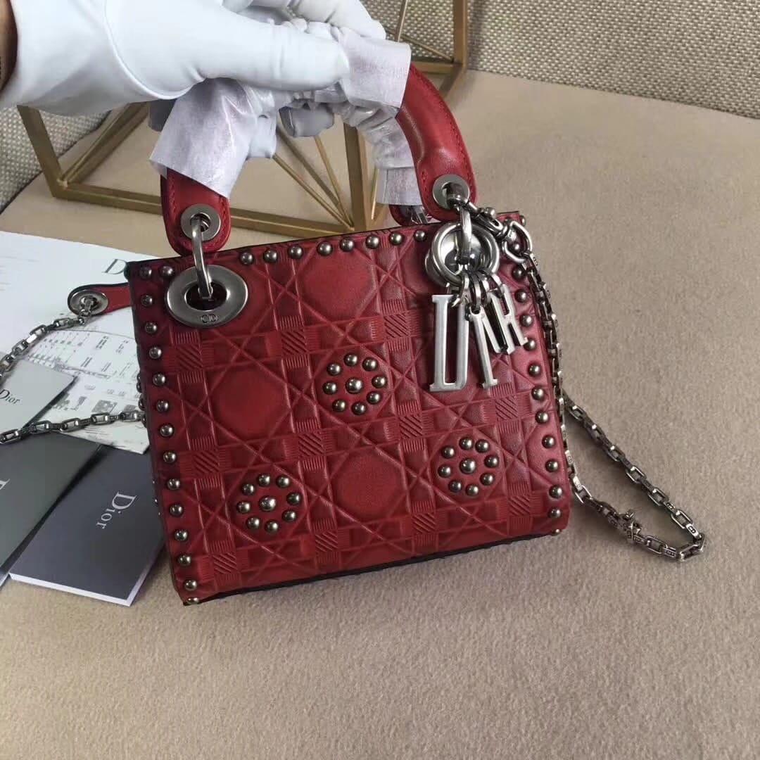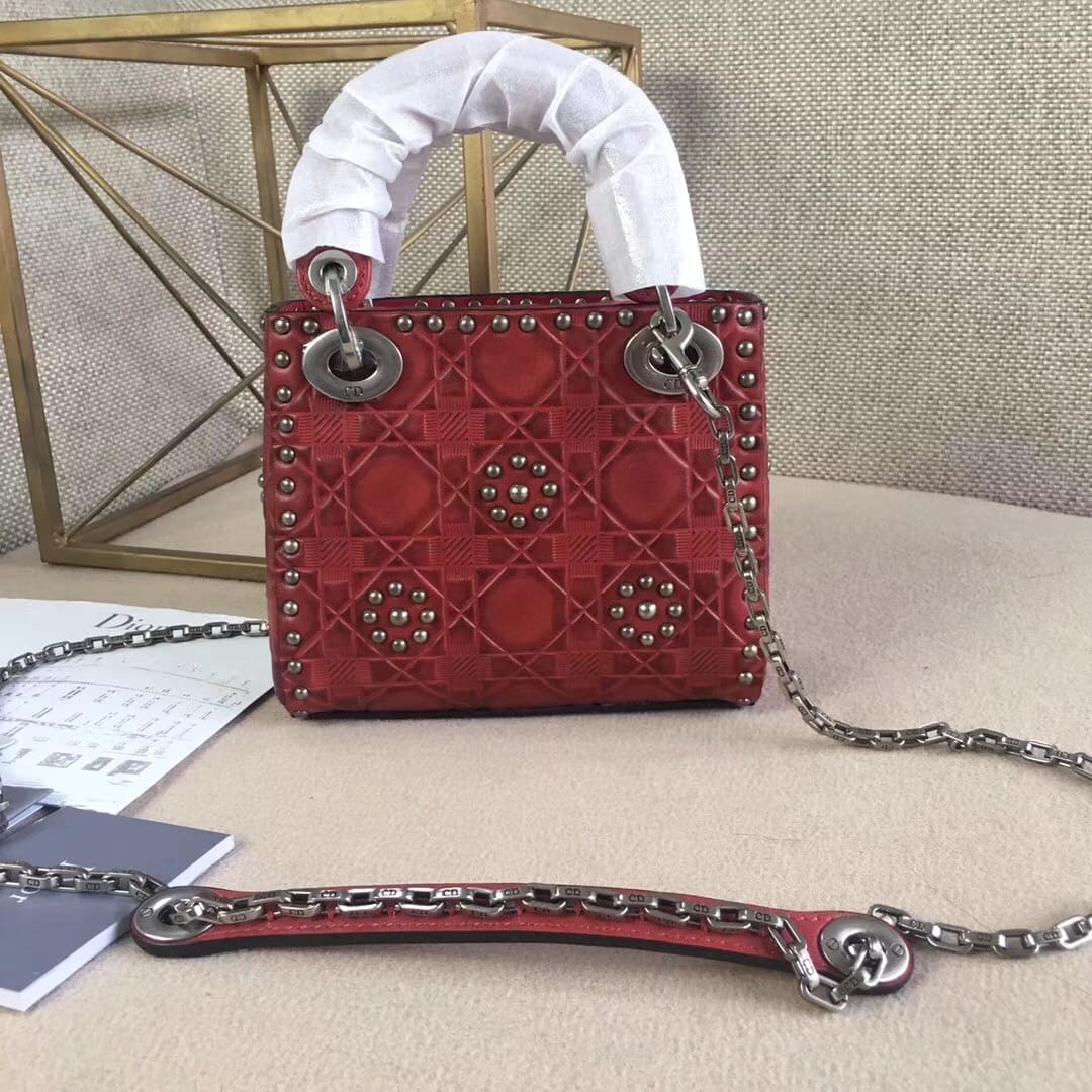 官网最新款“Lady Dior”手提包 热印藤格和缀以饰钉花